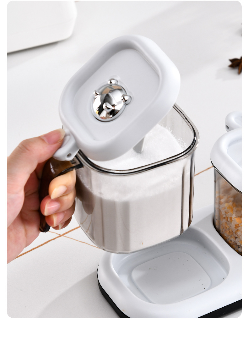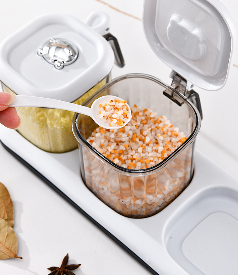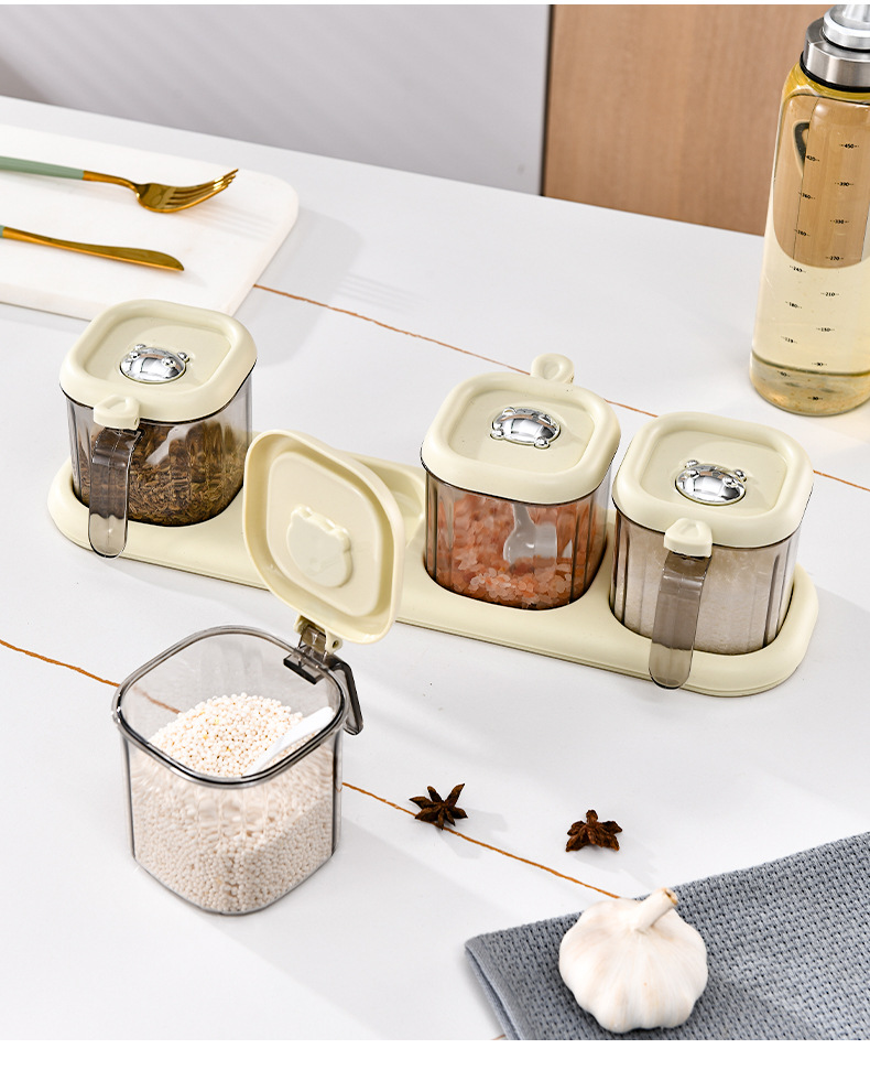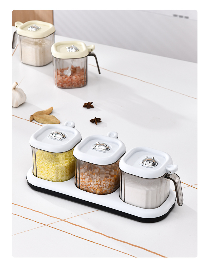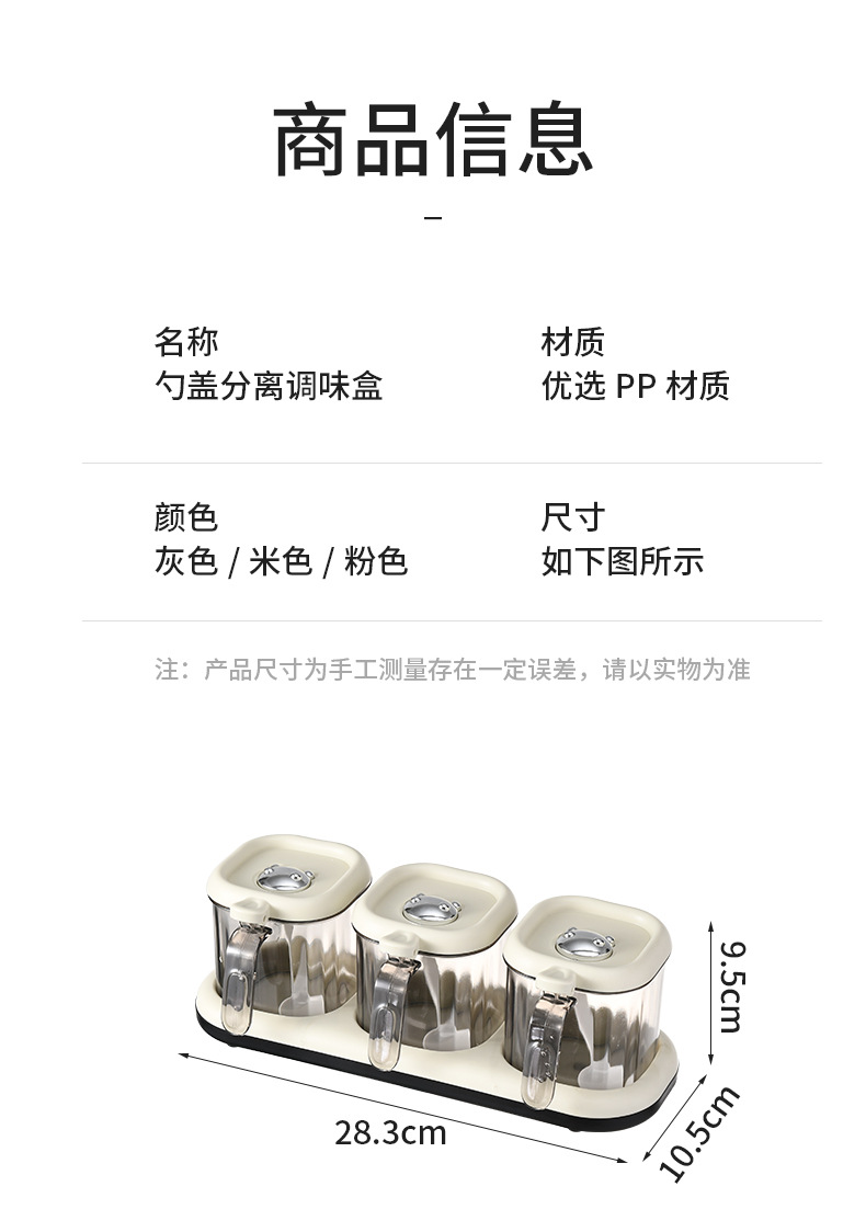 新款家用厨房调料罐 佐料盐味精调料瓶组合 密封三合一多格调料盒