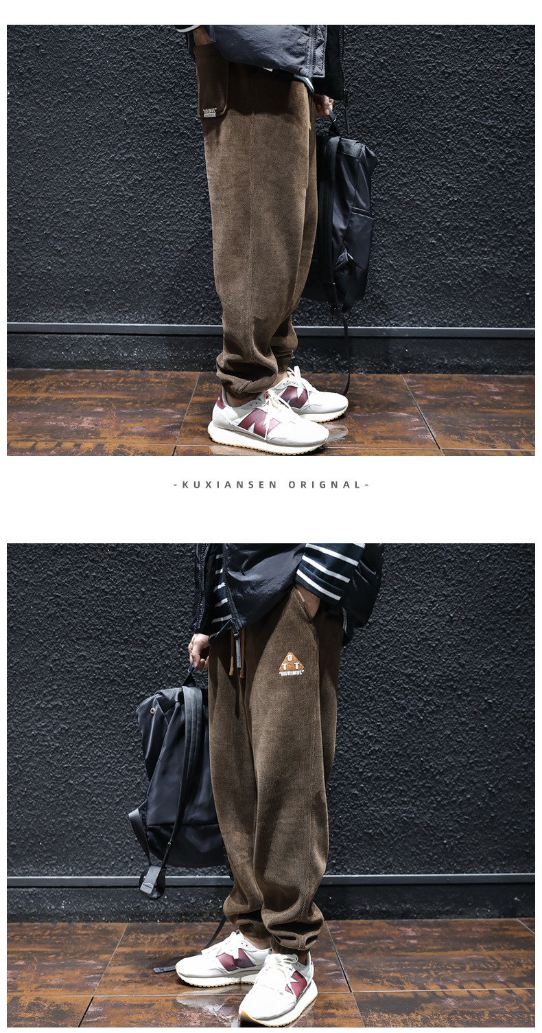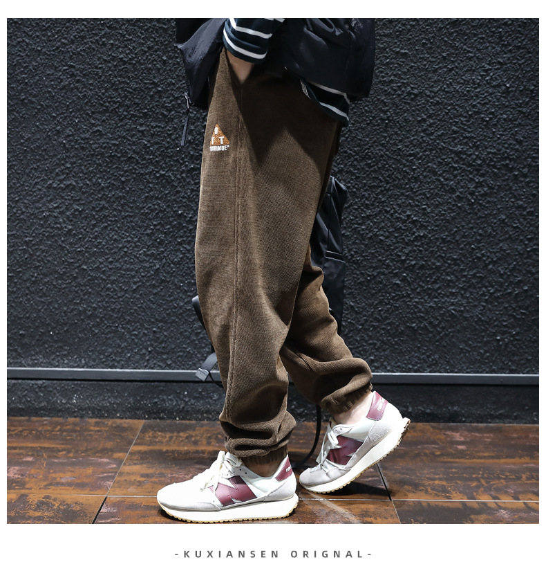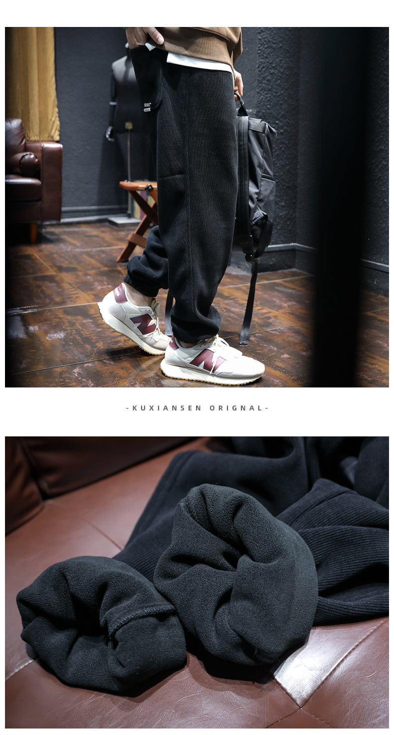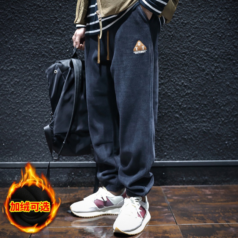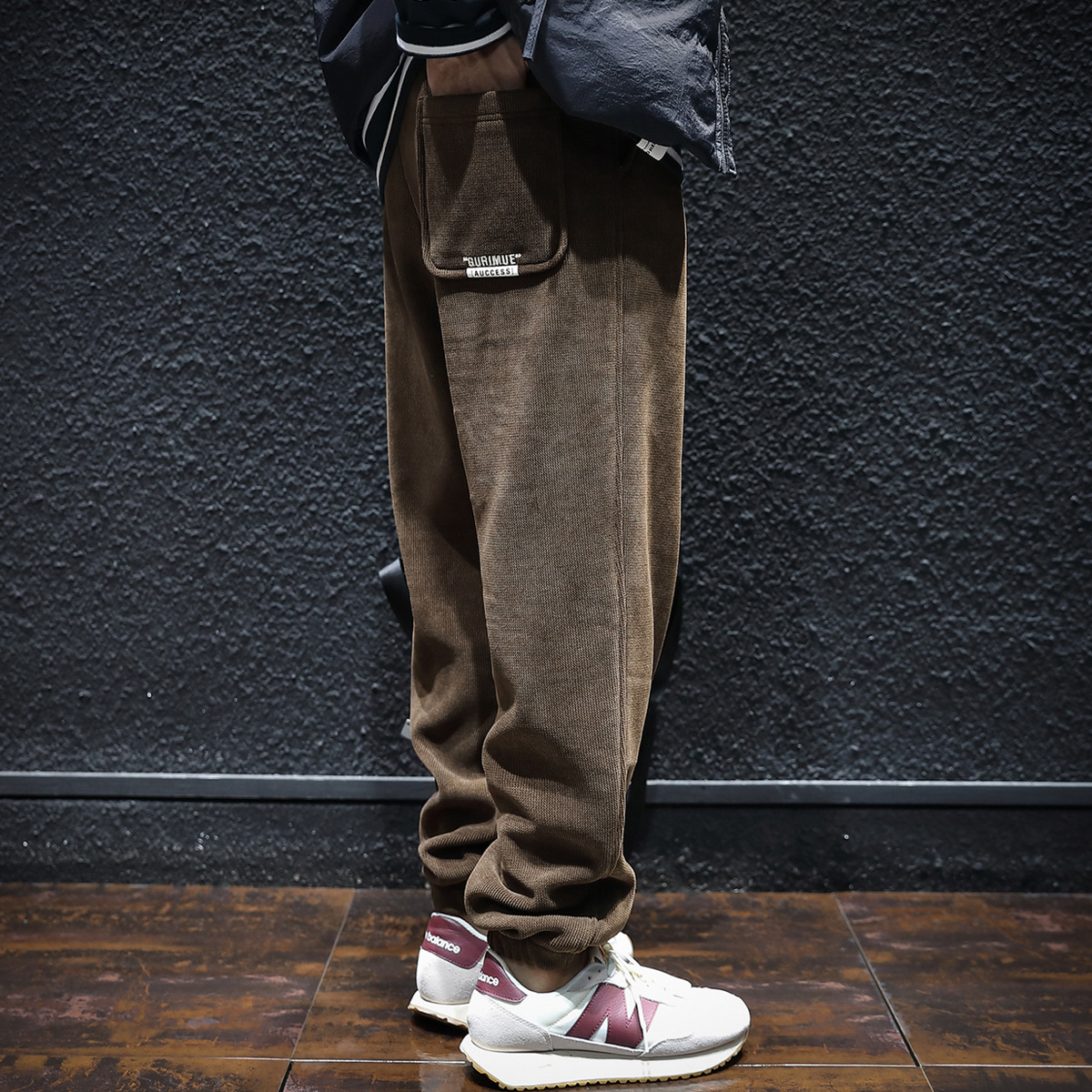 雪尼尔休闲裤男潮牌灯芯绒束脚卫裤男士运动裤冬季加绒裤子男款潮
