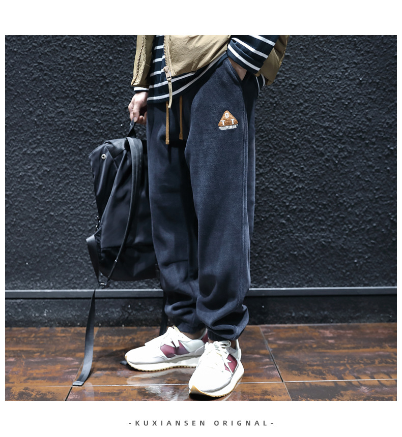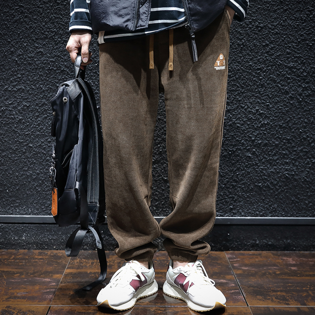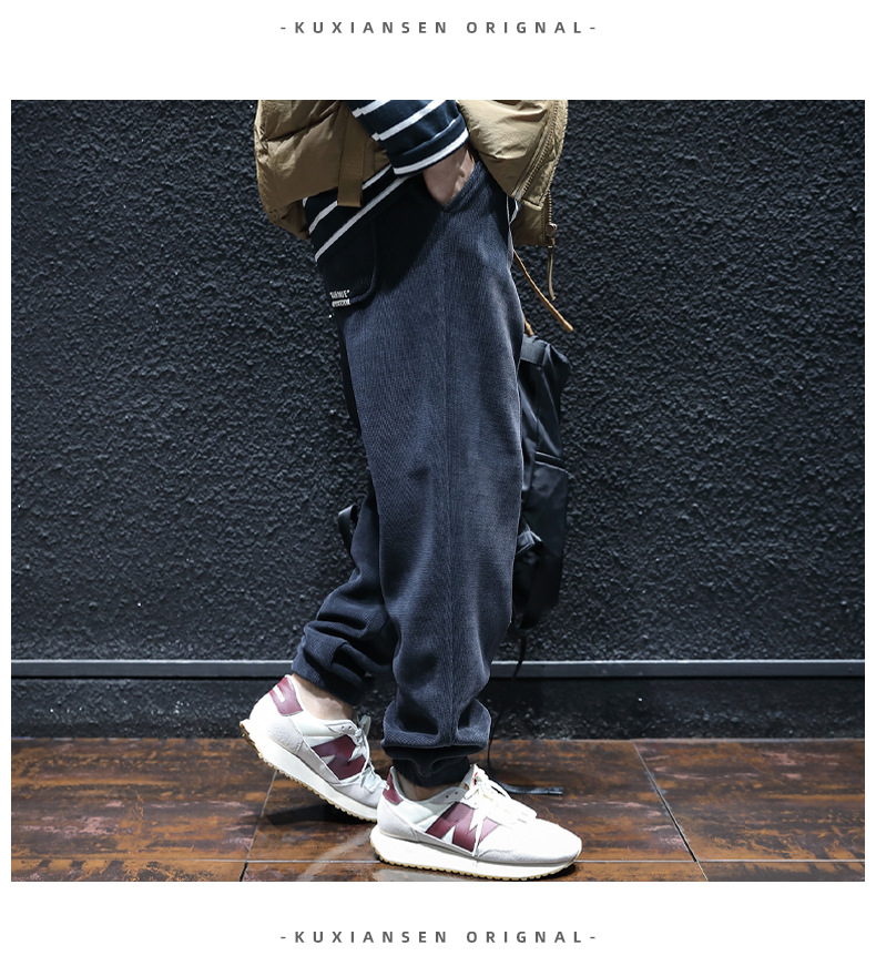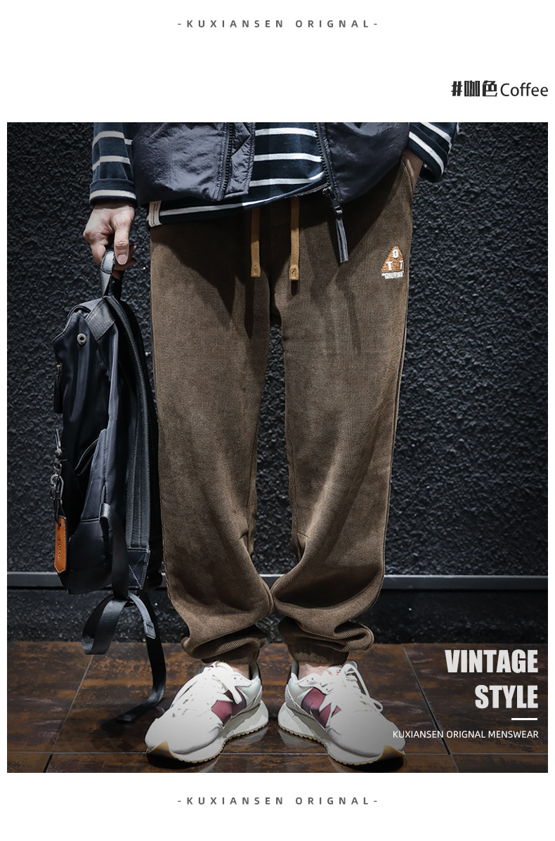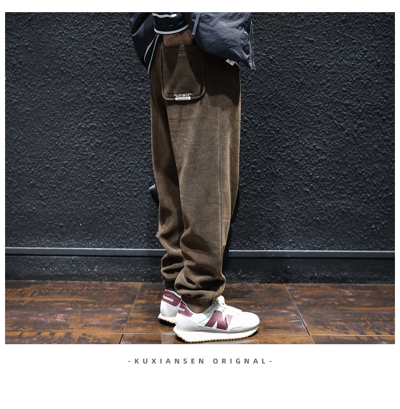 雪尼尔休闲裤男潮牌灯芯绒束脚卫裤男士运动裤冬季加绒裤子男款潮