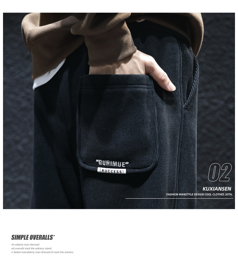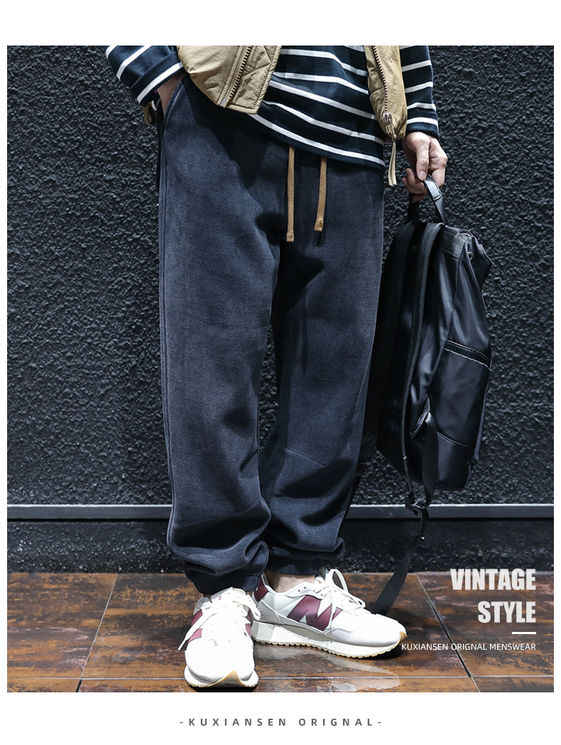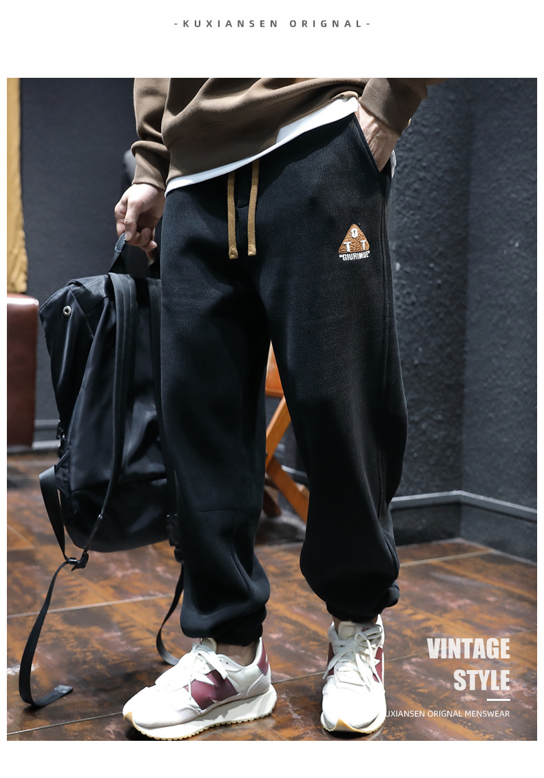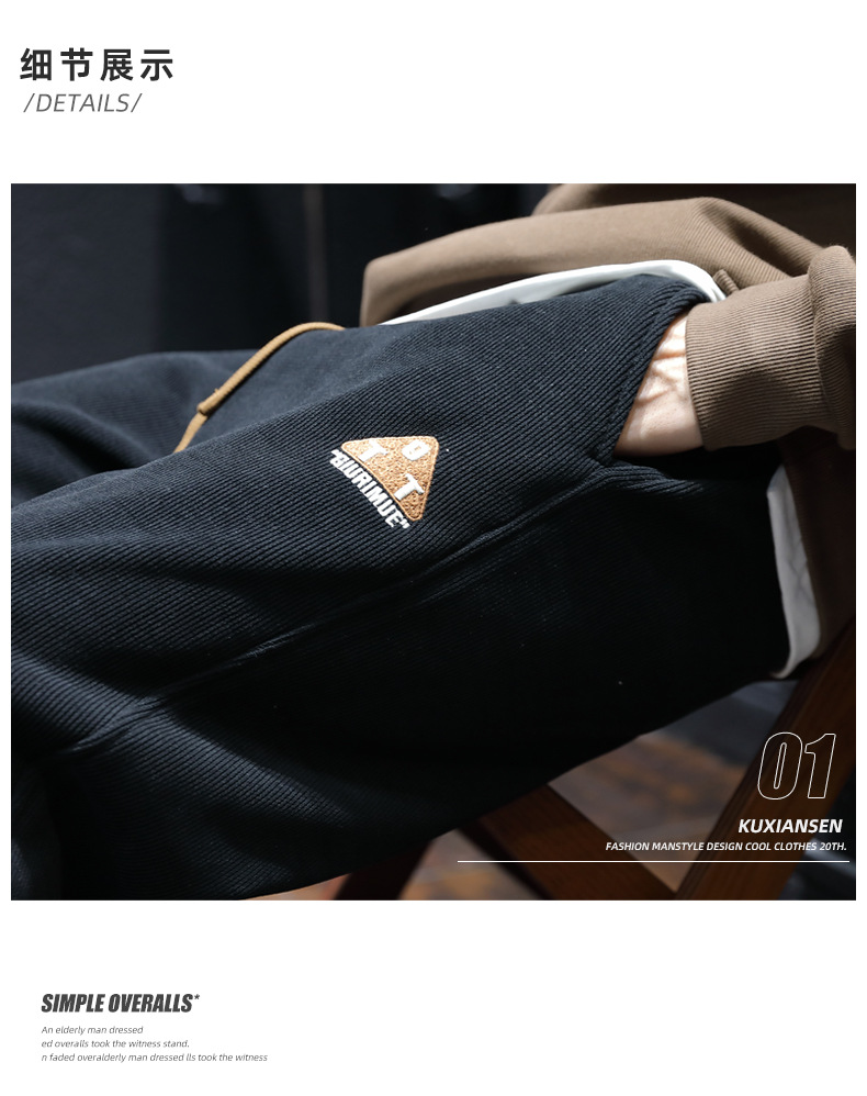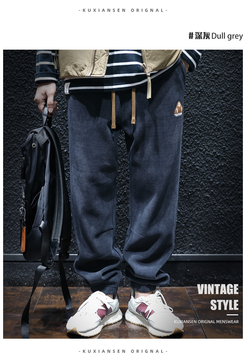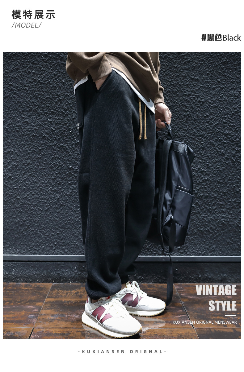 雪尼尔休闲裤男潮牌灯芯绒束脚卫裤男士运动裤冬季加绒裤子男款潮