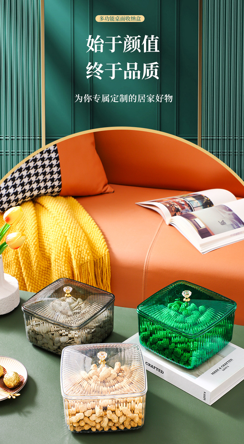 桌面干果收纳盒轻奢客厅零食盘带盖防尘糖果盒子水果收纳盒干果盒