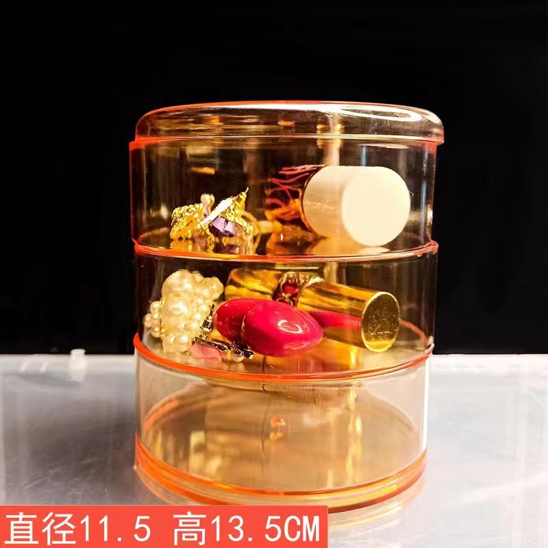 首饰饰品收纳盒透明多层旋转桌面收纳防尘整理化妆盒置物架化妆架