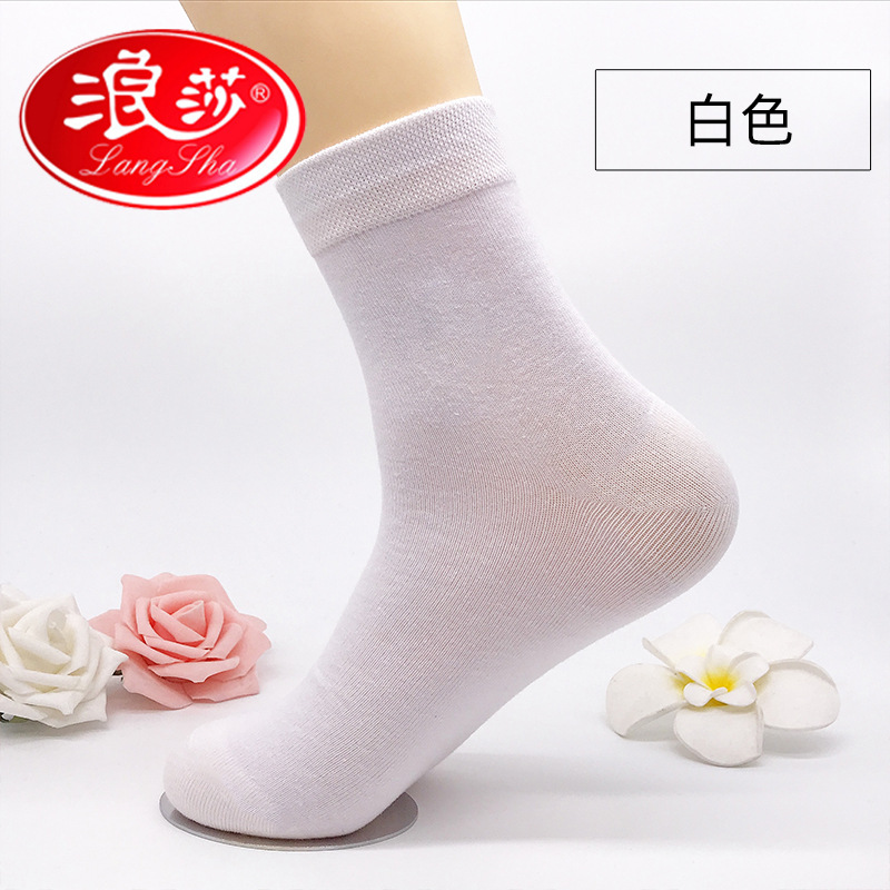 纯棉男袜子中厚四季黑白中筒袜男士全棉酒店商务浪莎棉袜批发