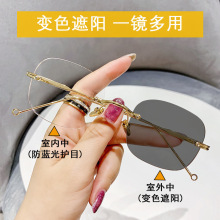 防蓝光无框眼镜变色潮男眼睛框镜架超轻有度数男款高颜值近视眼镜