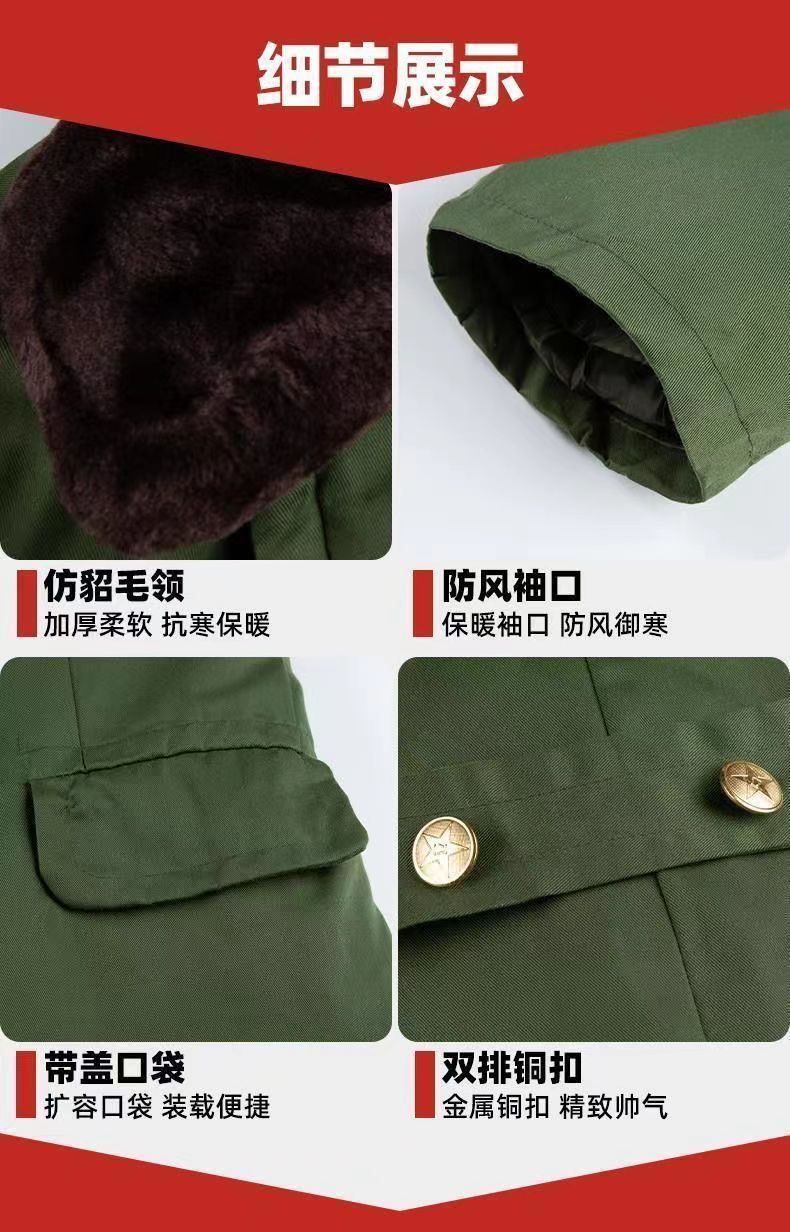 批发军大衣抗寒加厚保暖棉大衣冬季劳保军绿色加绒大学生大衣棉衣