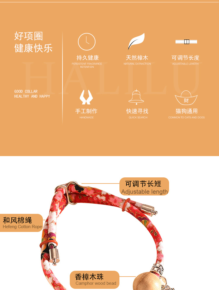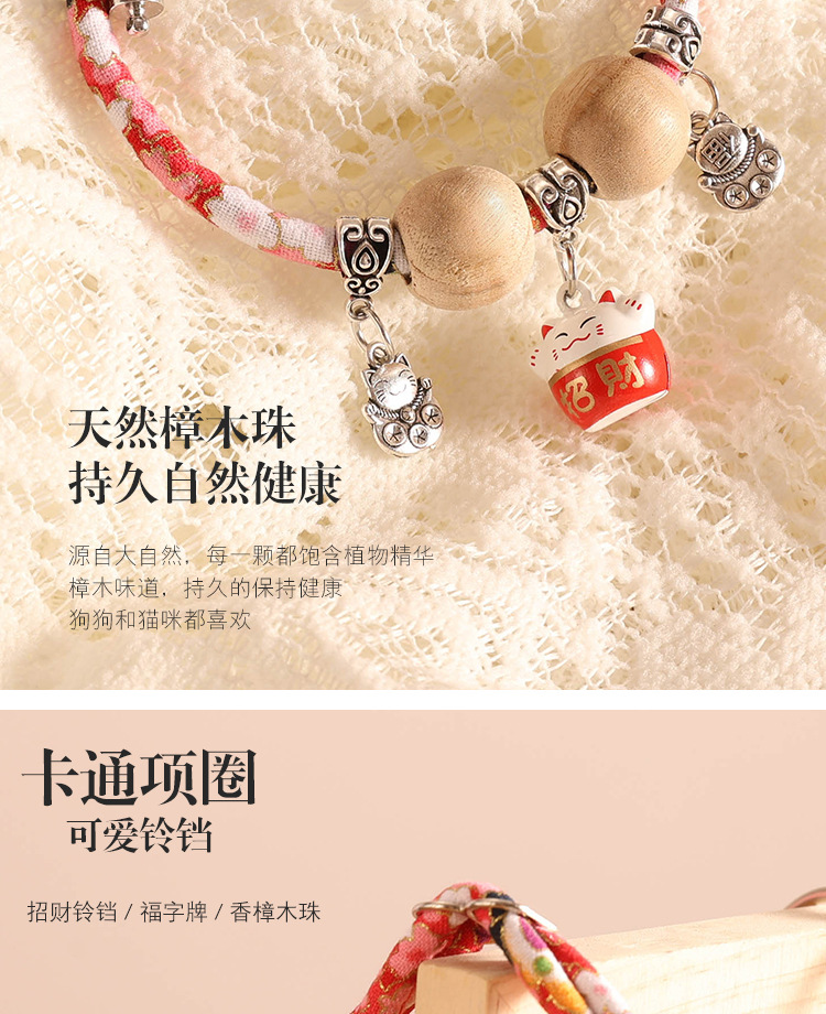 亚马逊爆款宠物项链项圈 铃铛香樟木球和风小狗猫咪颈圈厂家批发