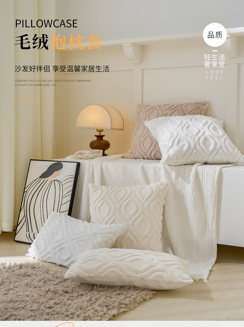 几何图形纯色抱枕靠枕靠垫套 简约风毛绒沙发装饰抱枕套