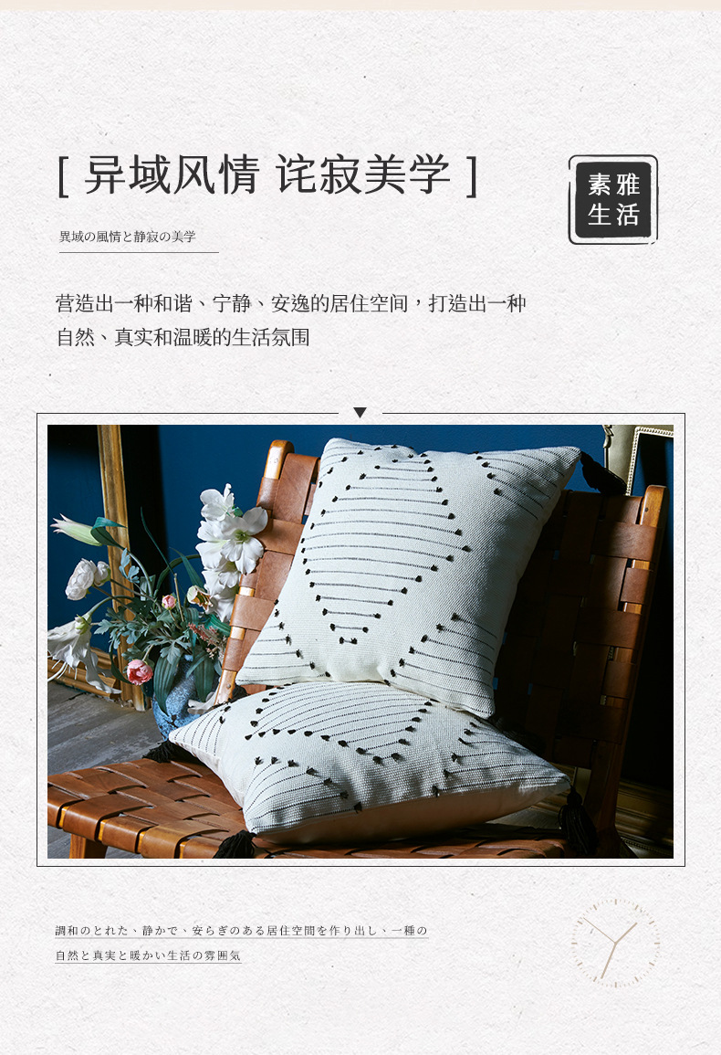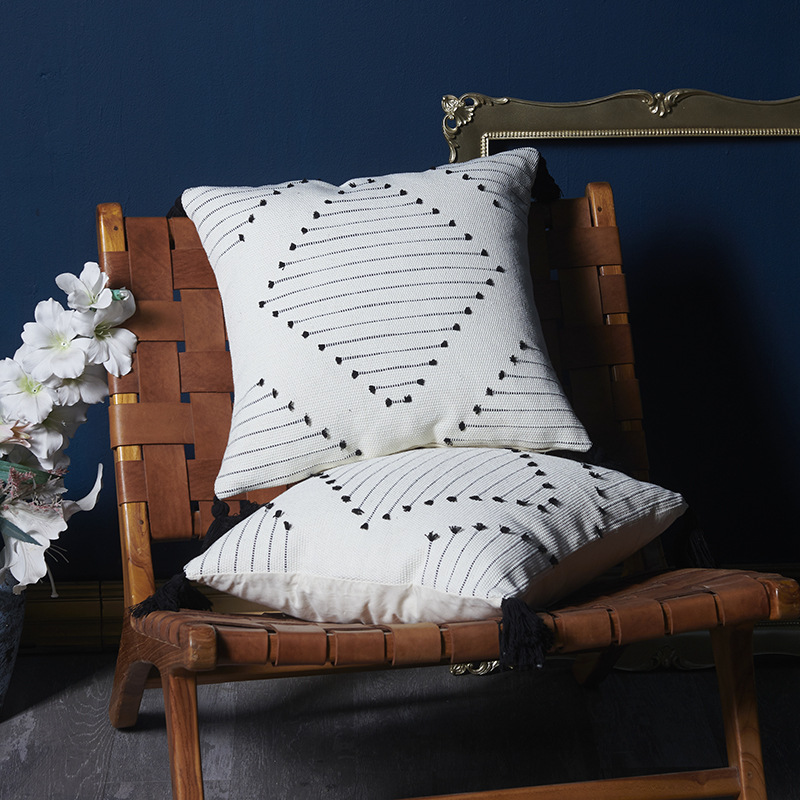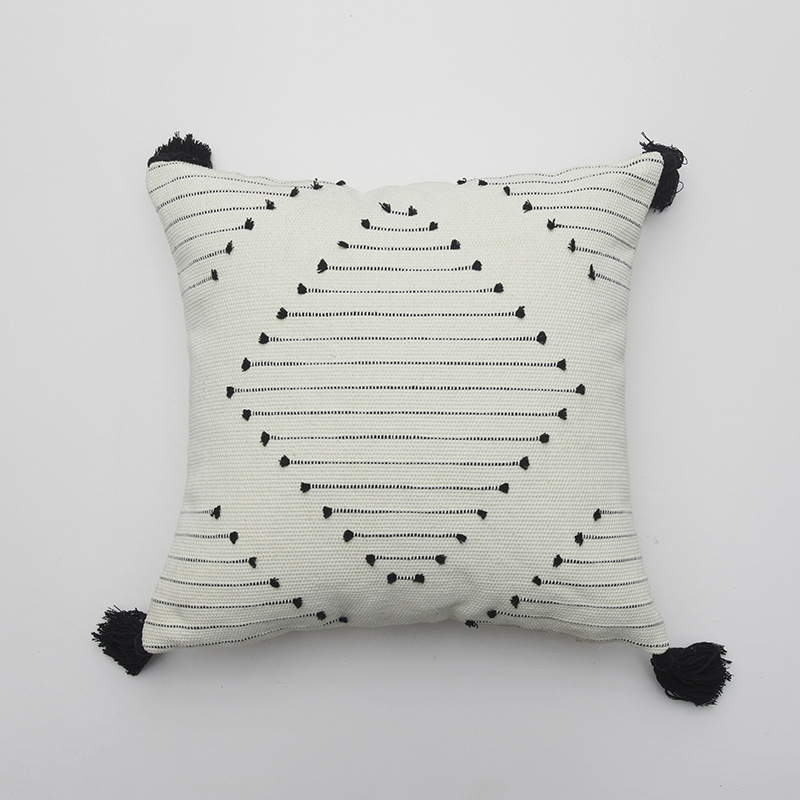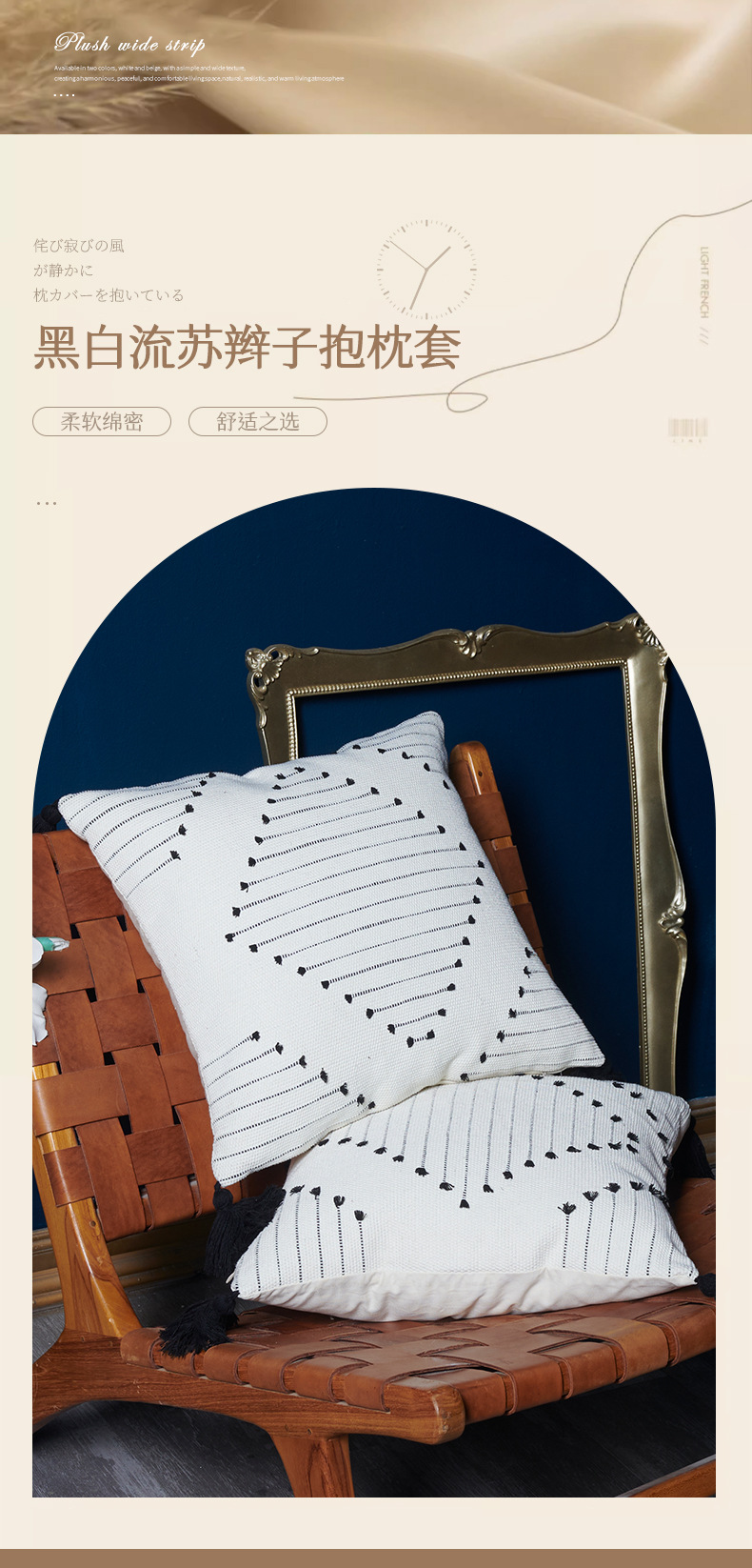 几何线条流苏抱枕 客厅沙发弹力提花几何靠垫靠枕套
