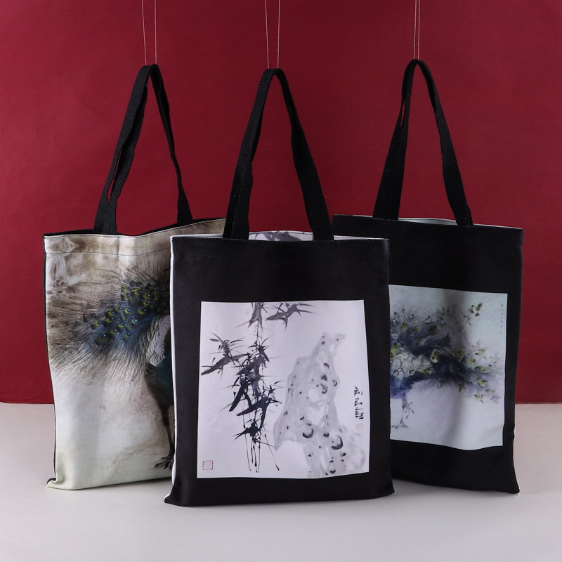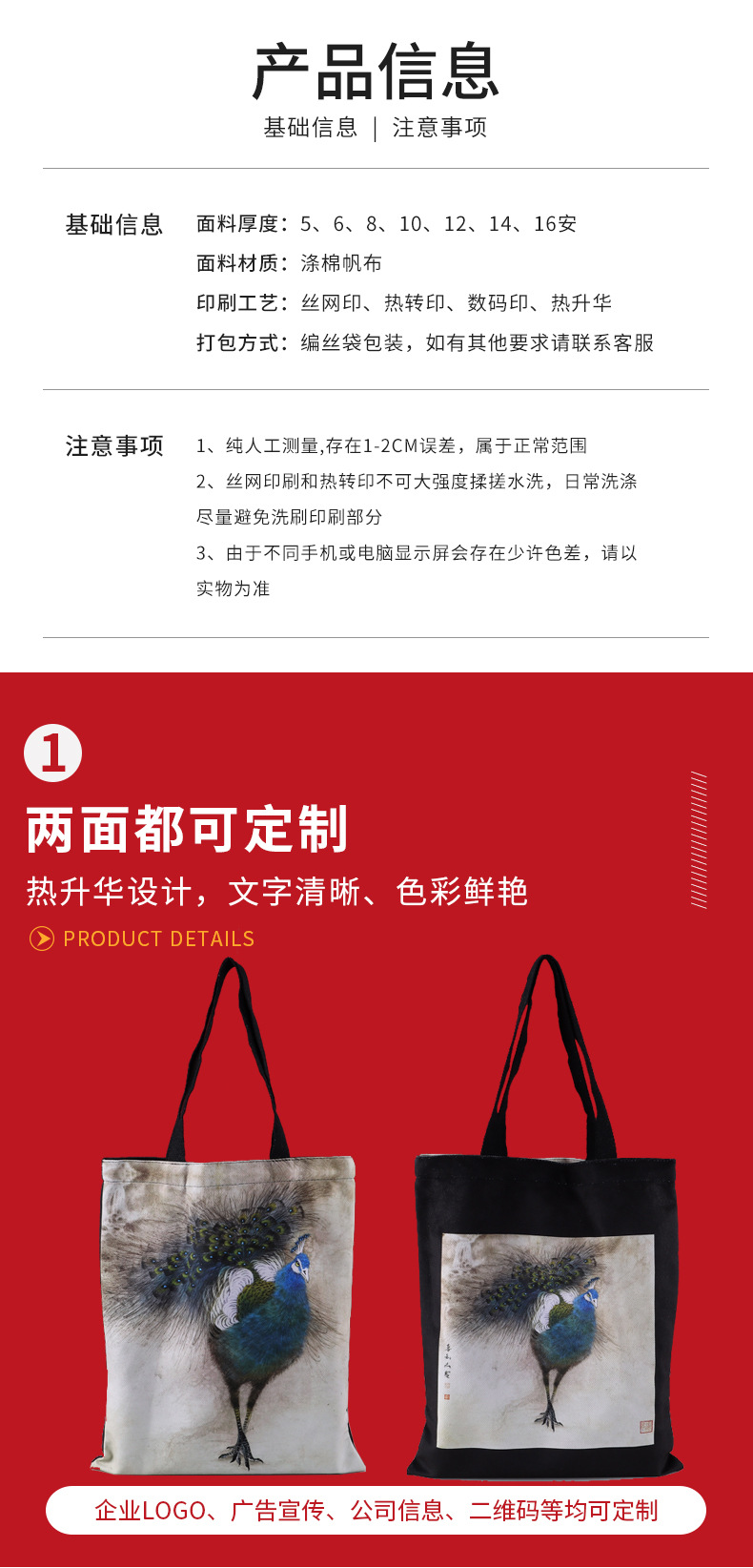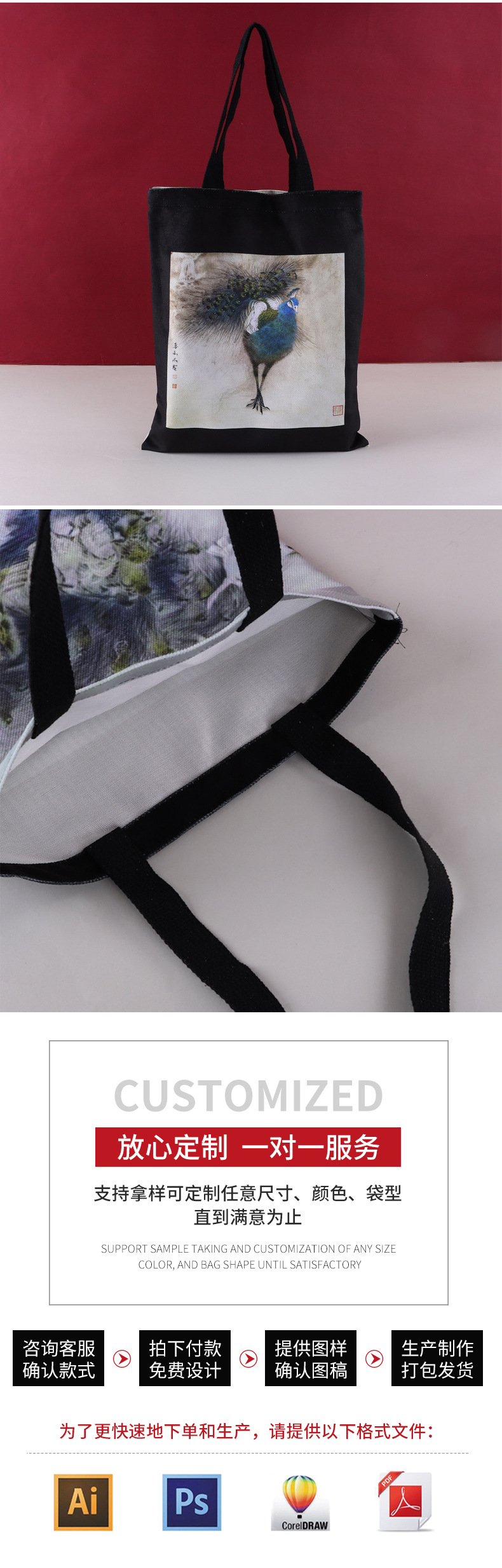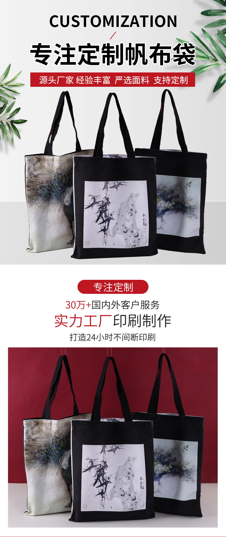 国风帆布袋定做 大容量空白印花有底无侧帆布包手提袋布袋可定制