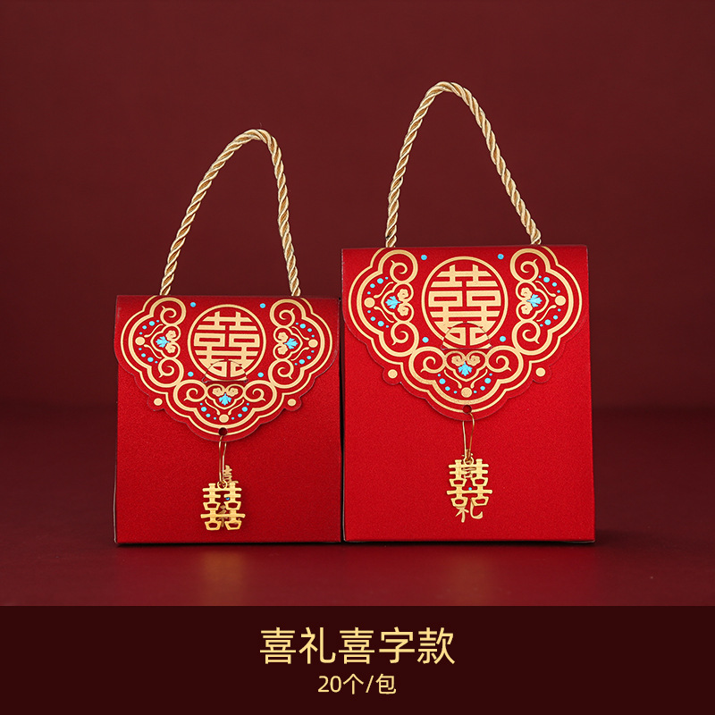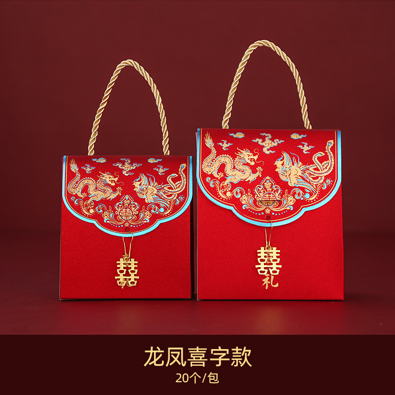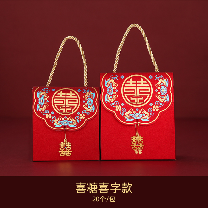 中式喜糖盒手提结婚喜糖袋 喜庆用品创意烫金喜字糖果盒婚礼糖盒