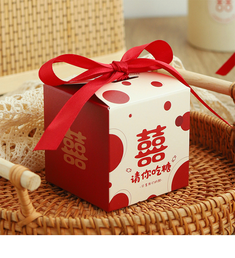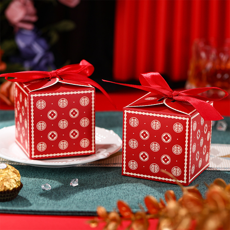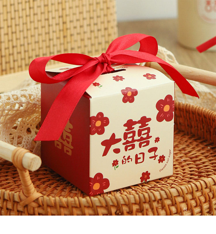 红花喜结婚喜庆新中式喜糖盒吾家有喜小方盒喜糖盒子伴手礼盒批发