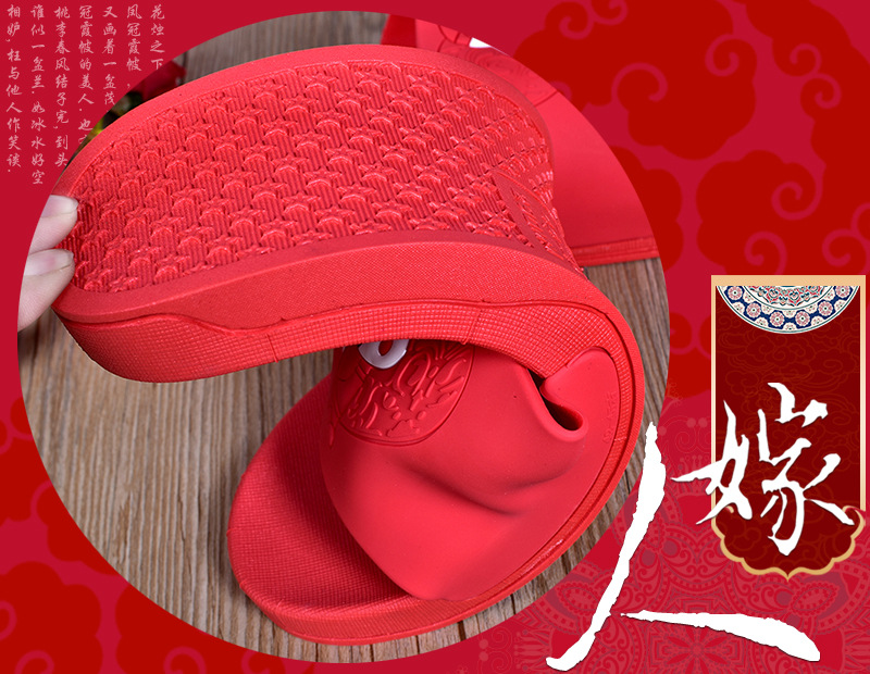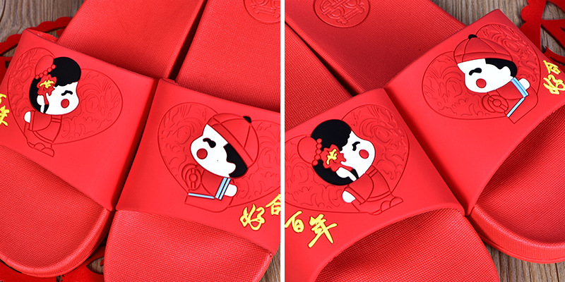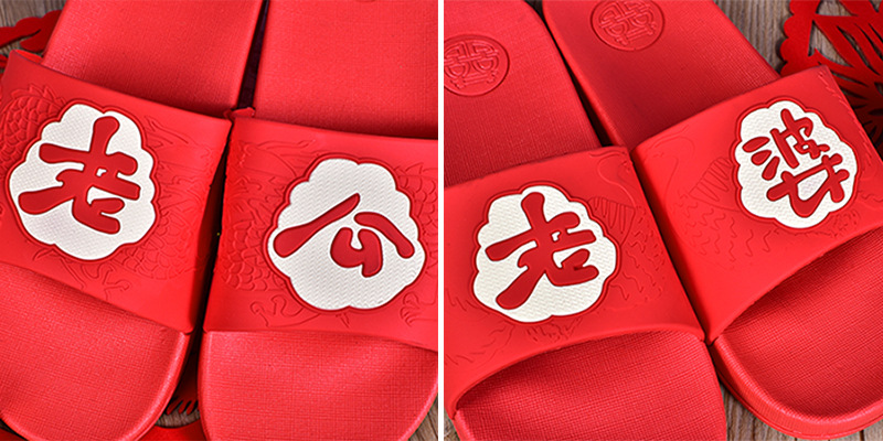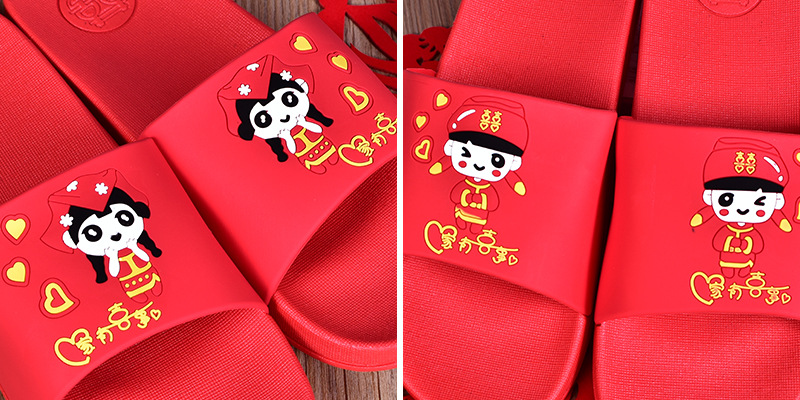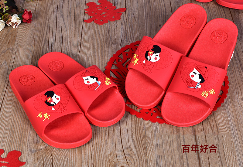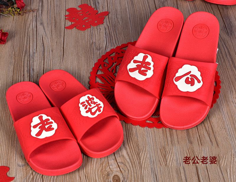 结婚拖鞋夏季婚庆用品老公老婆拖鞋家居浴室喜庆新婚大红凉拖厂家