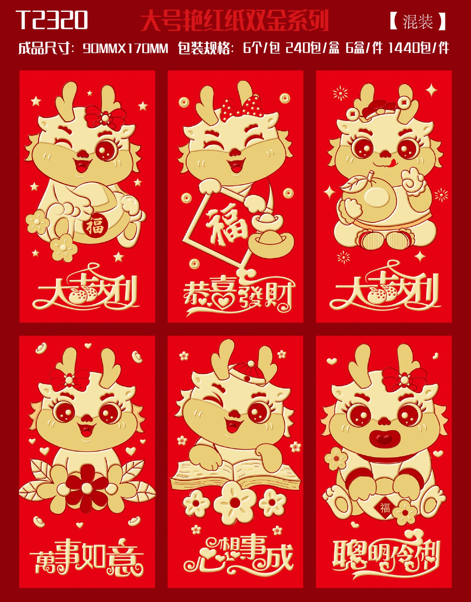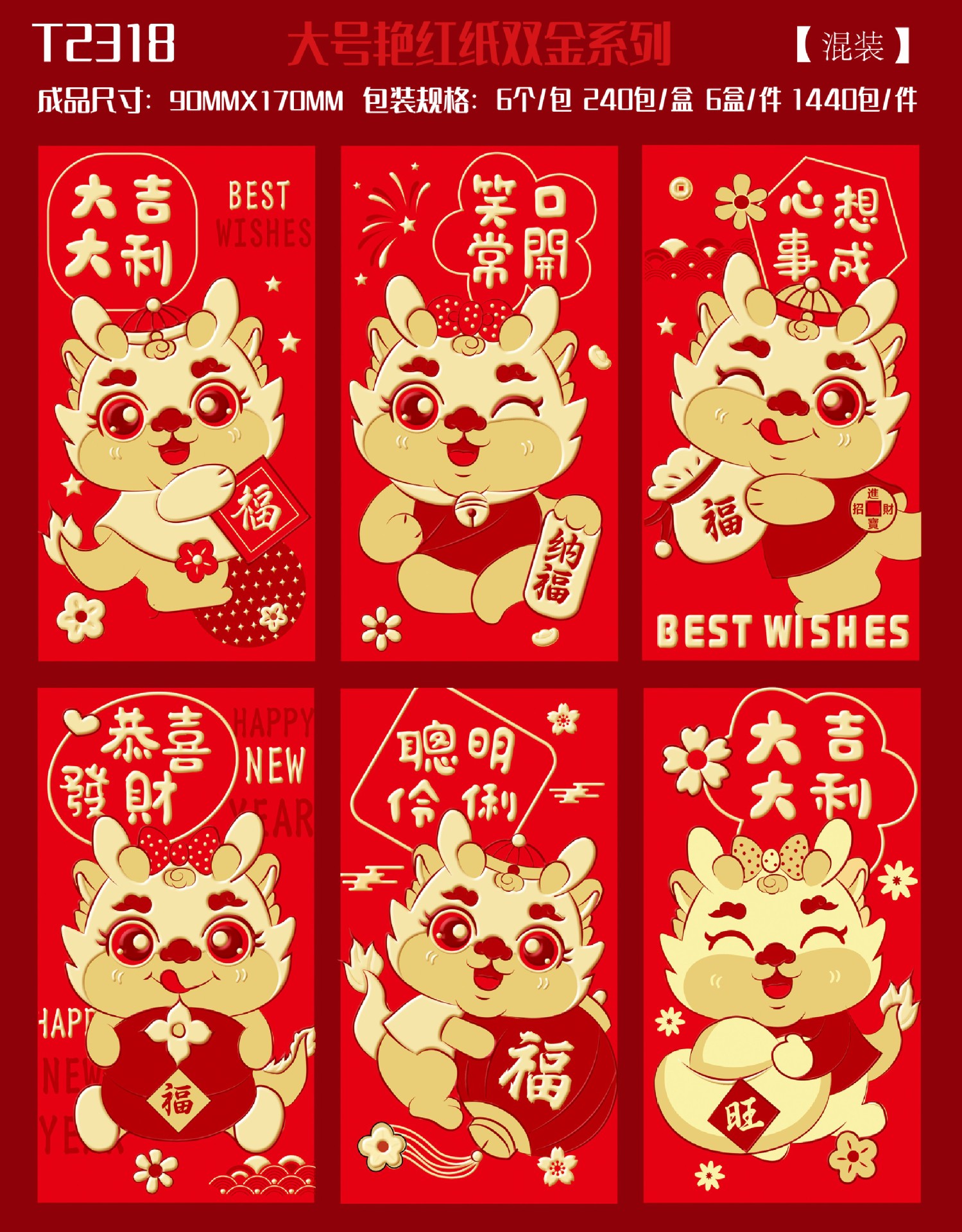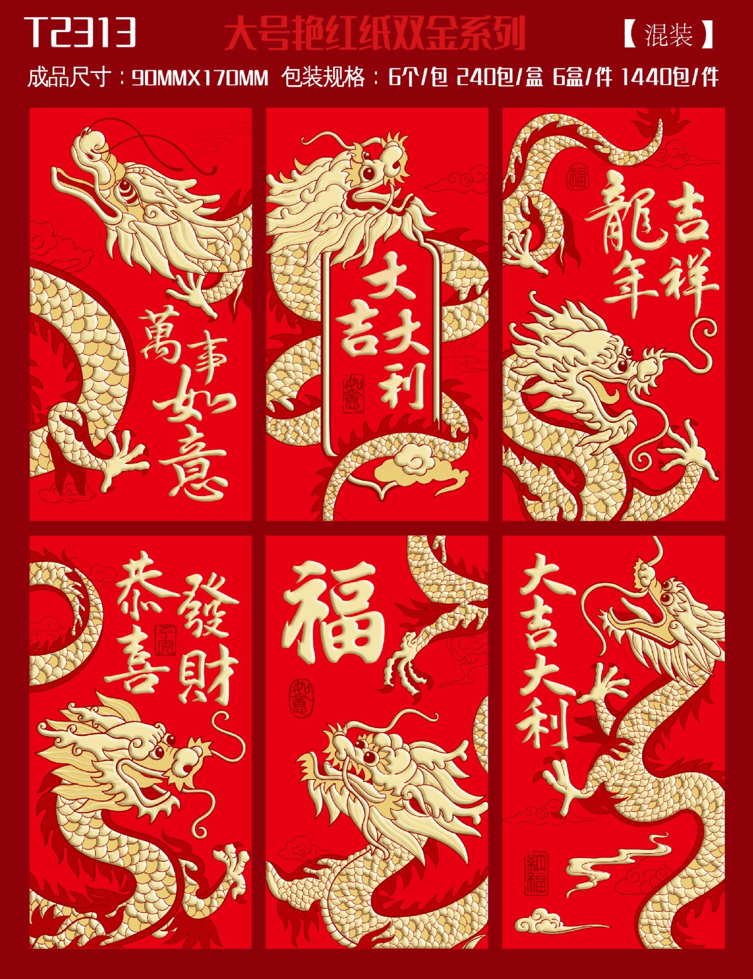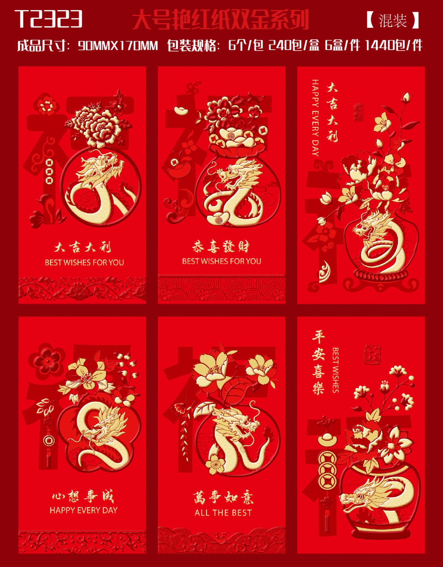 跨境批发龙年新款红包烫金大吉大利加logo利是封现货通用生肖红包