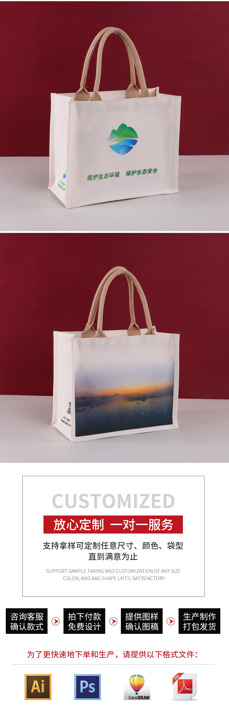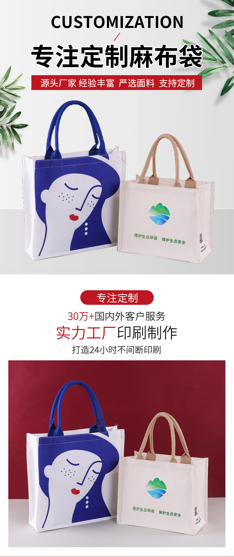 现代简约麻布袋 创意DIY手提拉链帆布包大容量礼品购物袋厂家批发