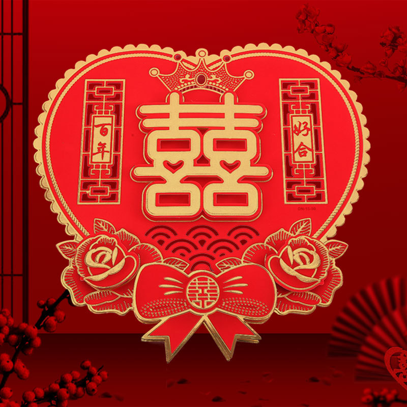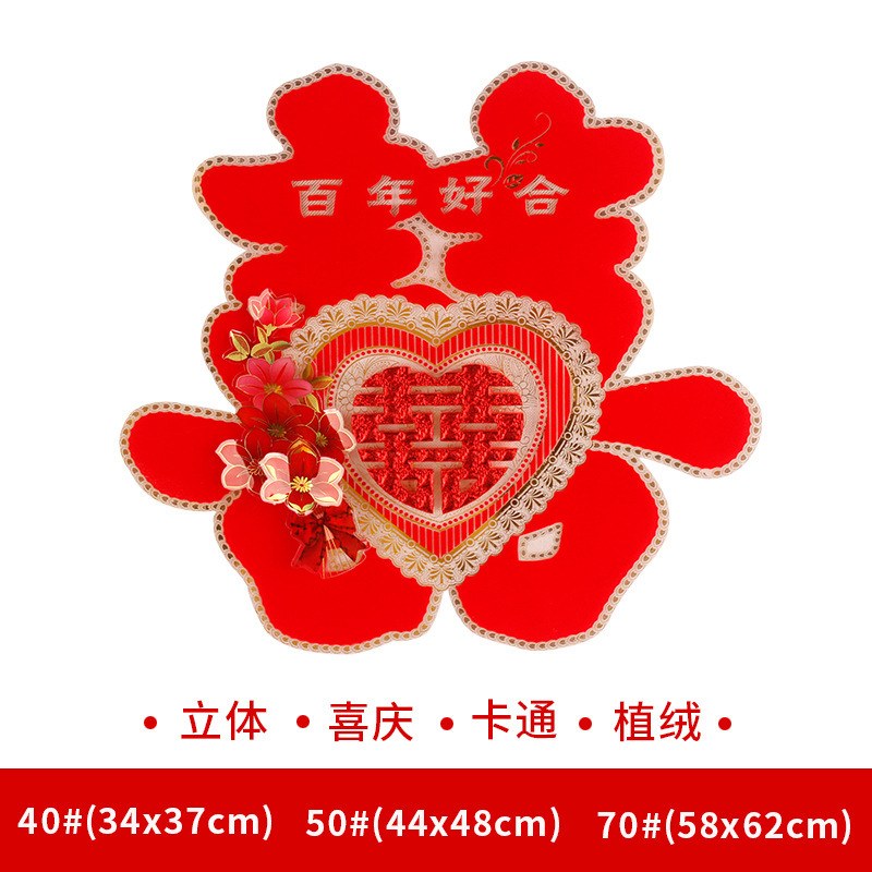 结婚喜字婚房装饰婚庆用品结婚门贴双喜立体喜庆植绒面喜字贴批发