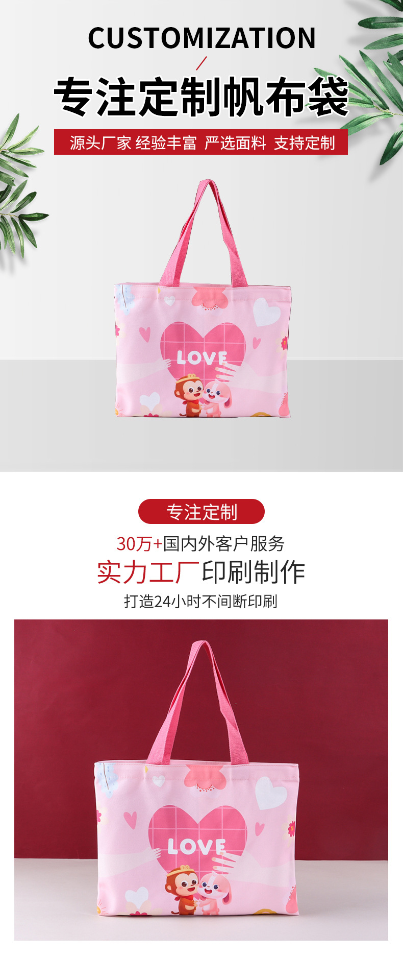 手提帆布袋定 制logo广告帆布包定 做棉布袋儿童卡通单肩束 口袋