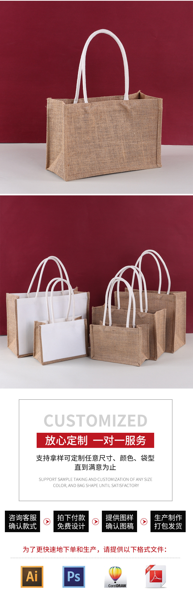 现货麻布袋子手绘广告宣传麻布包棉麻伴手礼手提袋黄麻手提托特包