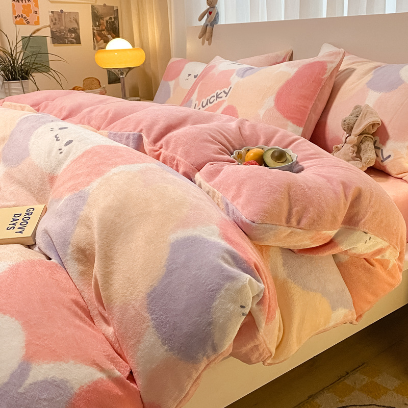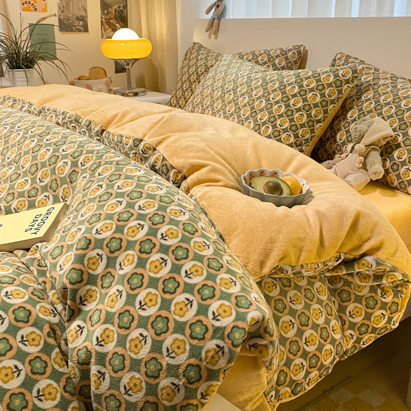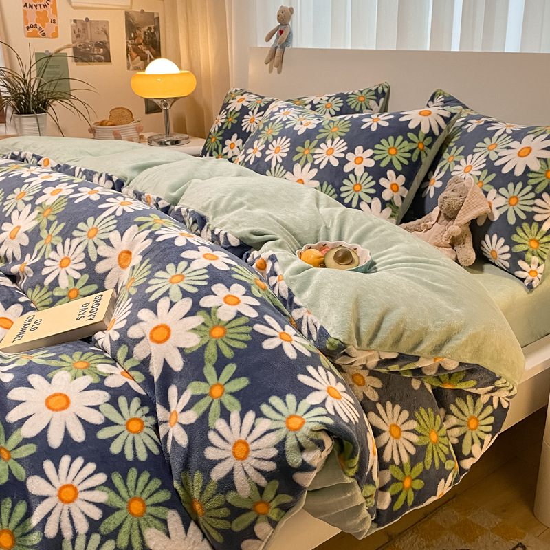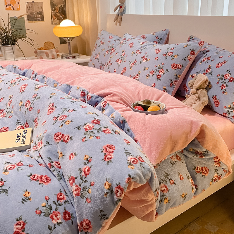 冬季加厚牛奶绒四件套田园风珊瑚绒宝宝绒保暖床单被套床上用品