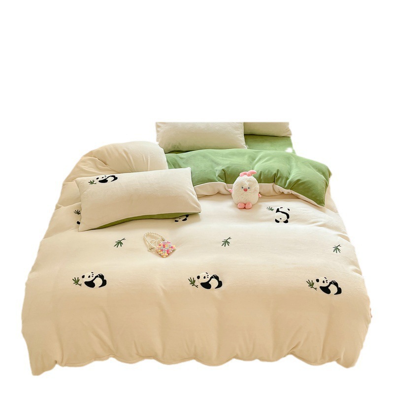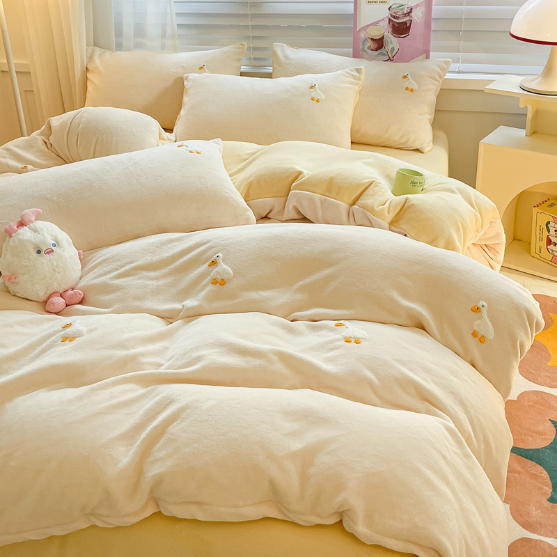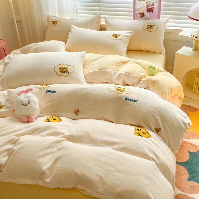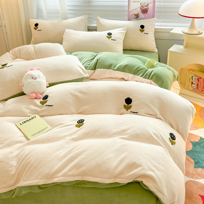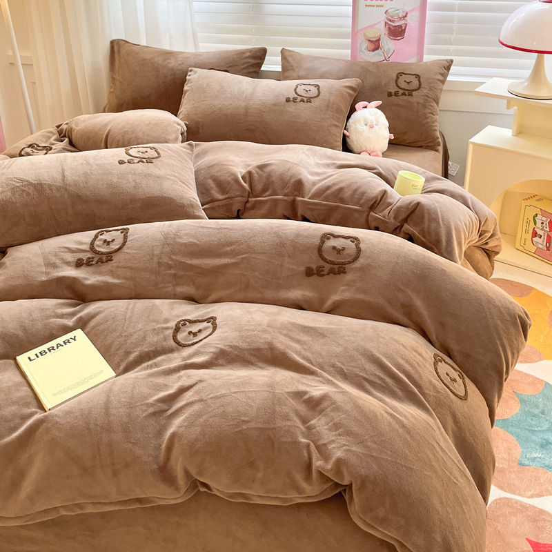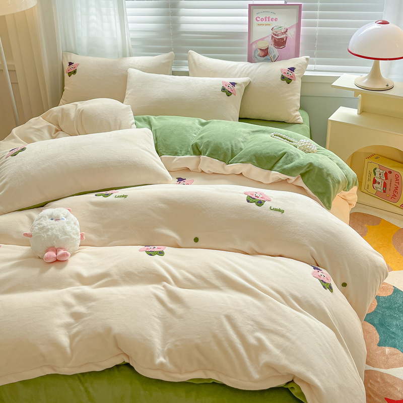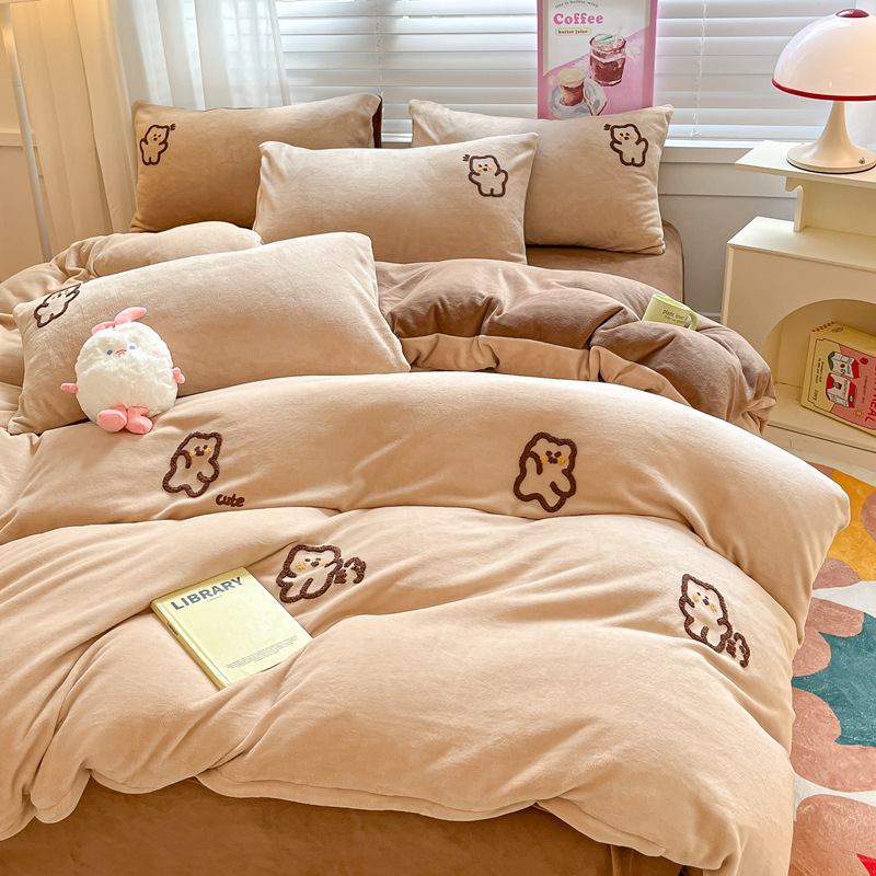 秋冬加厚保暖毛巾绣牛奶绒床上用品四件套床单被套床笠三件套批发