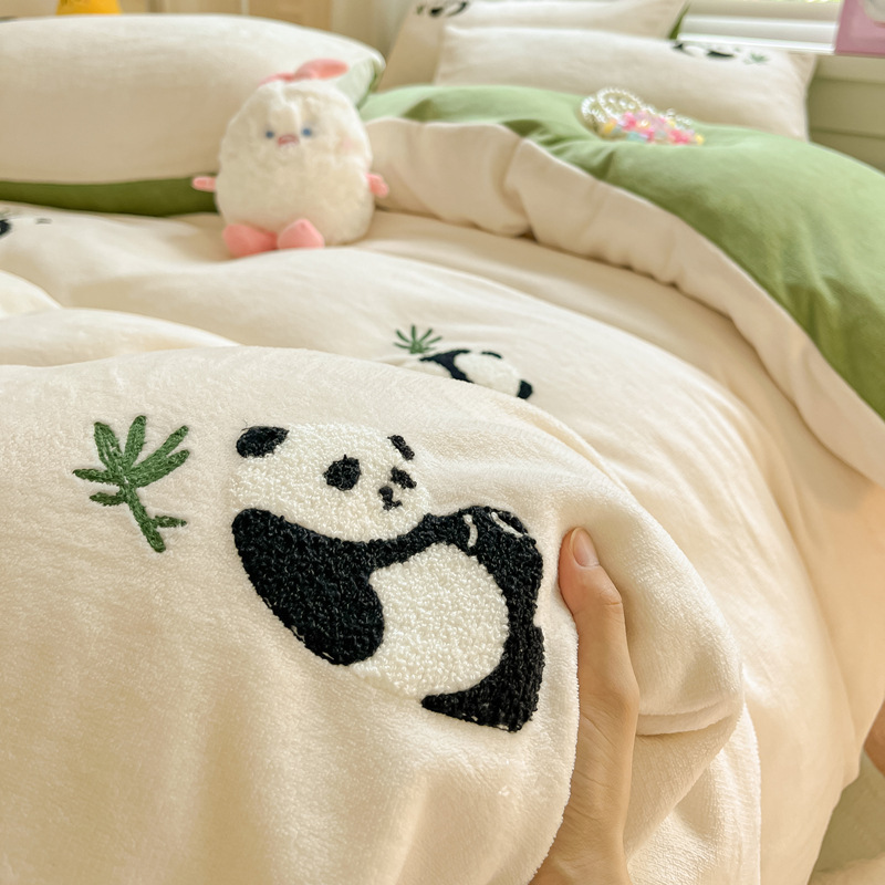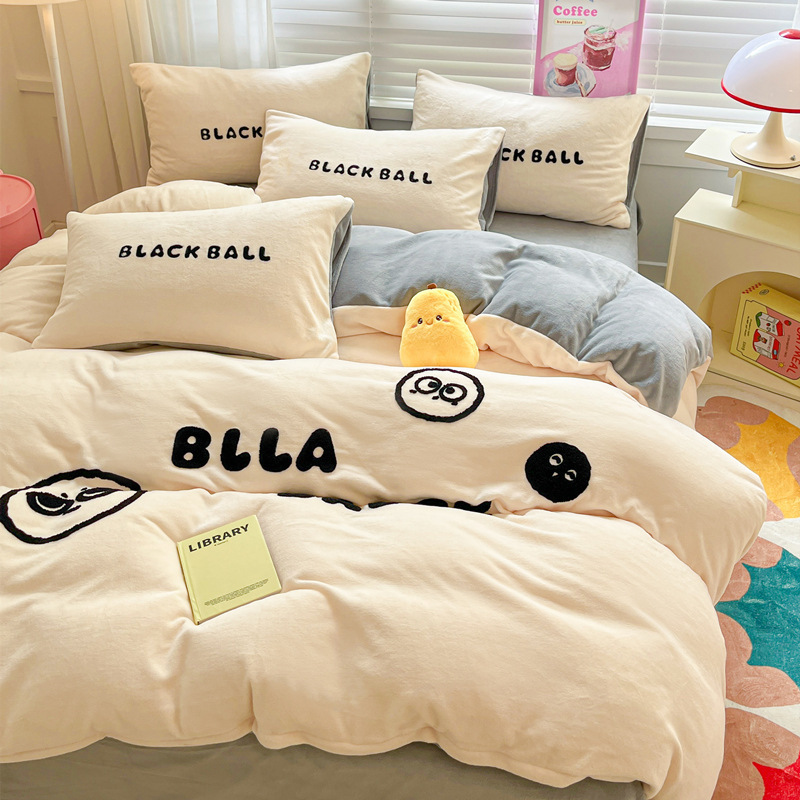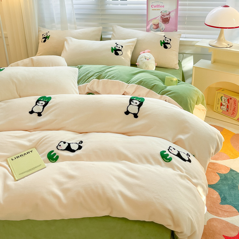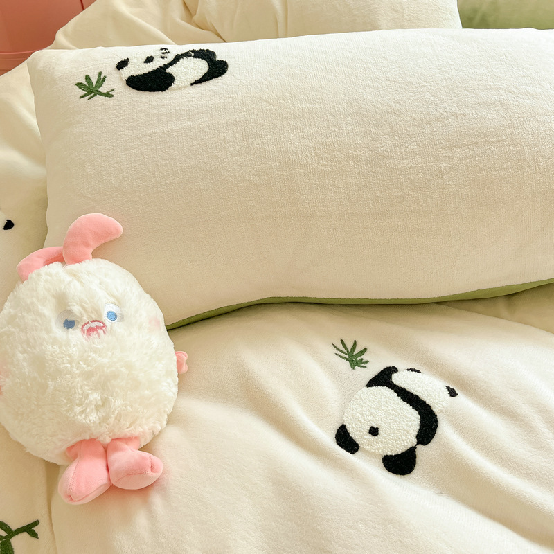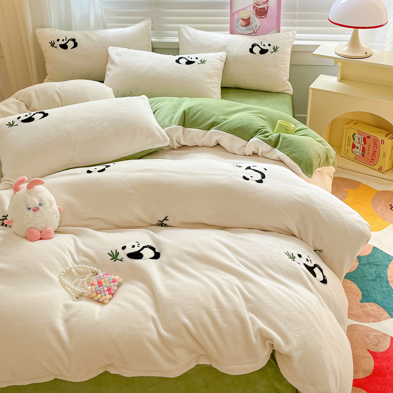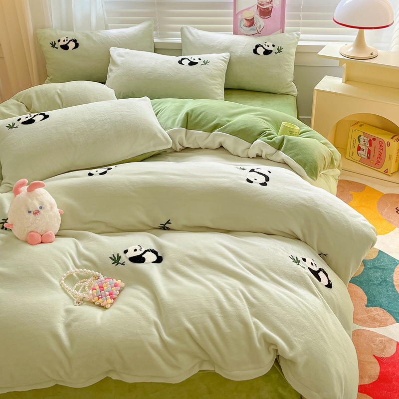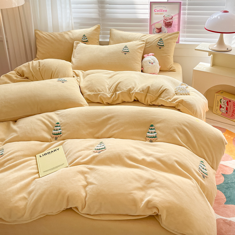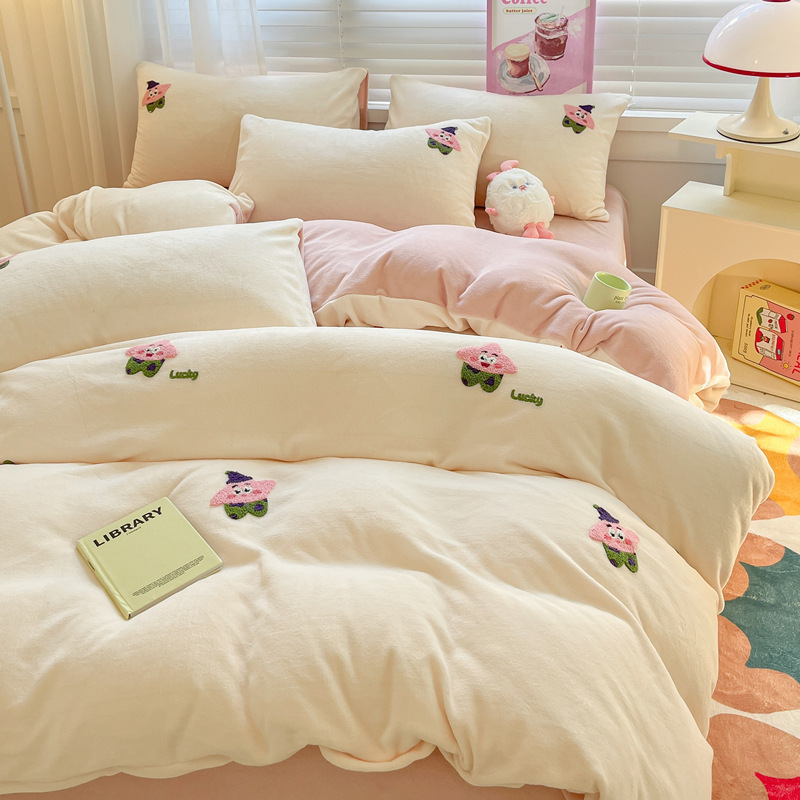 秋冬加厚保暖毛巾绣牛奶绒床上用品四件套床单被套床笠三件套批发
