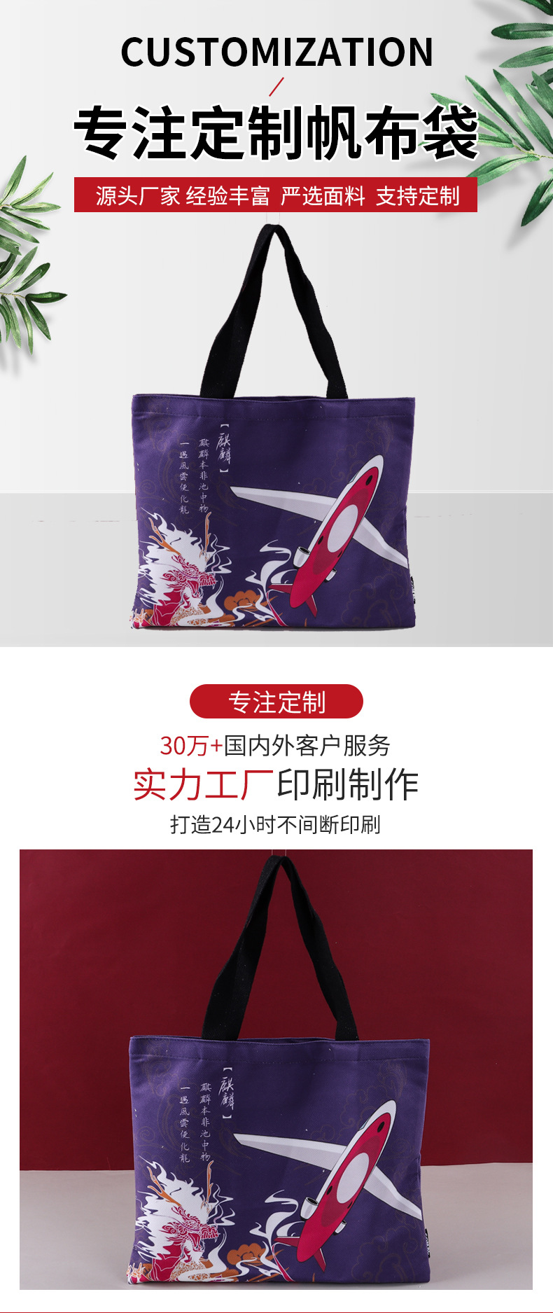 国风复古印花帆布包 女文艺百搭单肩包国潮棉质手拎包环保购物袋