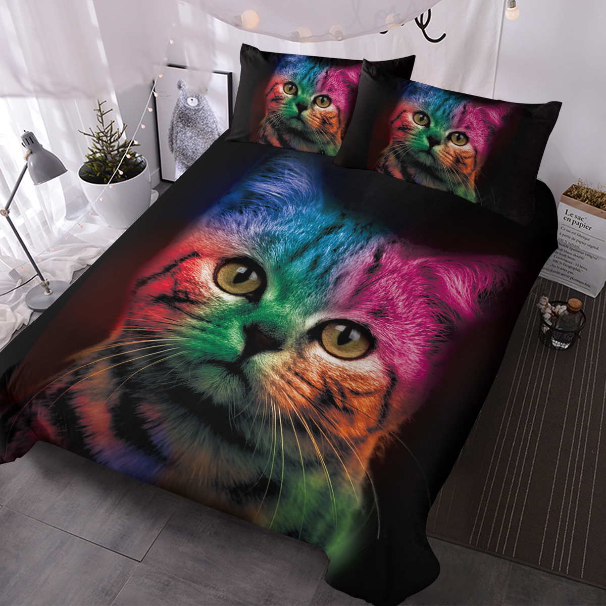 跨境家纺床上用品三件套欧美外贸卡通动物轻奢磨毛被套三件套可制