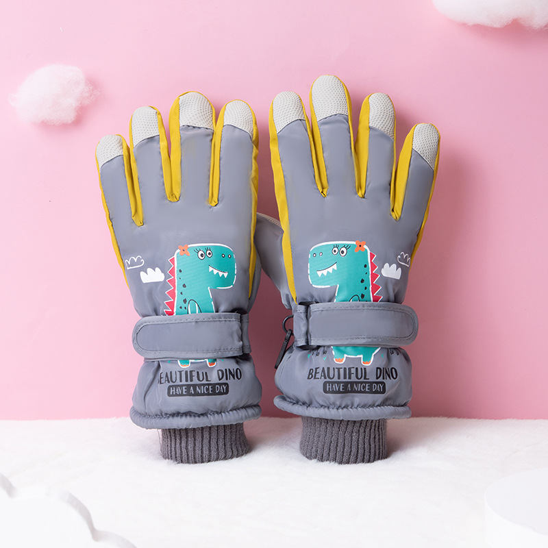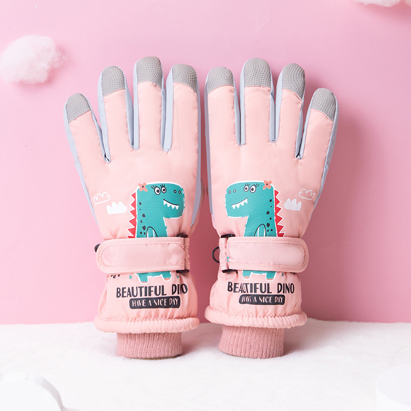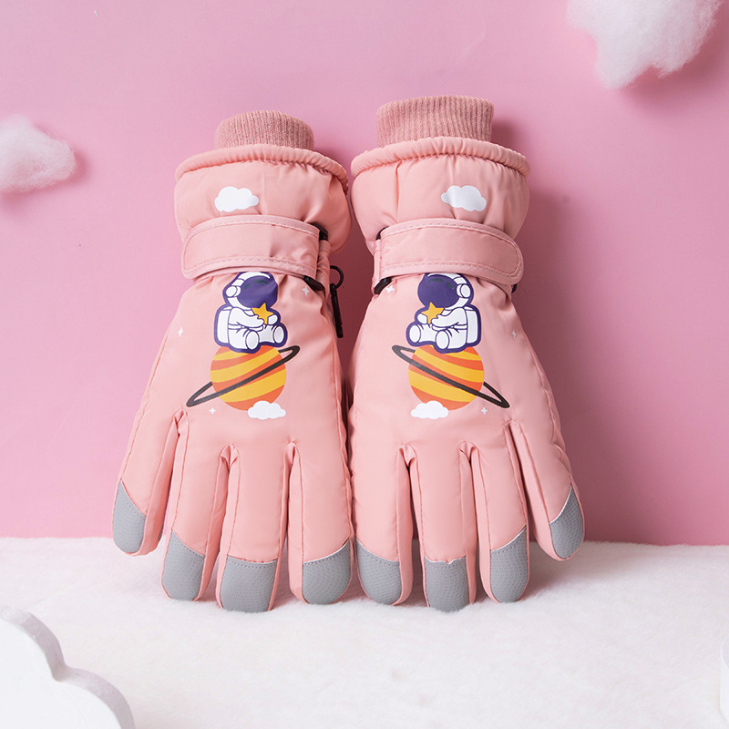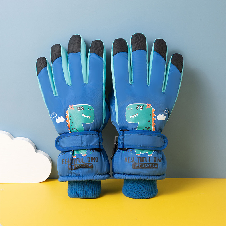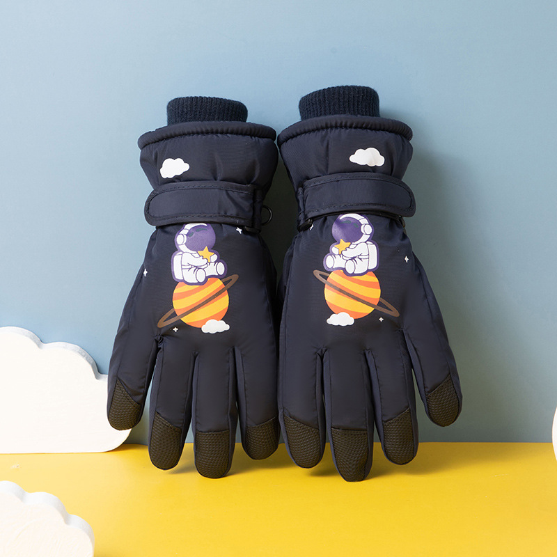 秋冬季户外儿童滑雪手套加绒加厚保暖防滑手套男女童卡通防水防寒