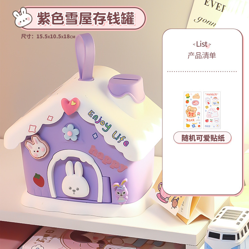 创意新款存钱罐ins高颜值可爱雪屋可存可取防摔兔子大号礼物储蓄