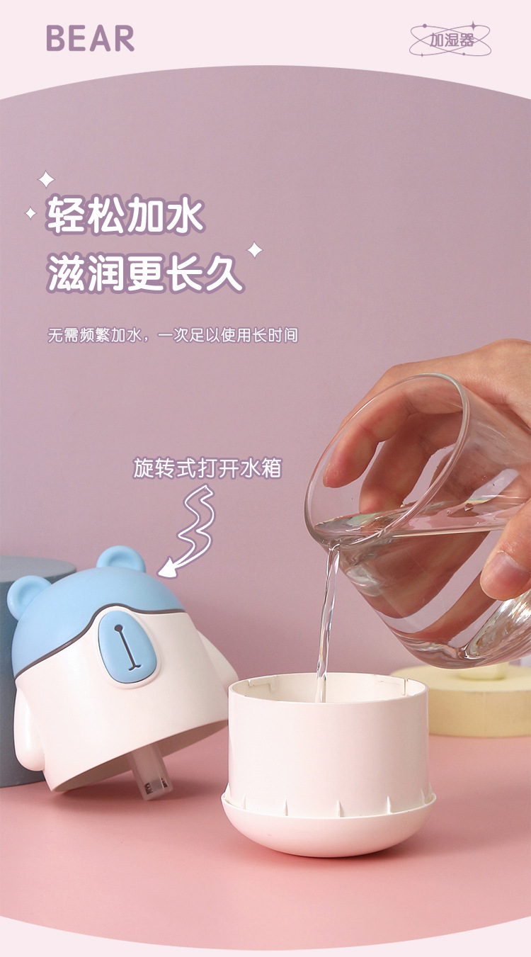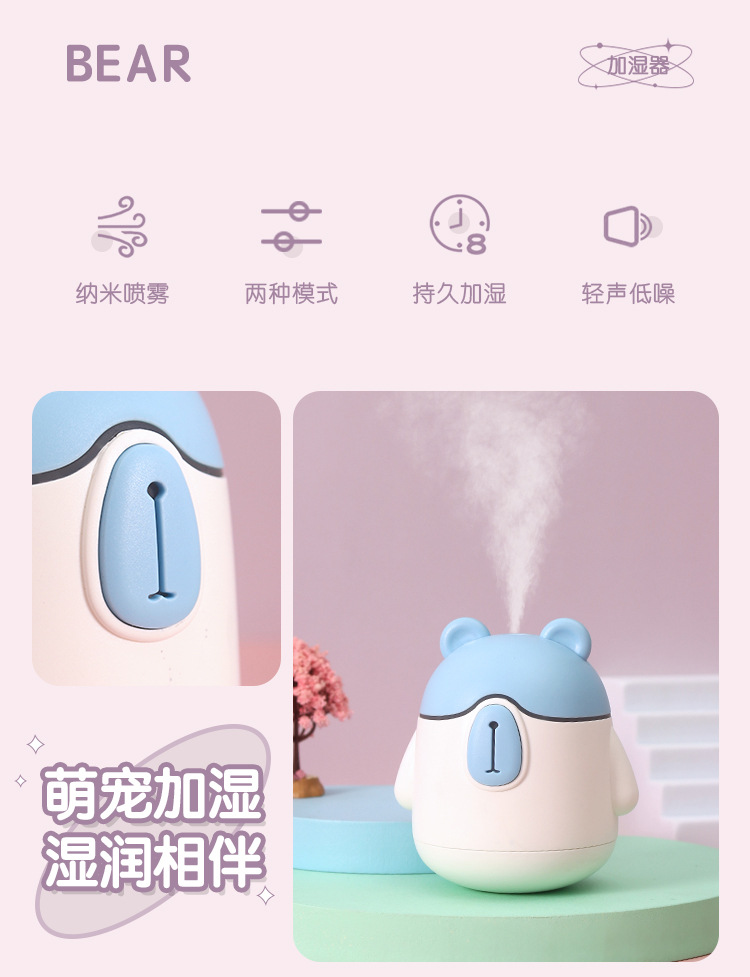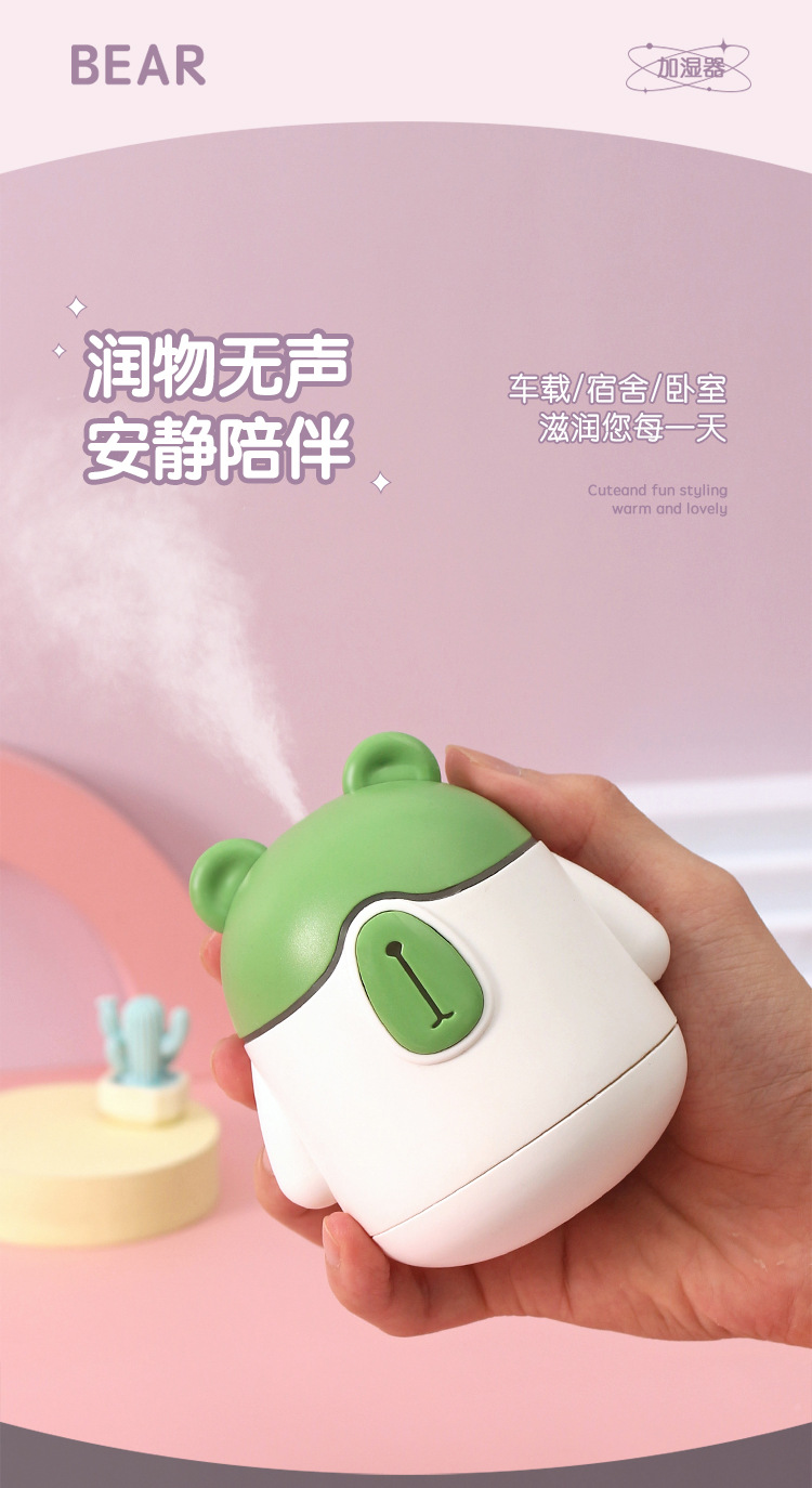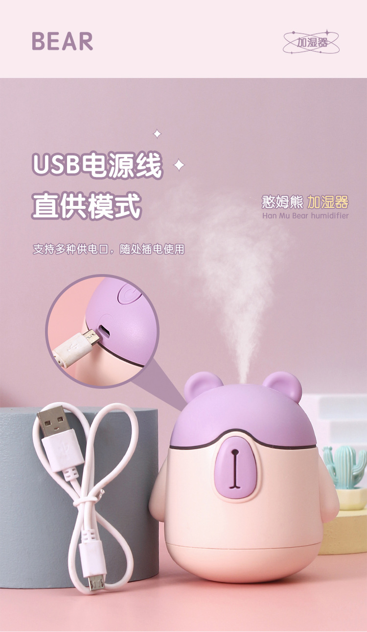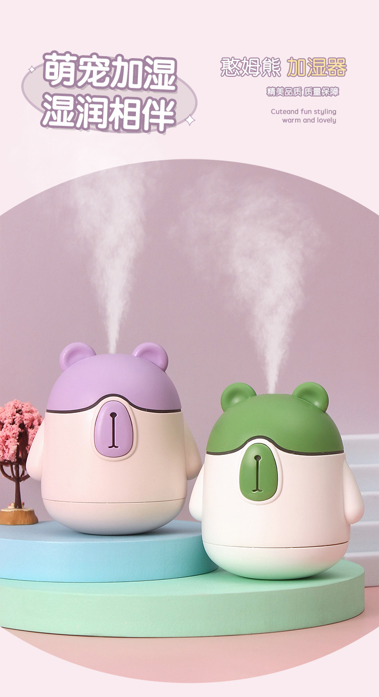 新款可爱憨母熊夜灯加湿器 USB小型桌面家用迷你空气补水加湿器