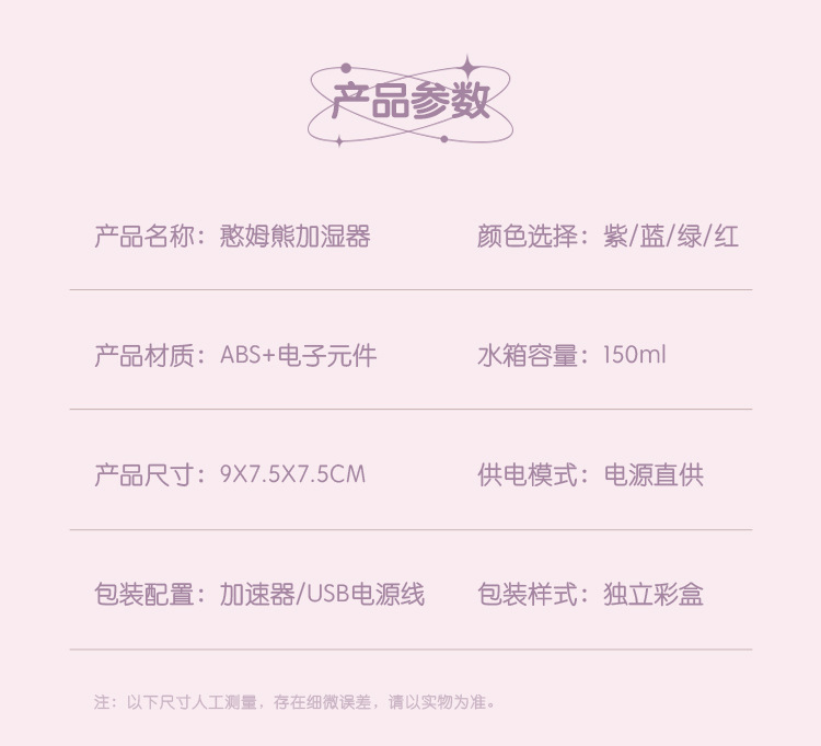 【产品名称】憨母熊夜灯加湿器