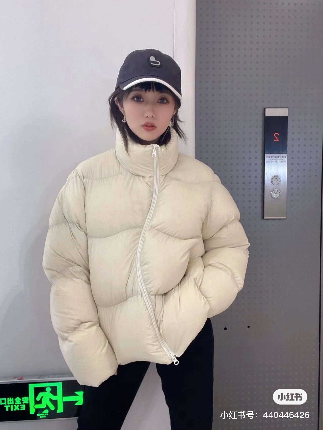 立领羽绒服女短款2023年冬季宽松加厚棉服小个子白鸭绒面包服外套