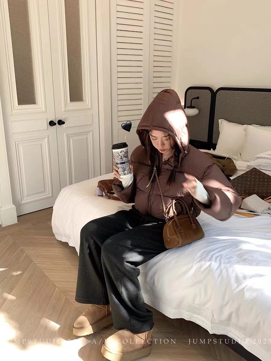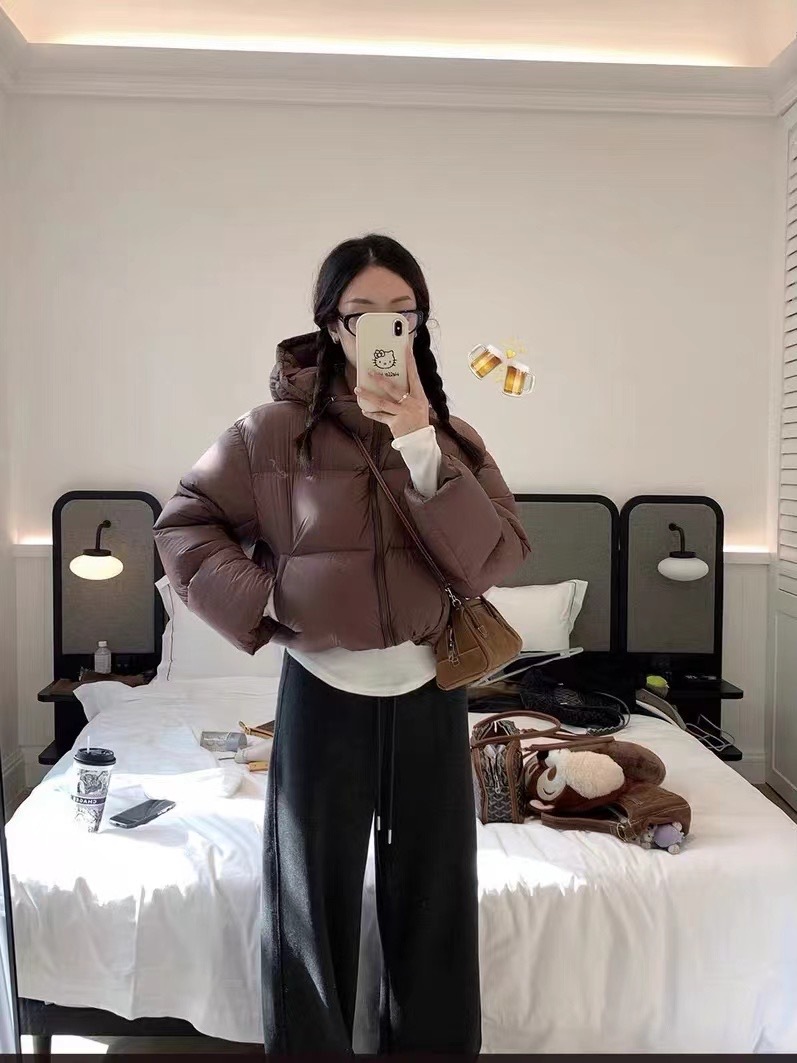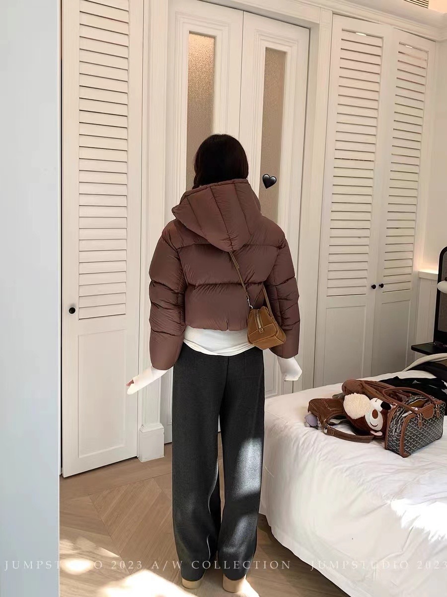 肯豆风90白鸭绒面包羽绒服女短款2023冬季美拉德色小个子加厚外套