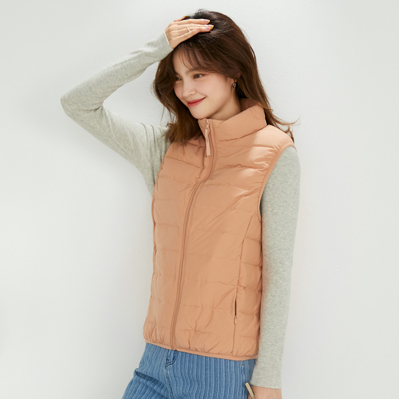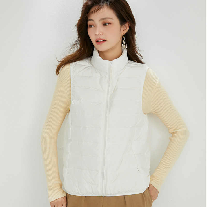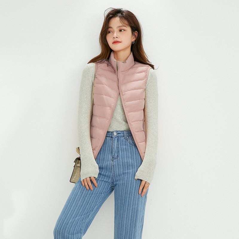 轻薄羽绒服马甲女2023年新款秋冬90白鸭绒坎肩韩版立领短款背心潮