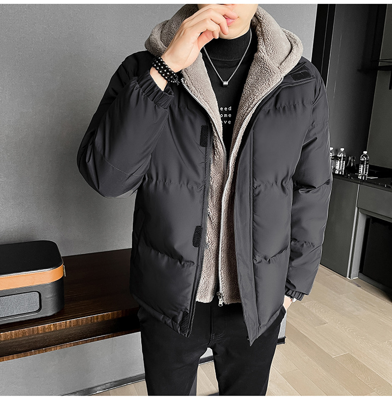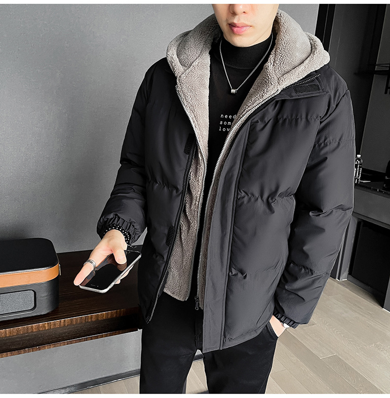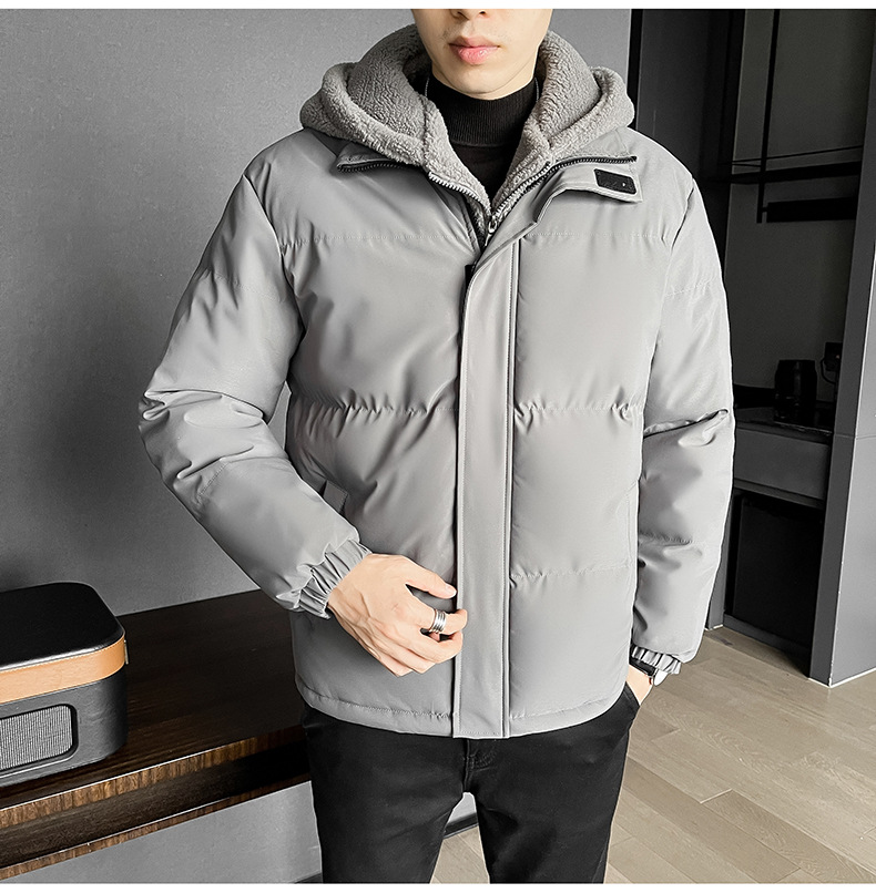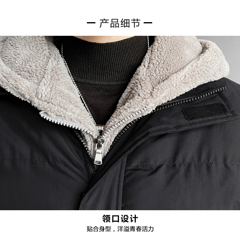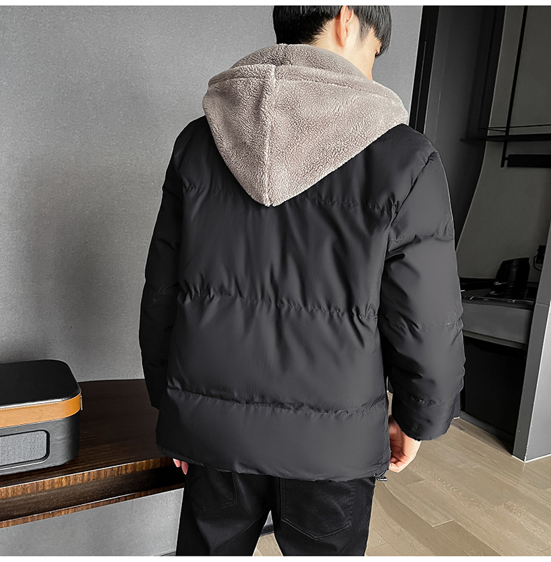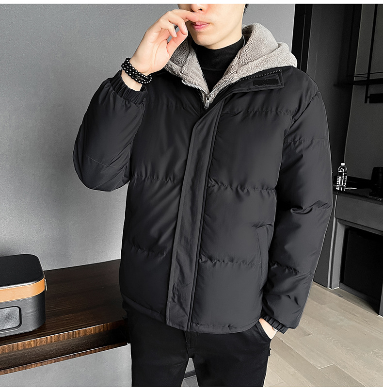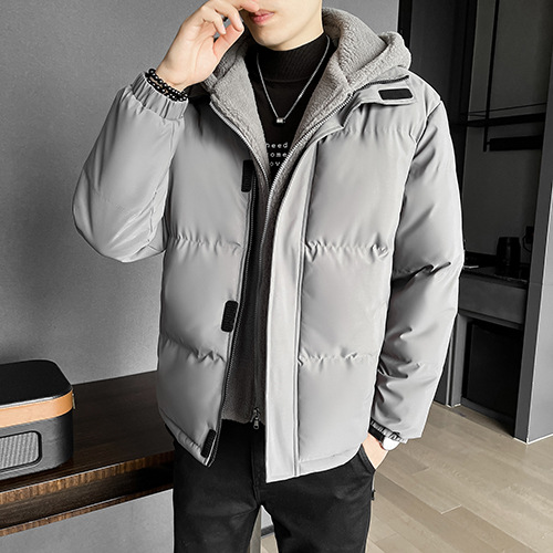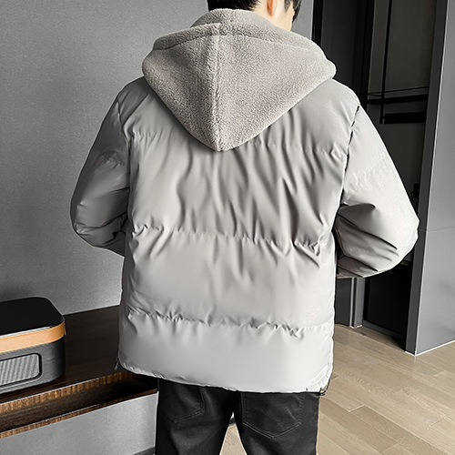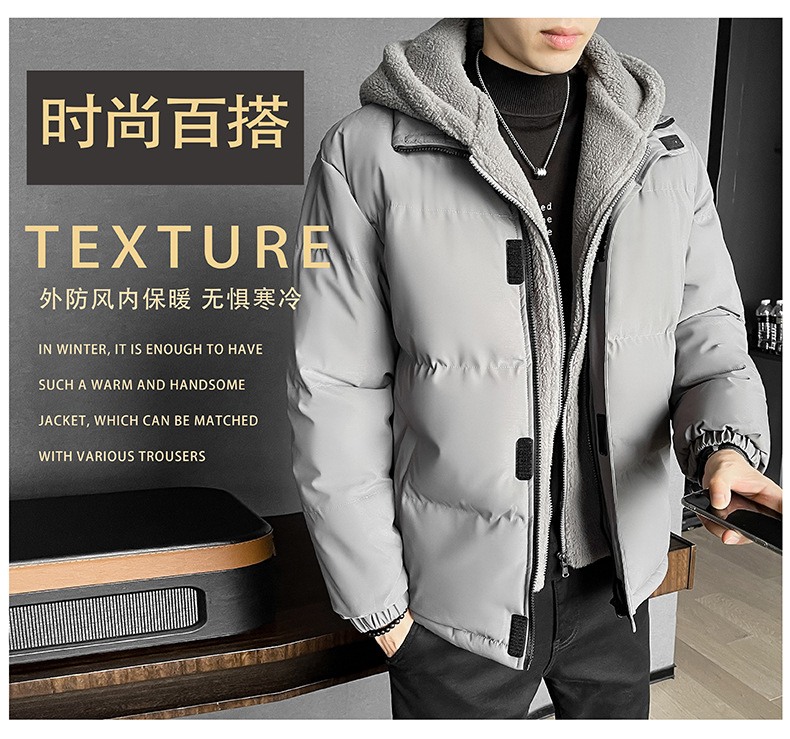 棉衣男式现货加肥加大码2023冬季新款假两件连帽面包服摇粒绒外套