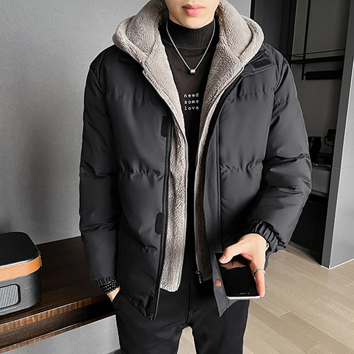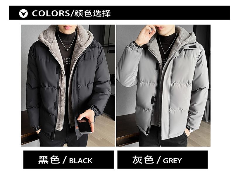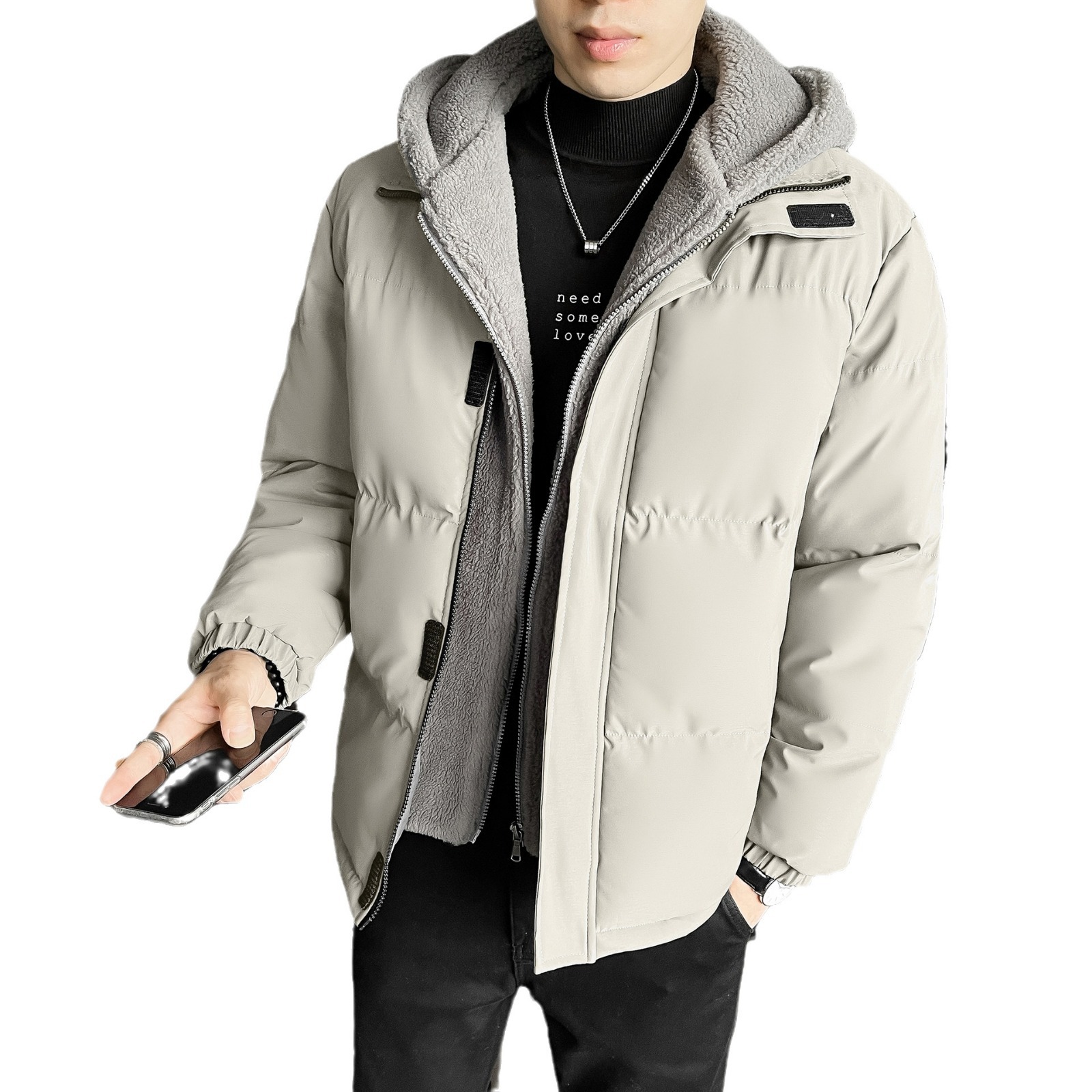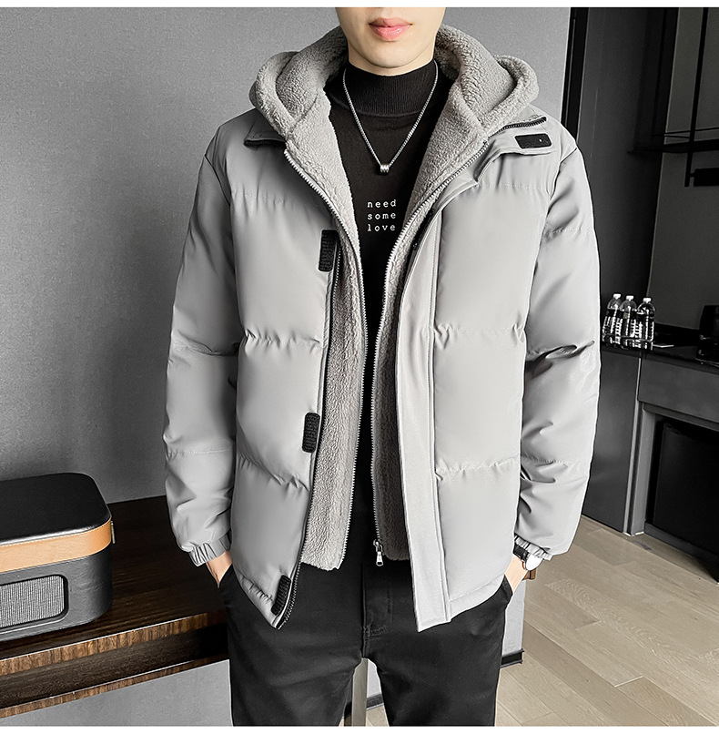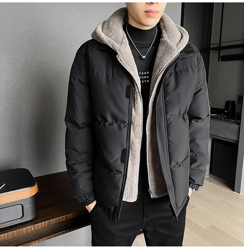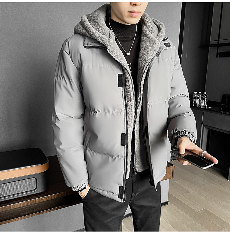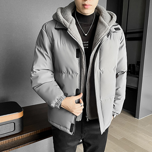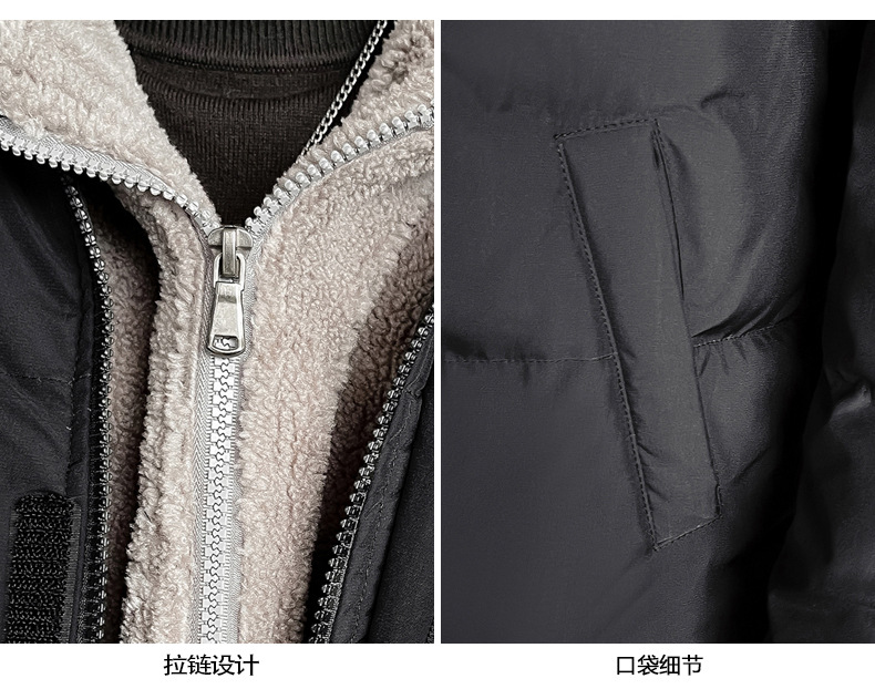 棉衣男式现货加肥加大码2023冬季新款假两件连帽面包服摇粒绒外套