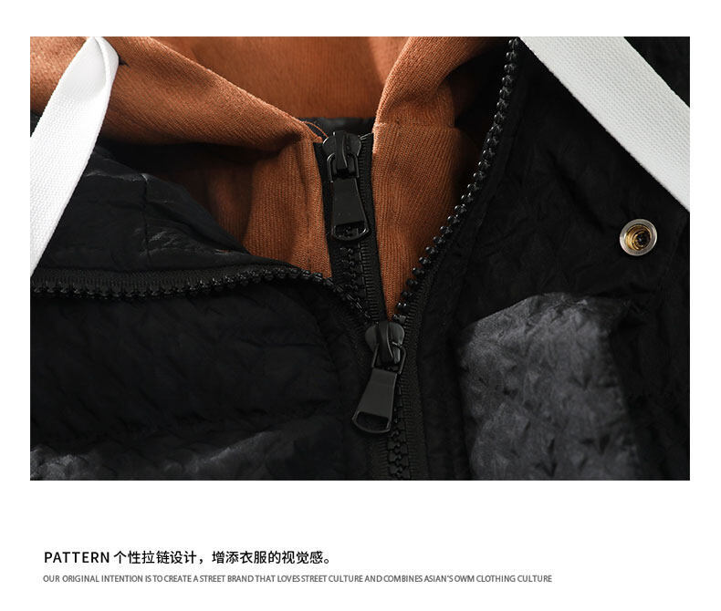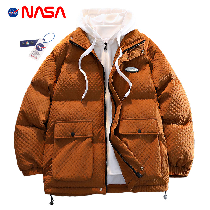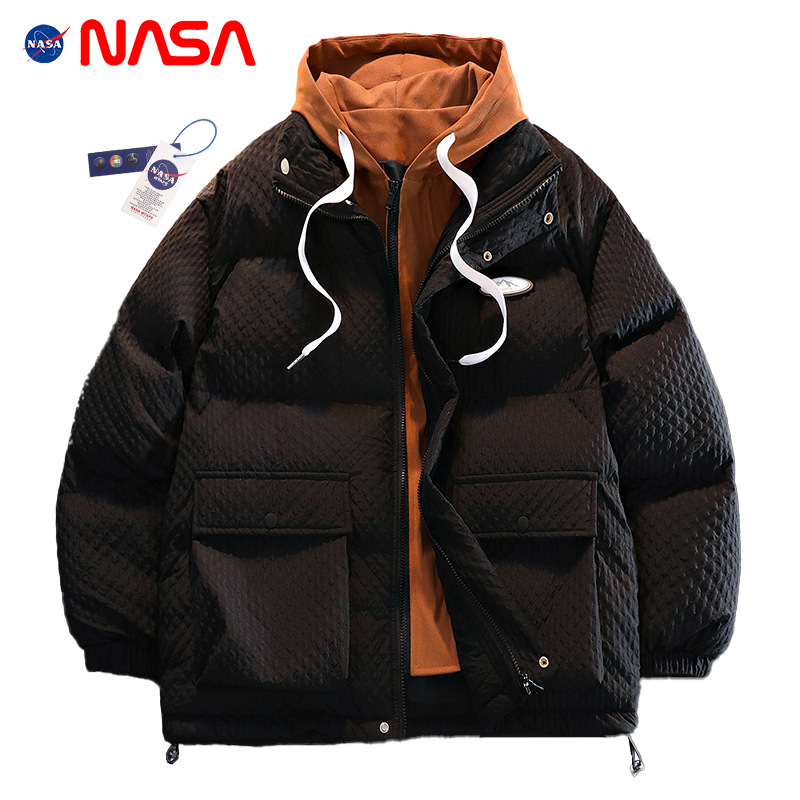 NASA联名 日系假两件棉衣男士冬季新款潮牌痞帅连帽保暖羽绒棉服