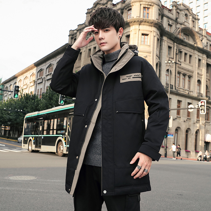 2023新款冬季羽绒服男士中长款白鸭绒保暖加厚休闲羽绒服90绒外套