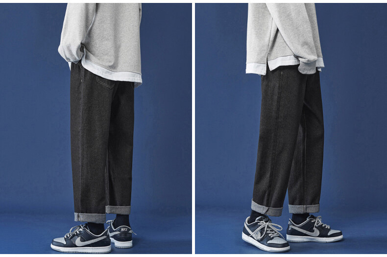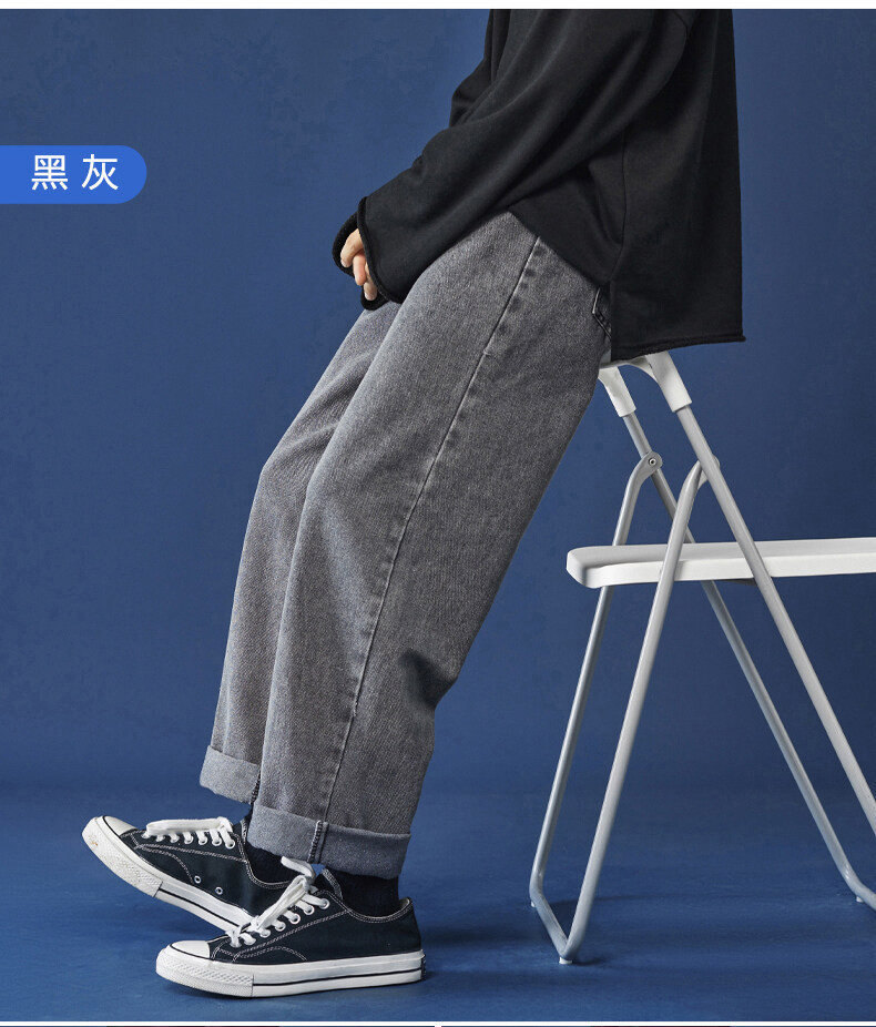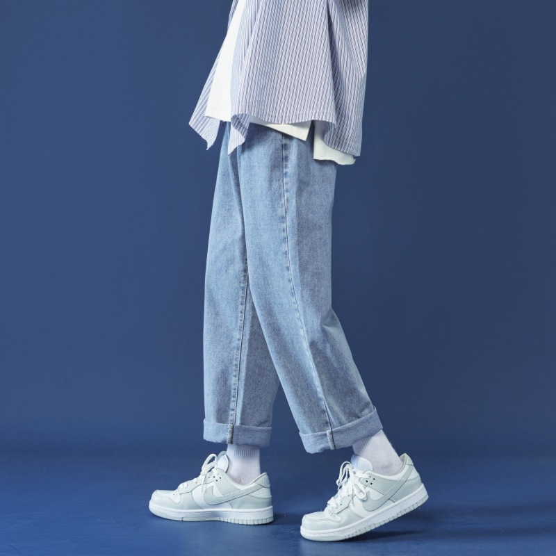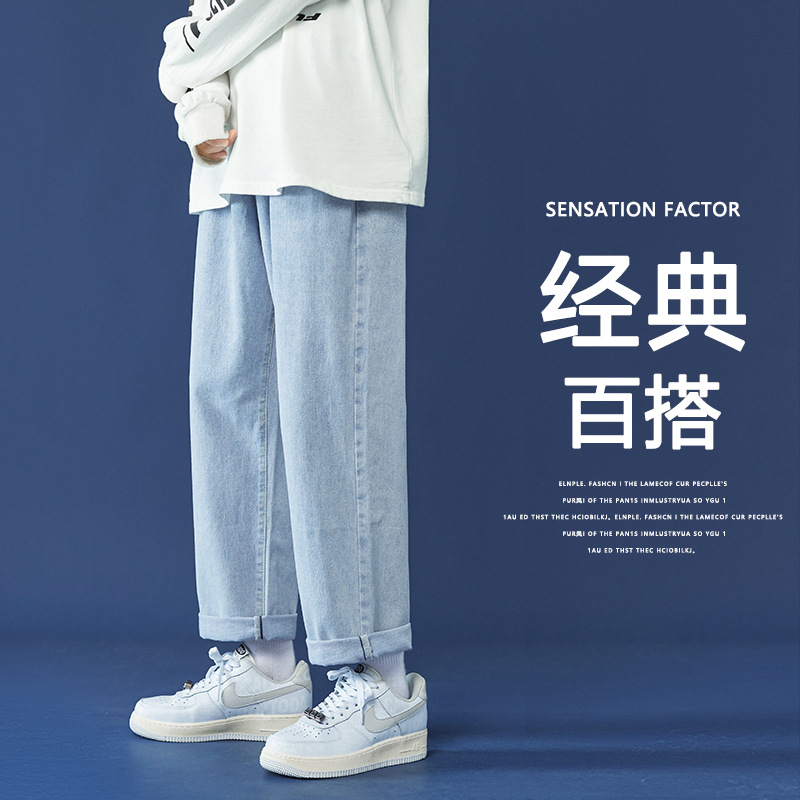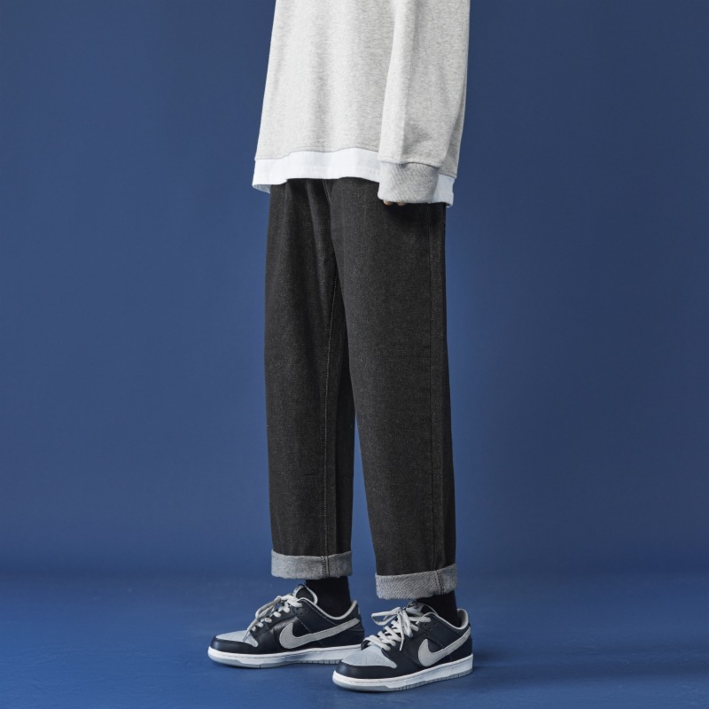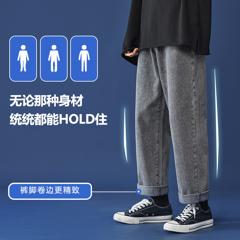 牛仔裤男秋冬季宽松直筒韩版潮牌休闲九分裤子学生百搭潮流长裤男