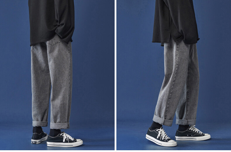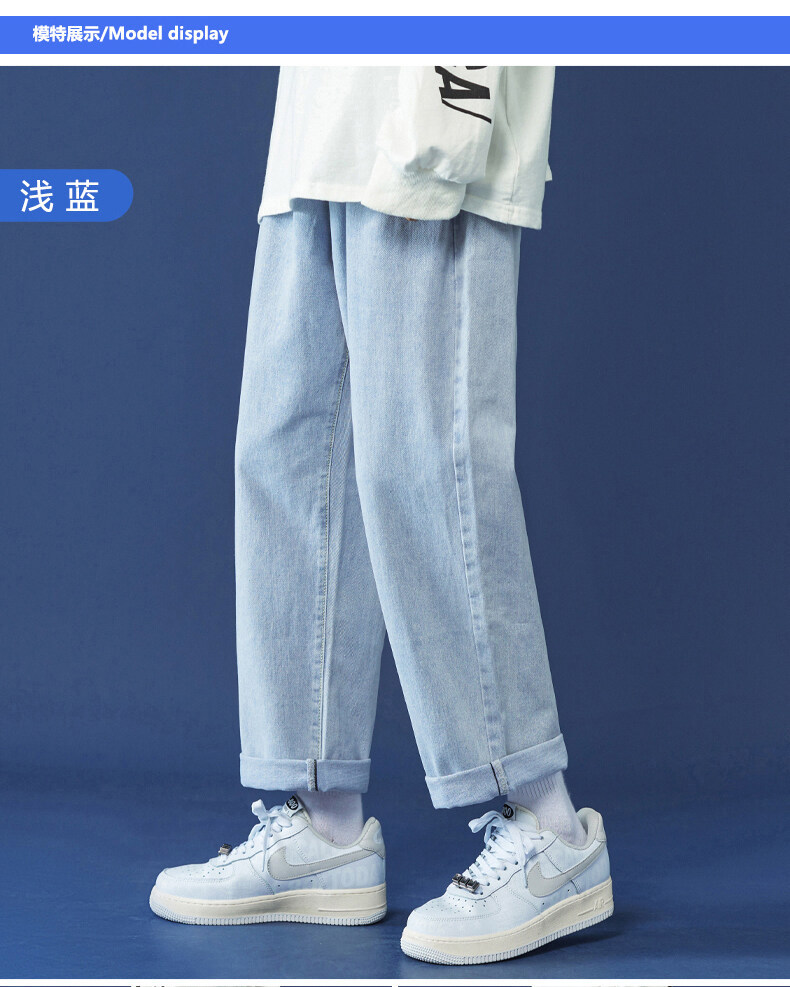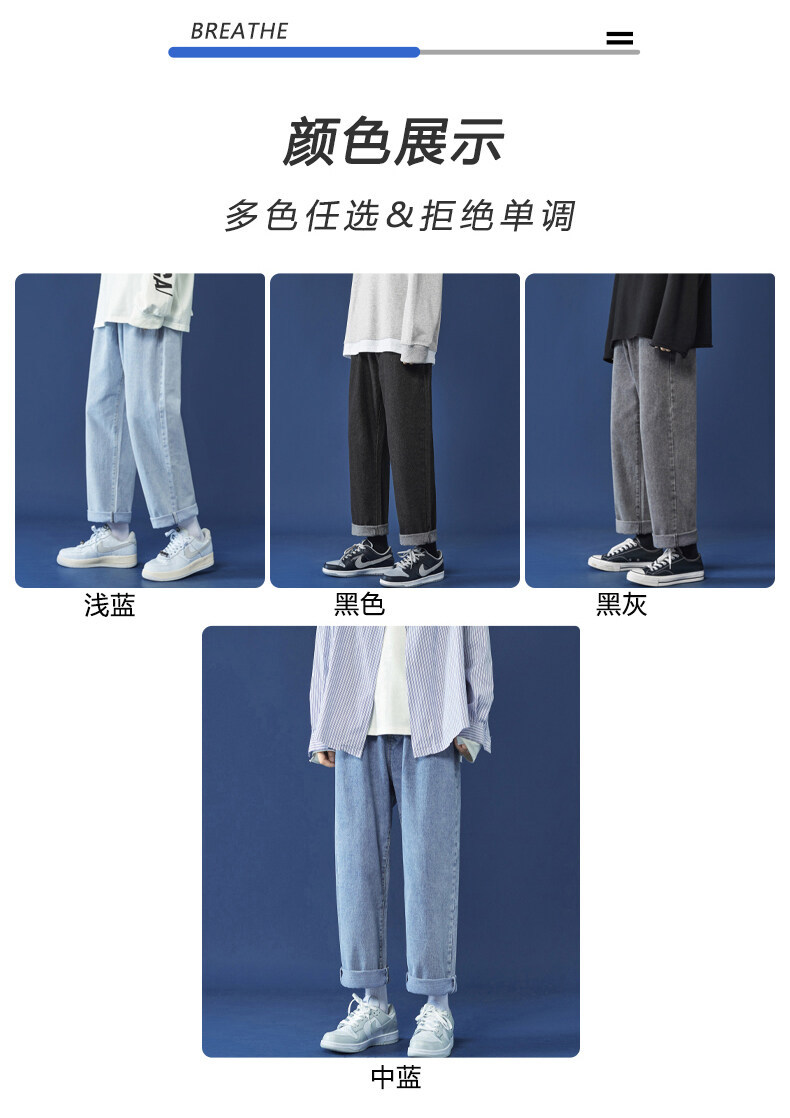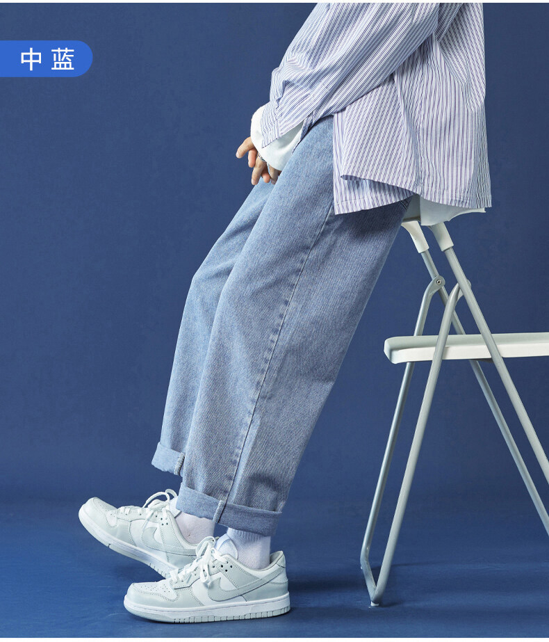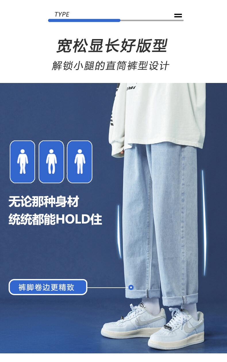 牛仔裤男秋冬季宽松直筒韩版潮牌休闲九分裤子学生百搭潮流长裤男