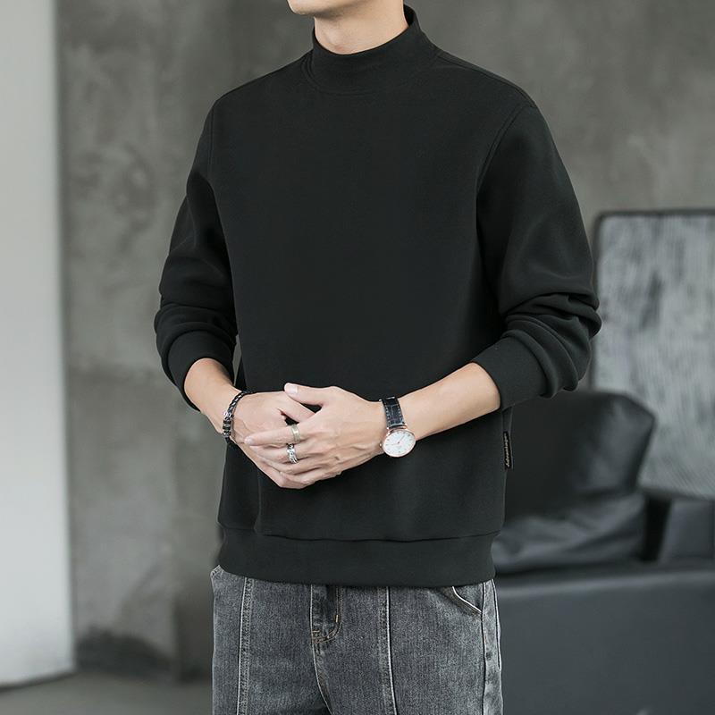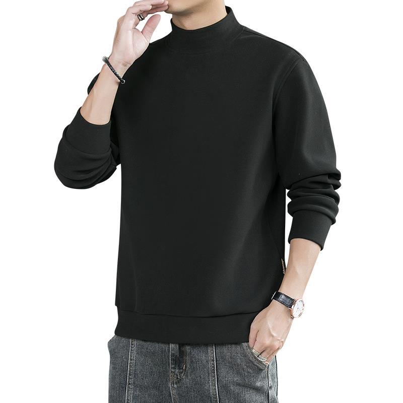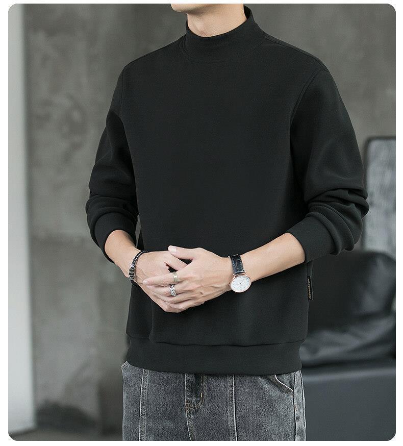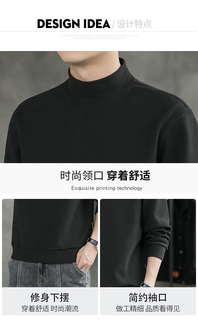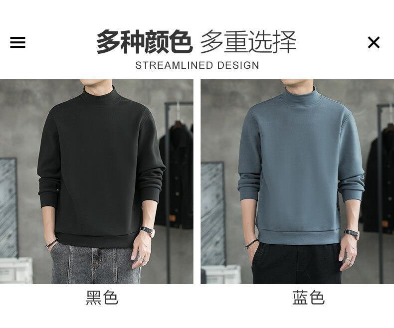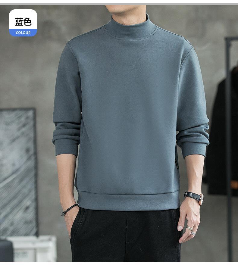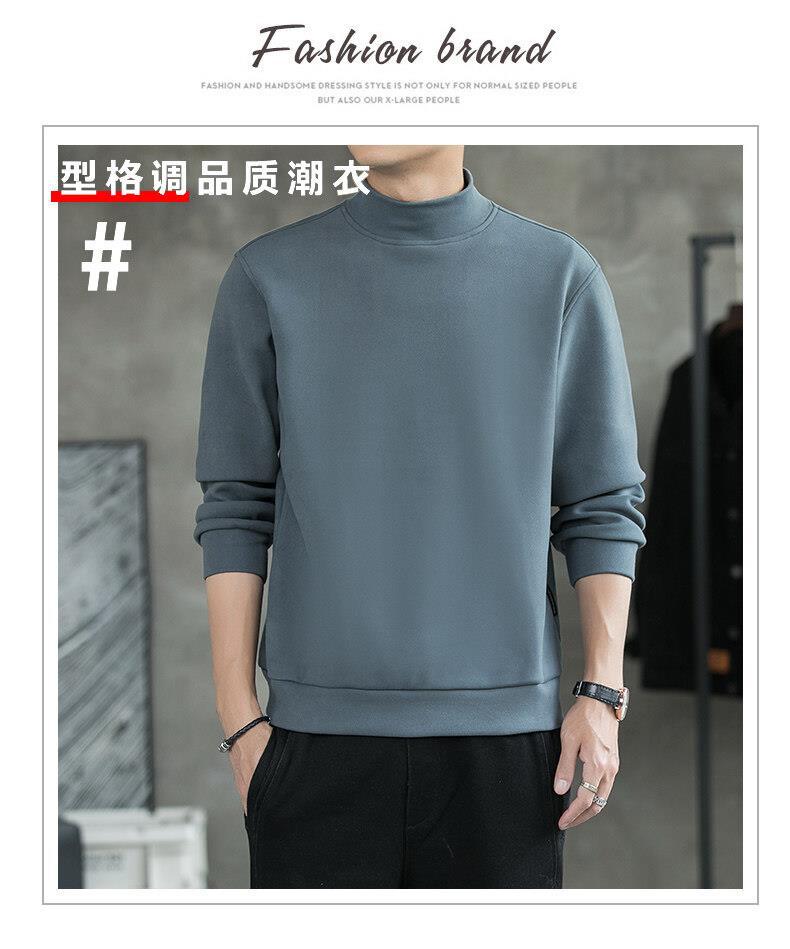 半高领打底衫卫衣男长袖双面德绒圆领t恤加绒加厚休闲卫衣服潮