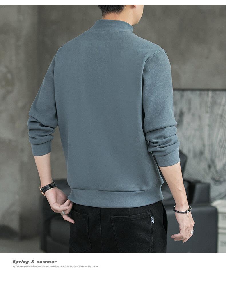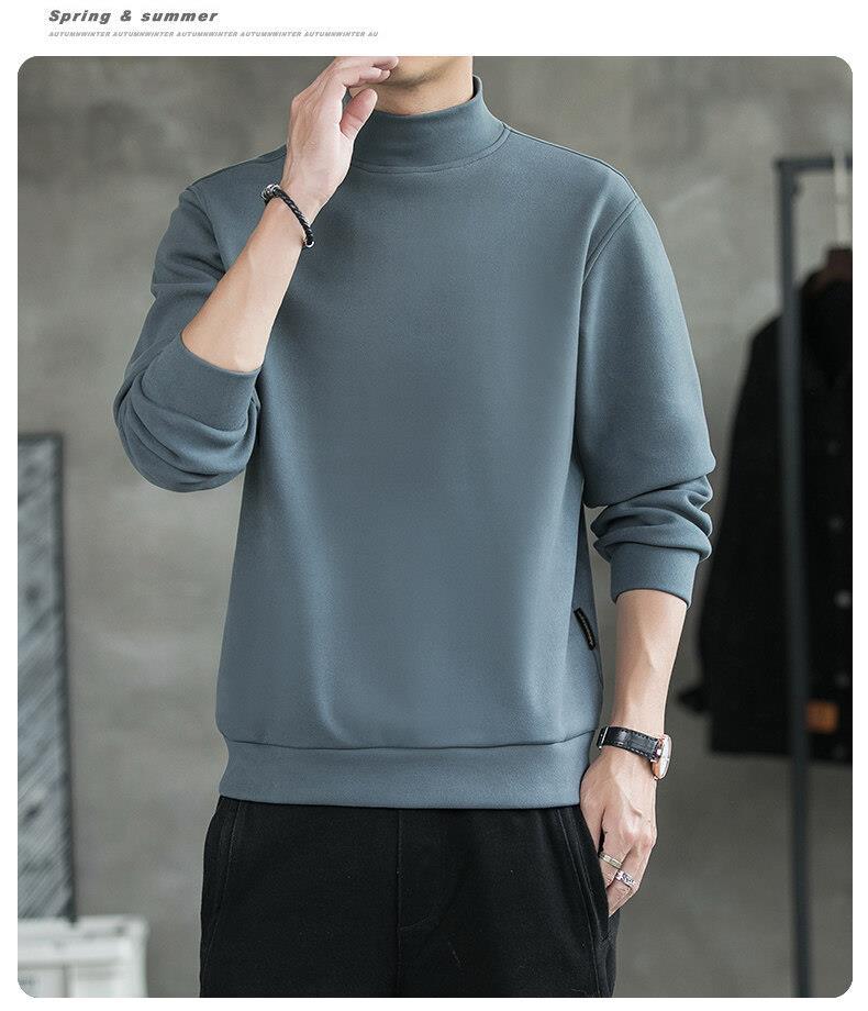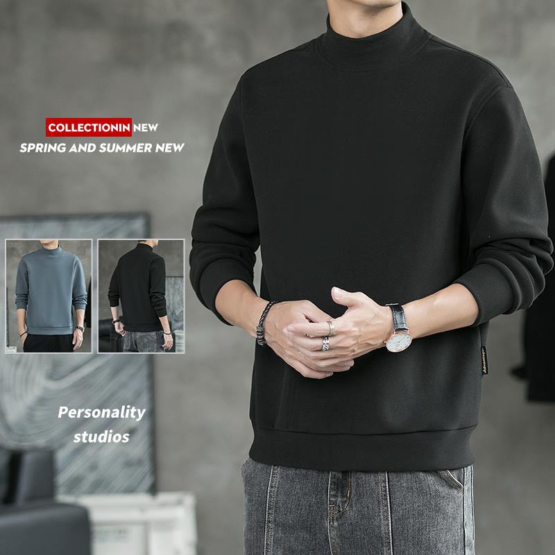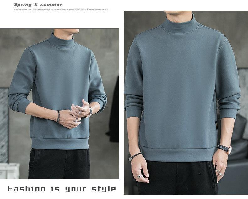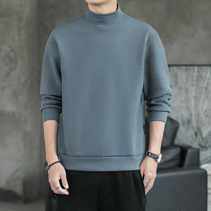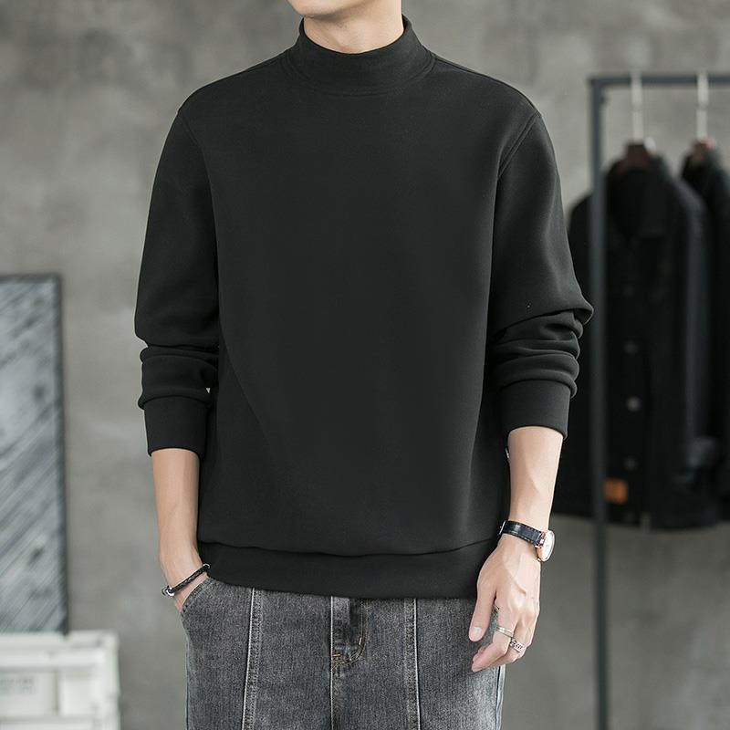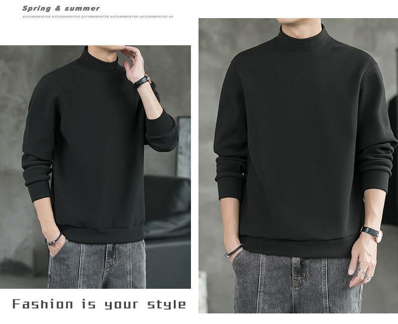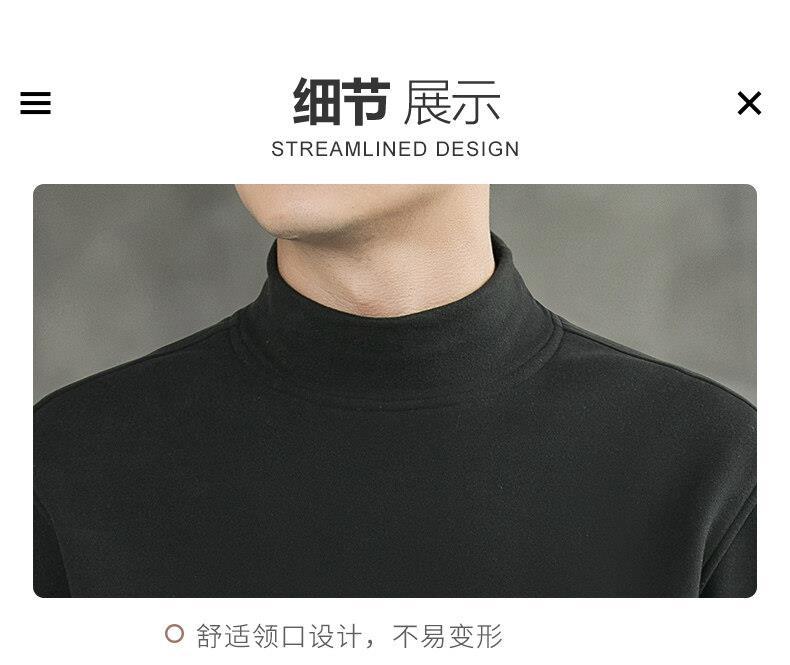 半高领打底衫卫衣男长袖双面德绒圆领t恤加绒加厚休闲卫衣服潮