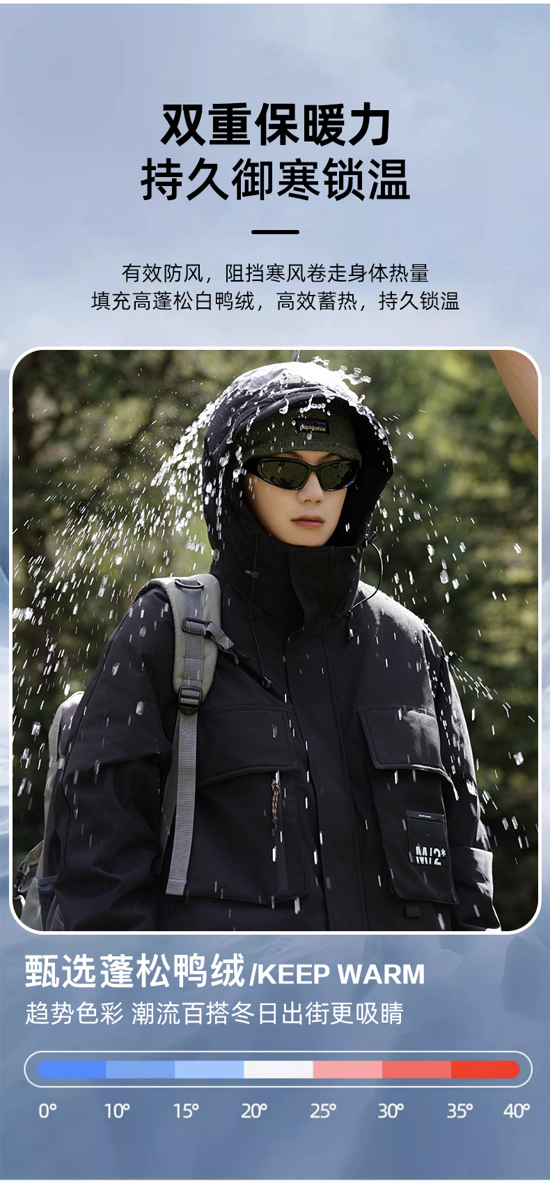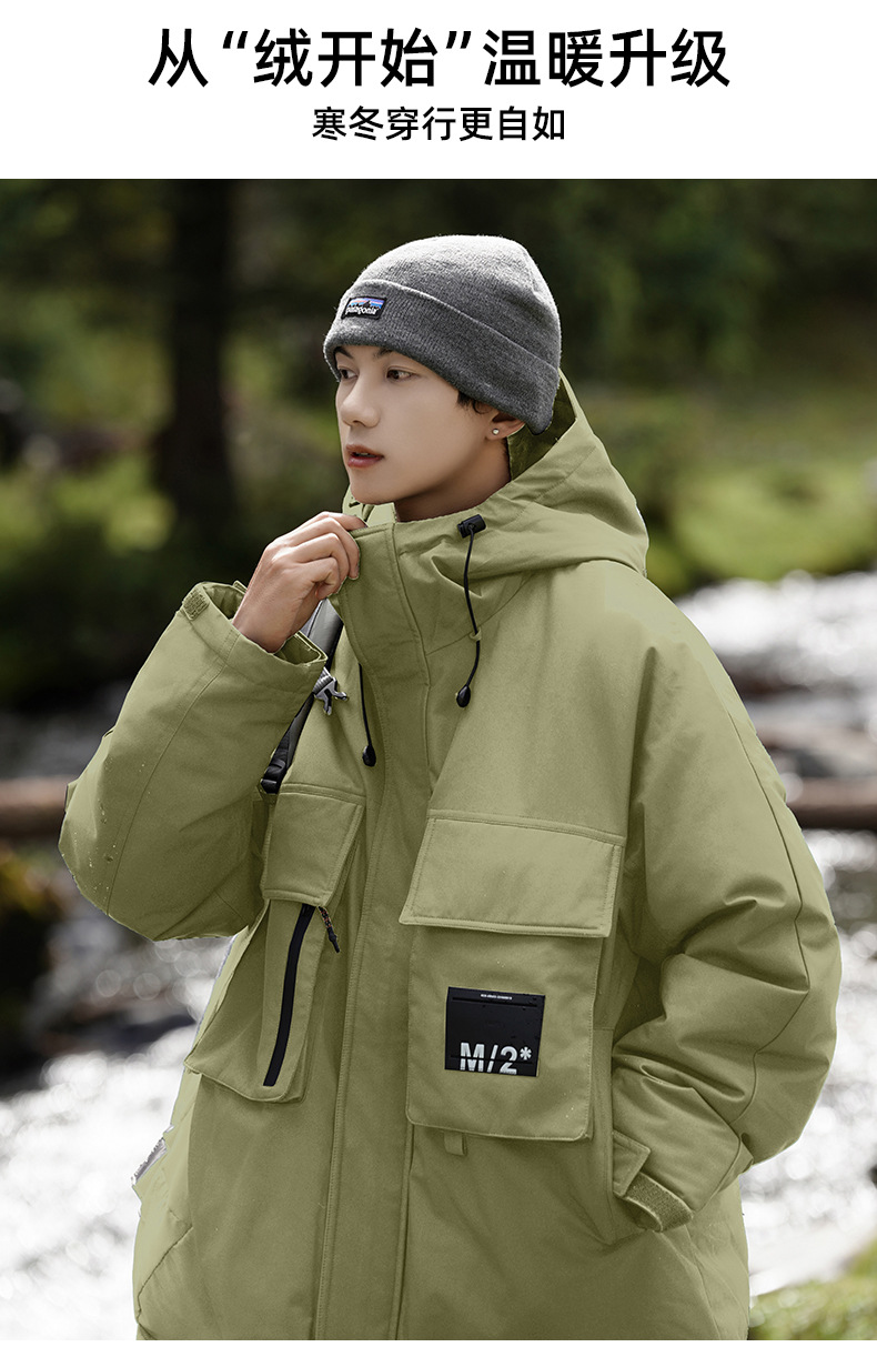 羽绒服男新款冬季潮流加厚短款工装防水青年大码羽绒服外套冲锋衣