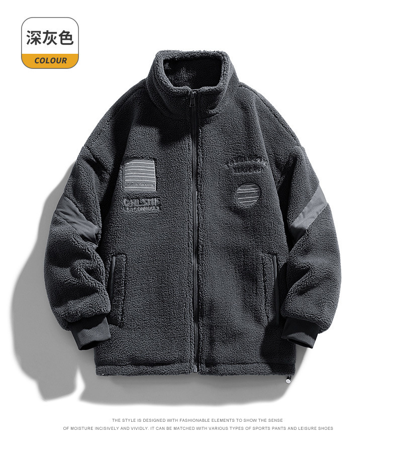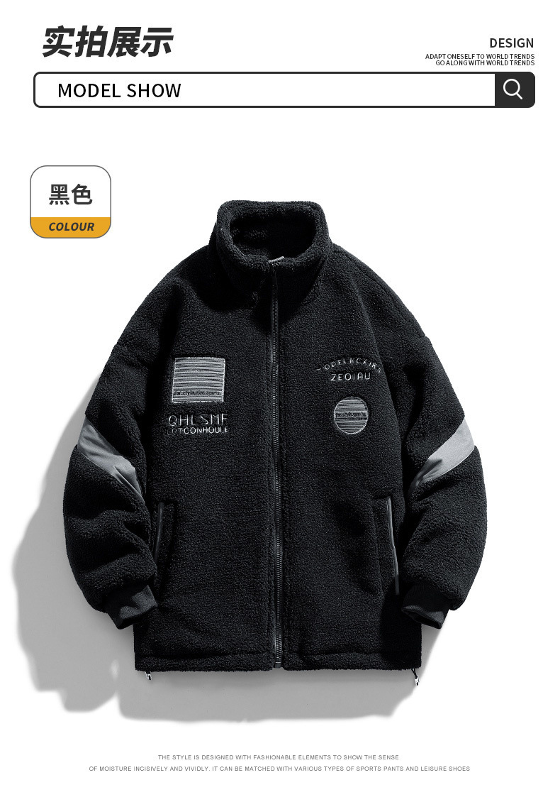 男士高街羊羔外套情侣颗粒绒外套秋冬新款冬装日系潮流加厚棉服