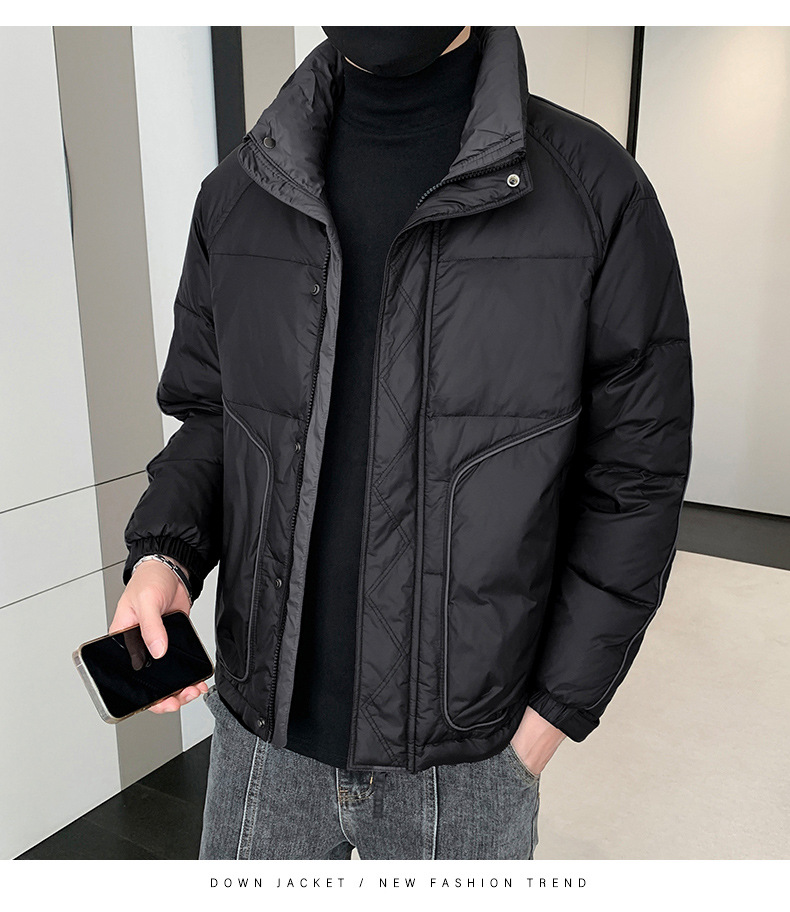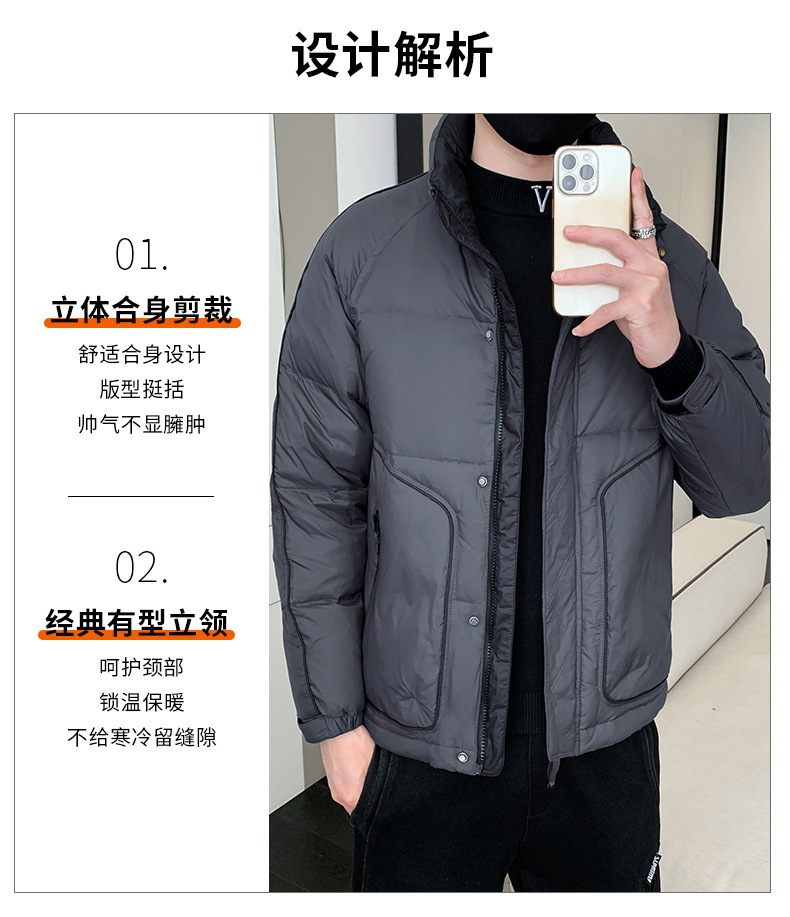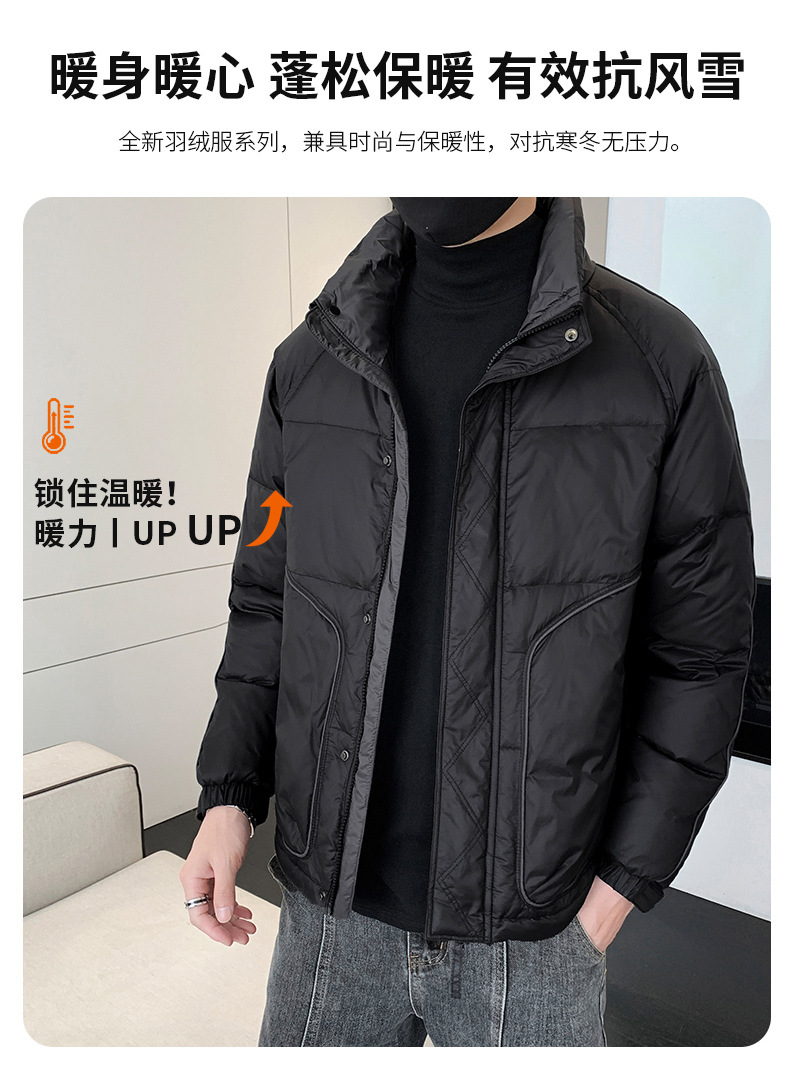 2023冬季新款潮牌男士抗寒保暖休闲立领白鸭绒青年羽绒服男装外套