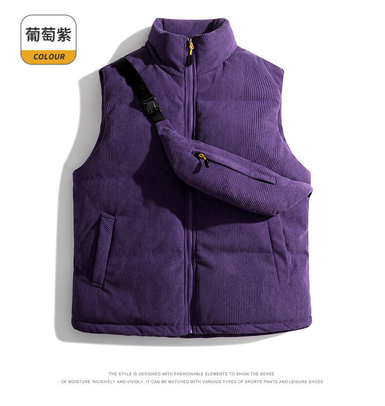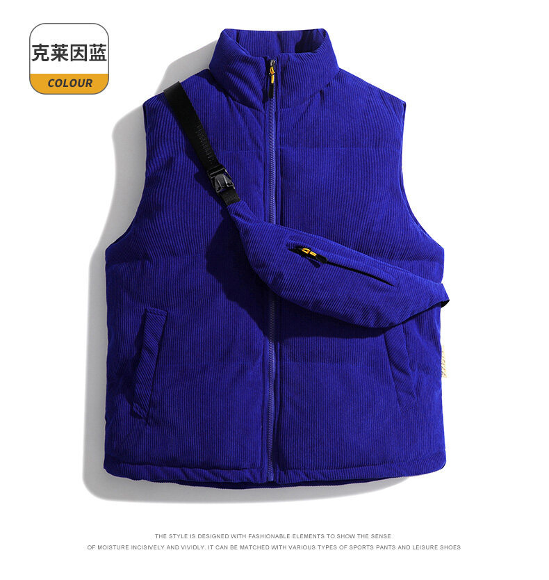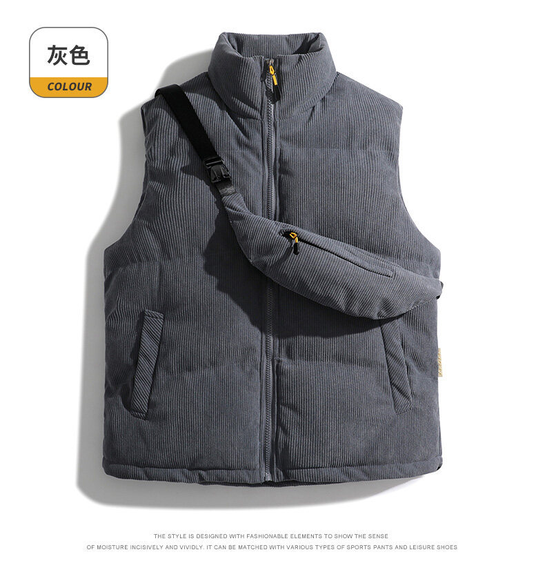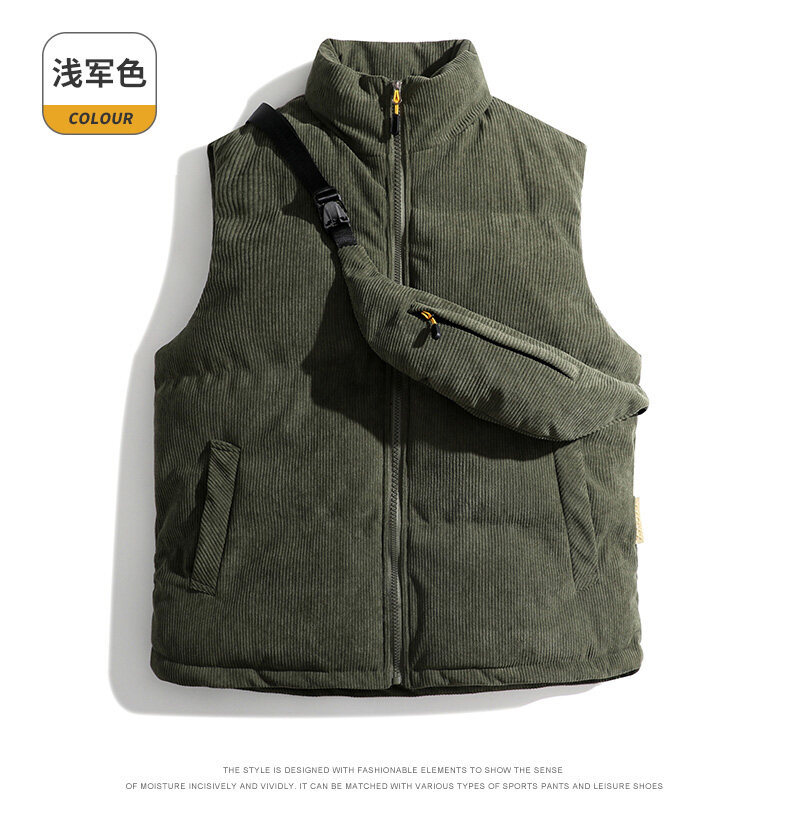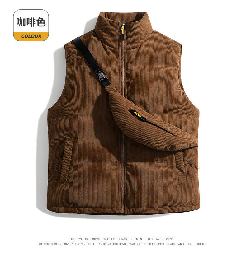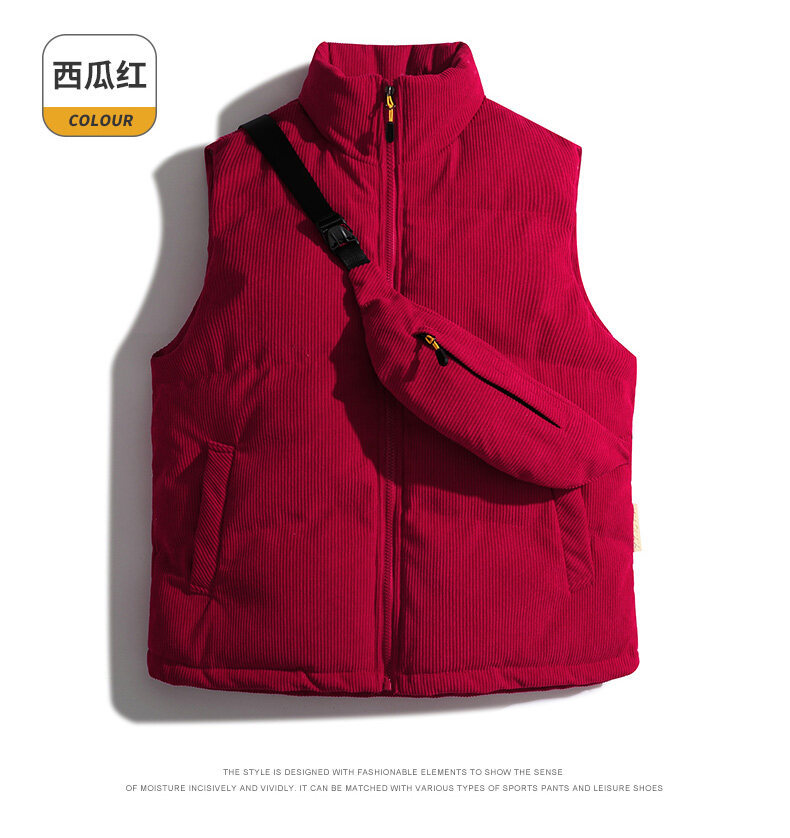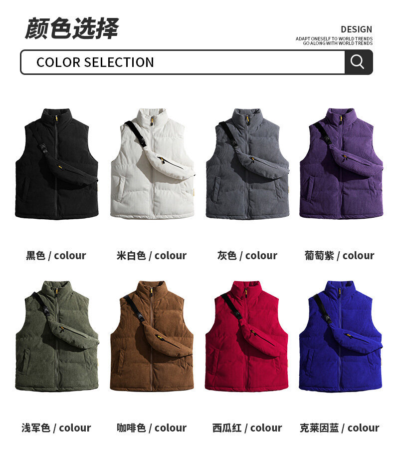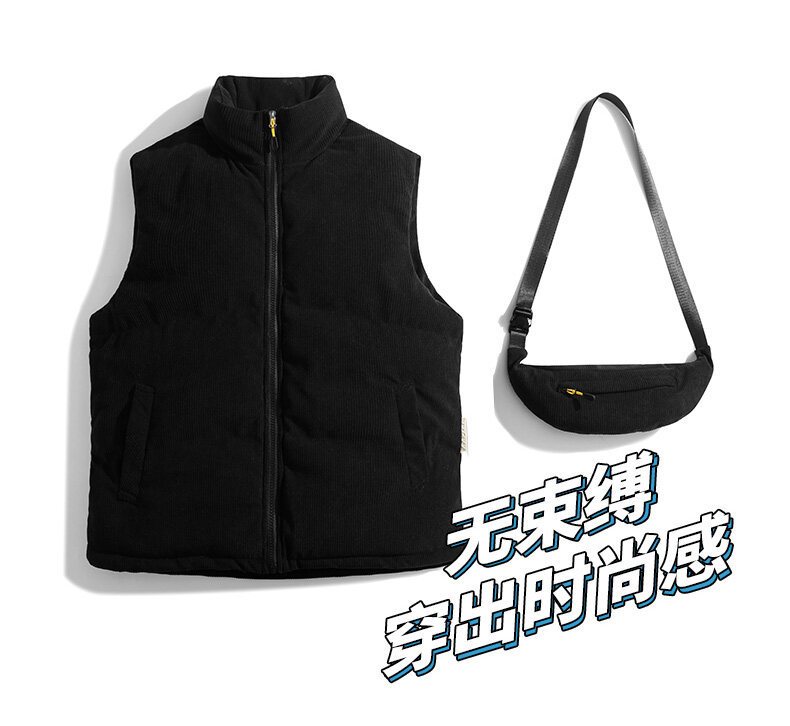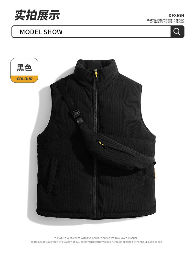冬季男保暖羽绒棉马甲灯芯绒潮牌港风马甲送小挎包8色男女同款