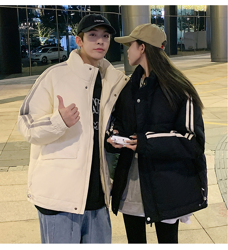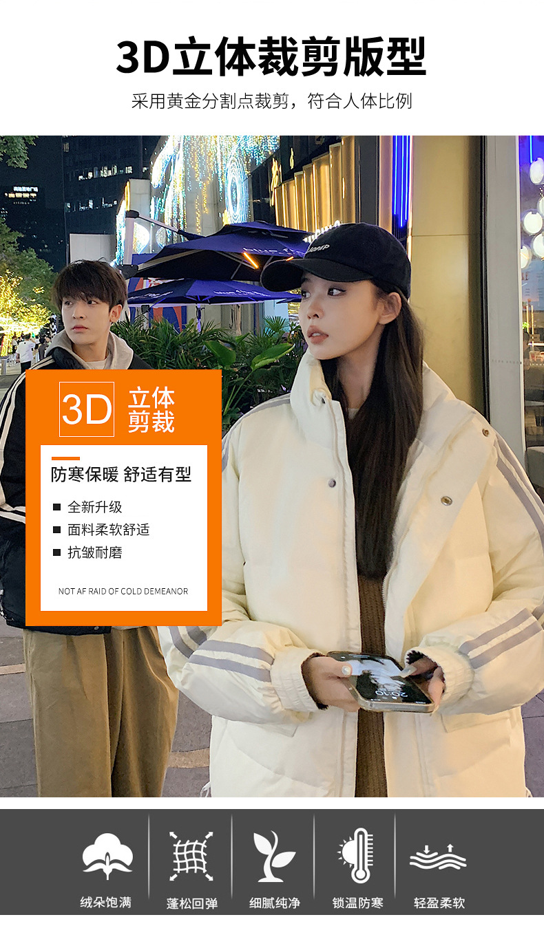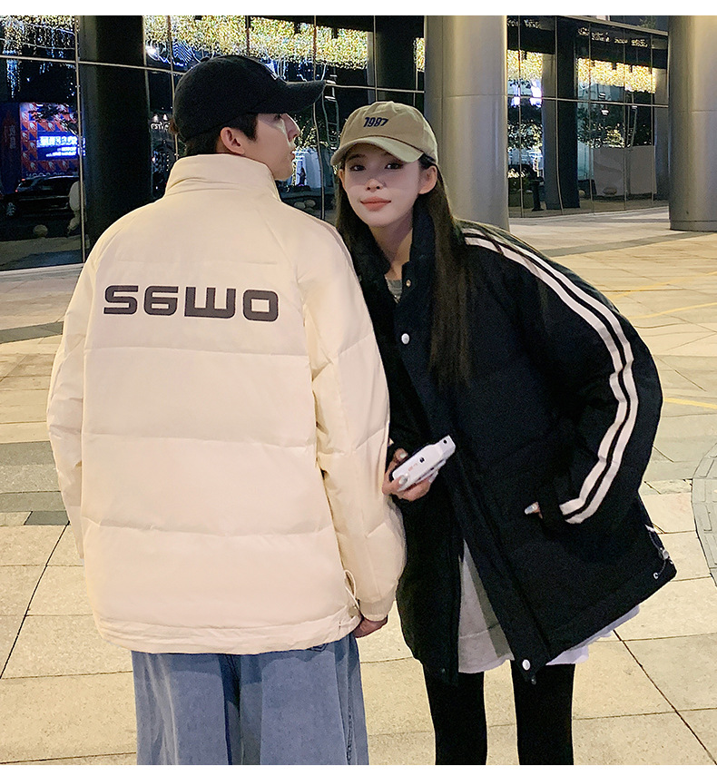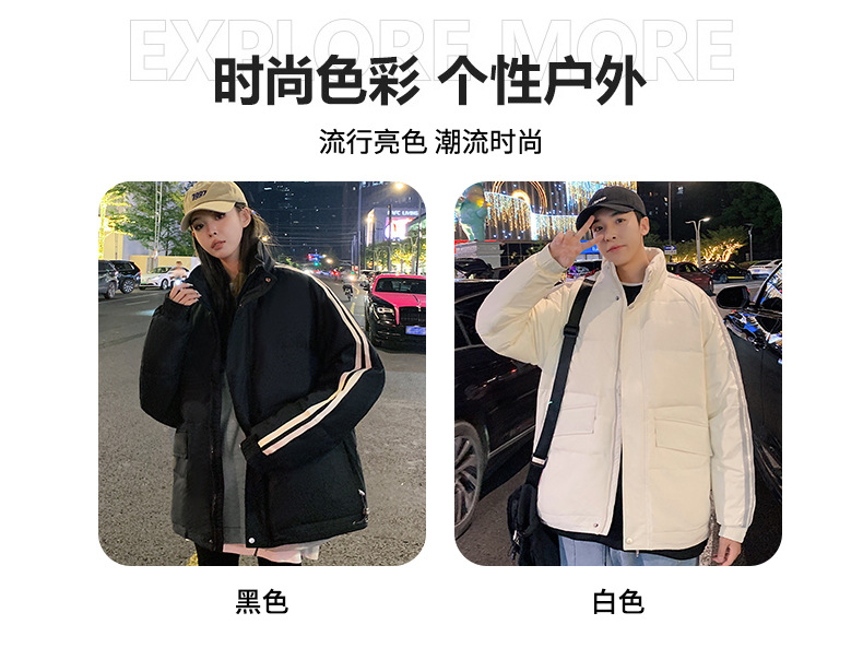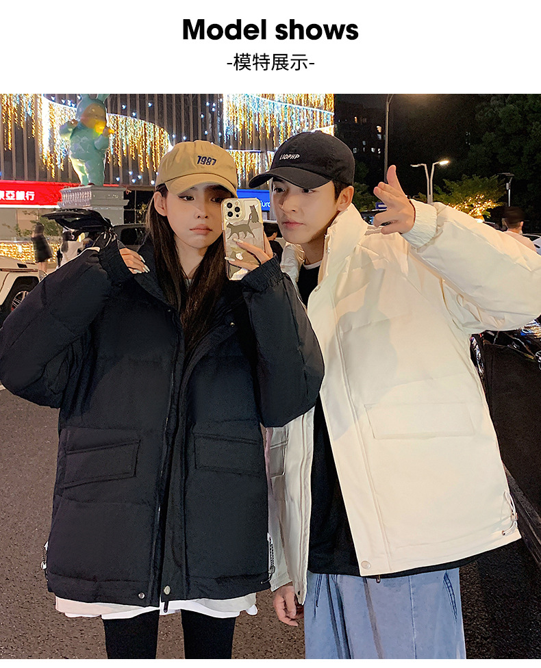 羽绒服男2023年冬季新款情侣款男女宽松白鸭绒立领羽绒服面包服