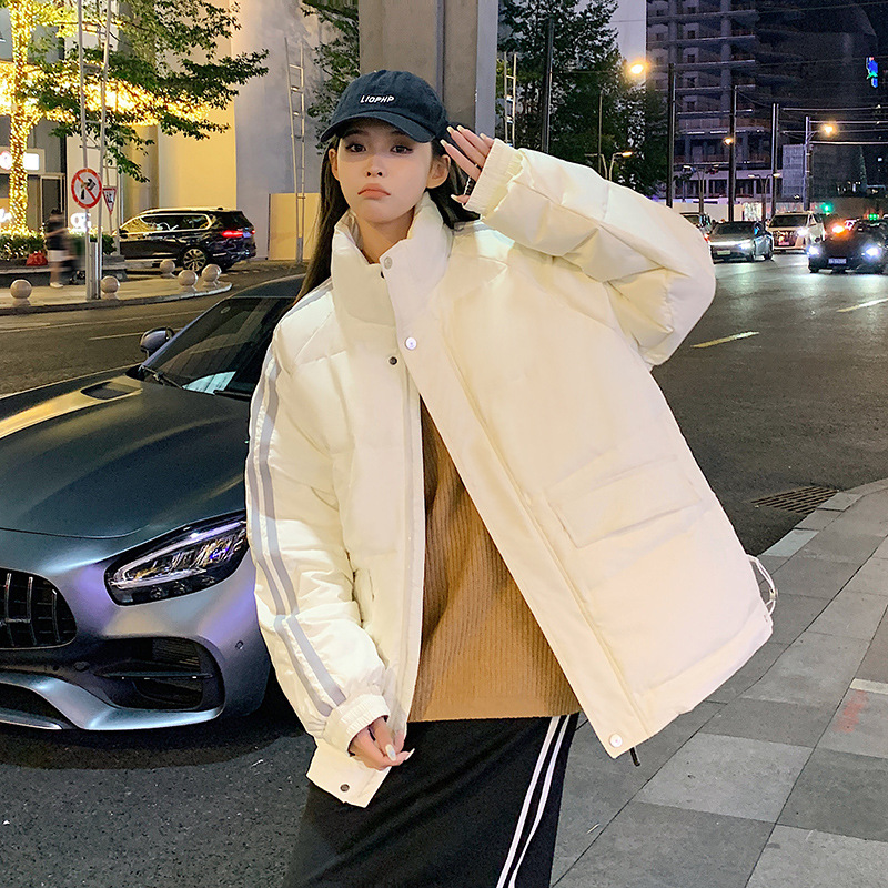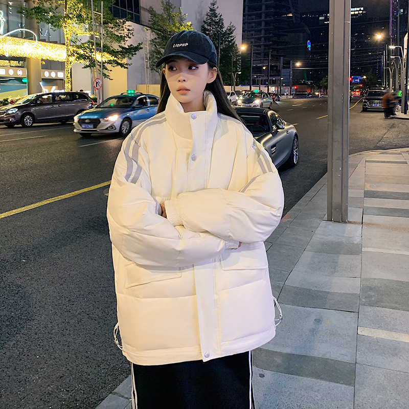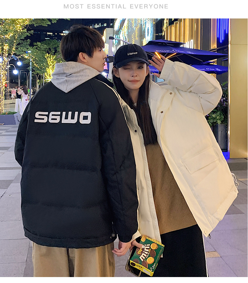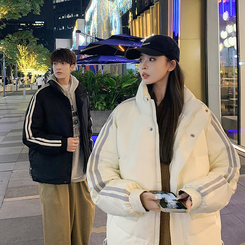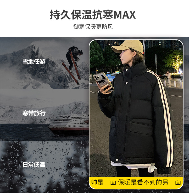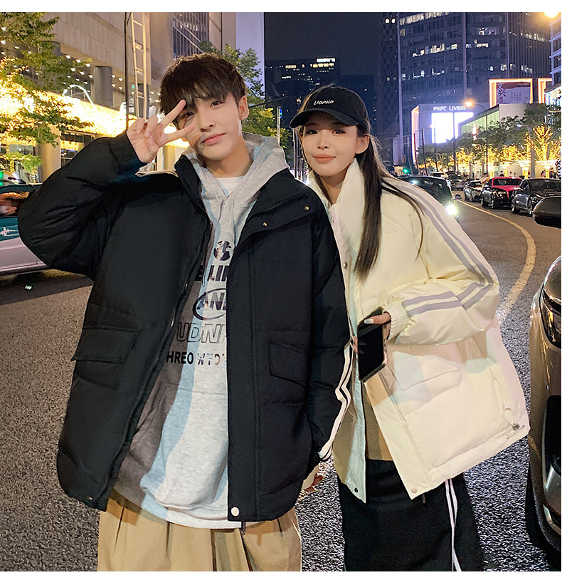 羽绒服男2023年冬季新款情侣款男女宽松白鸭绒立领羽绒服面包服