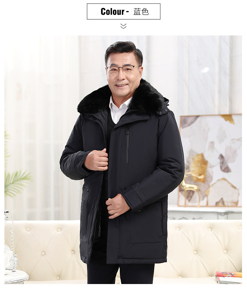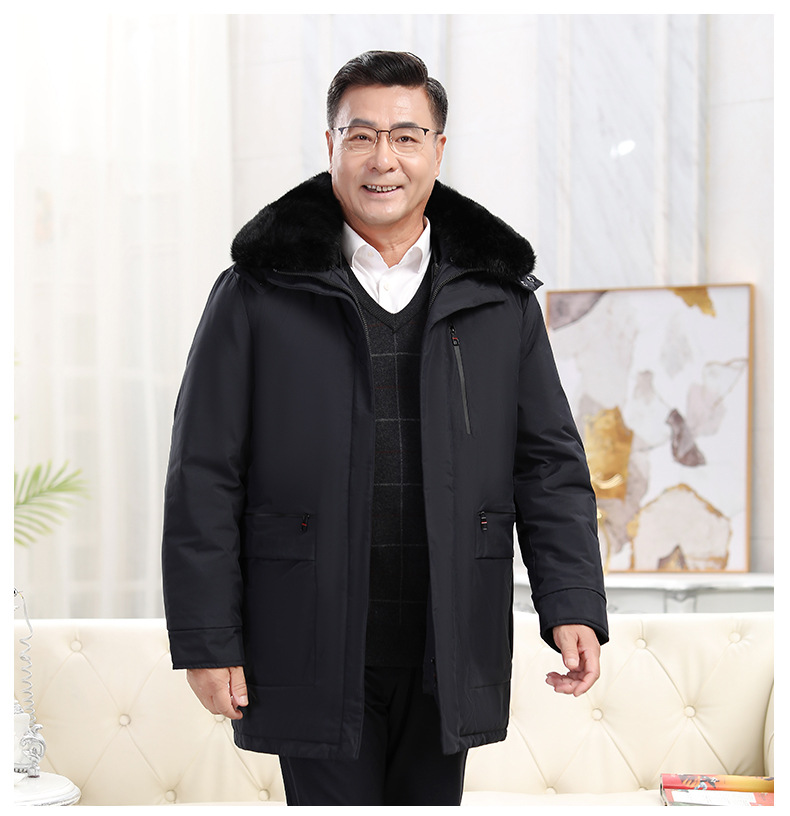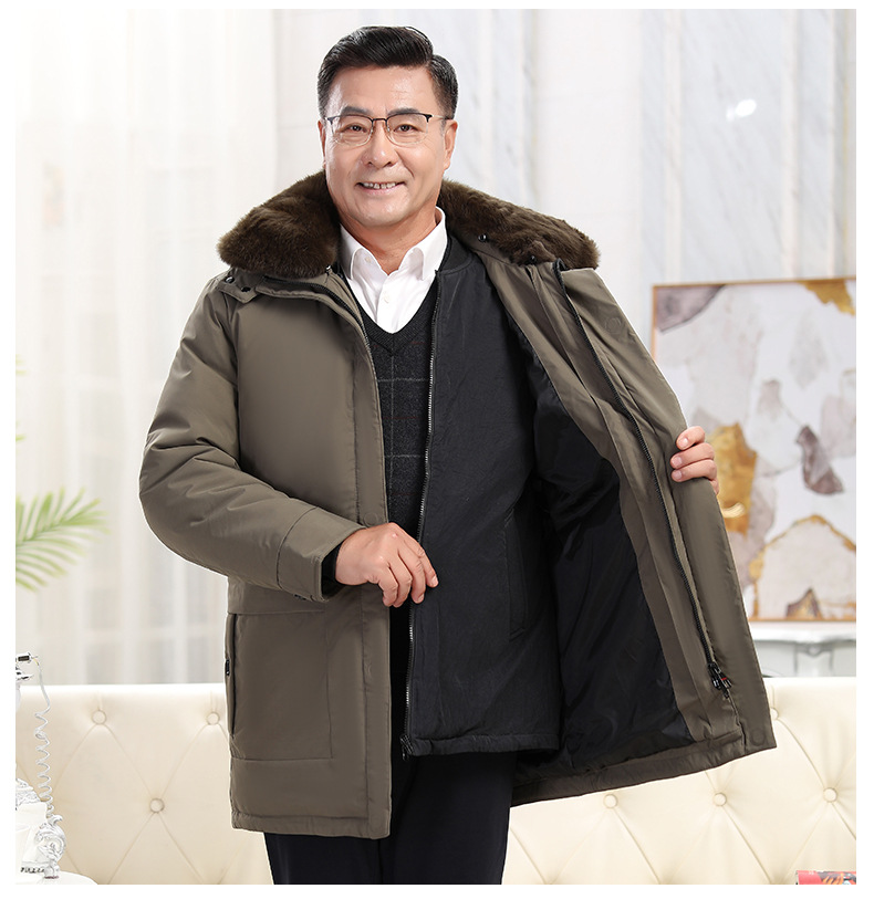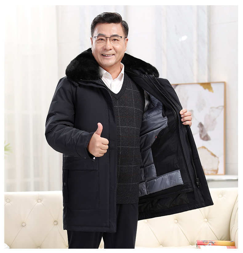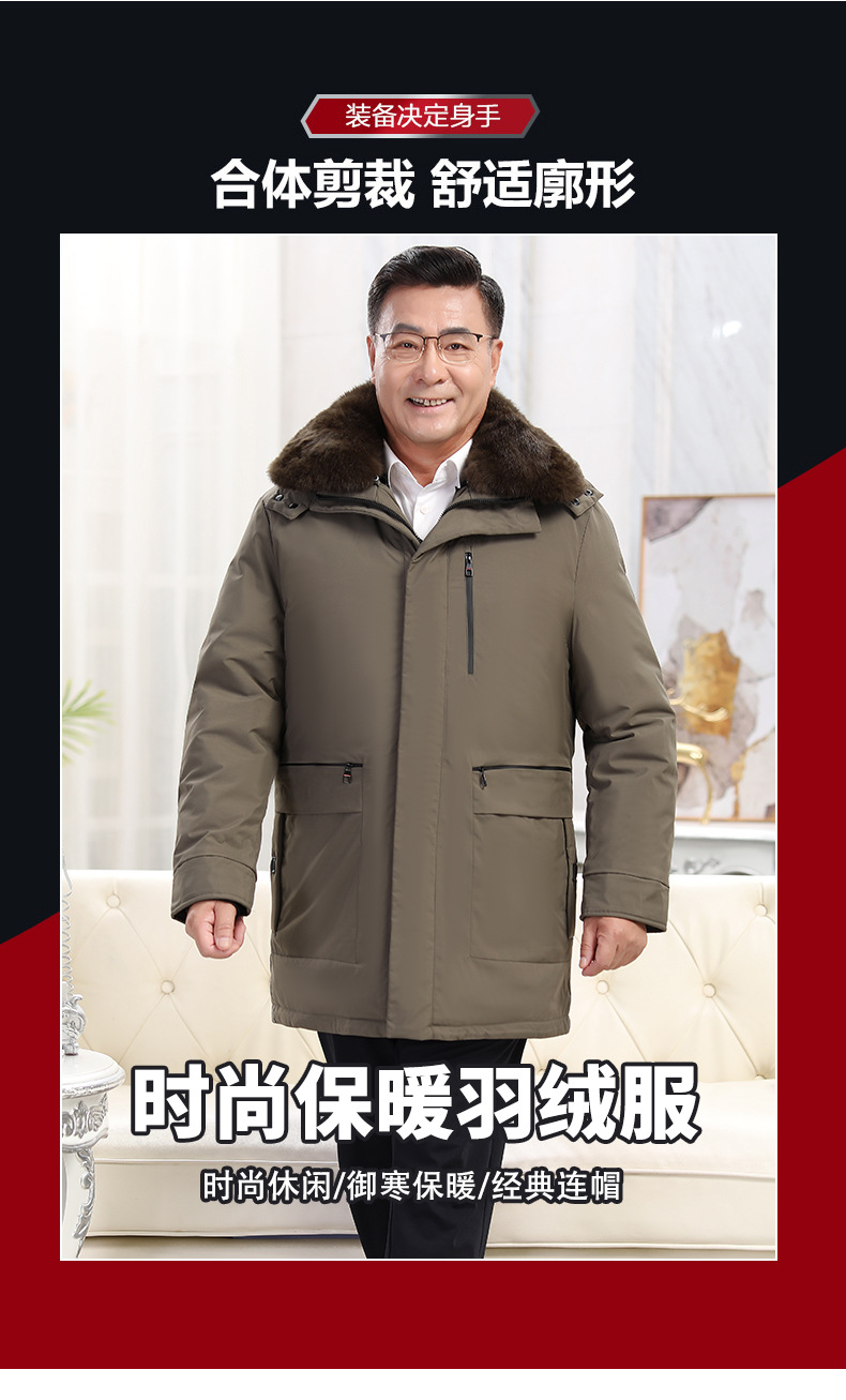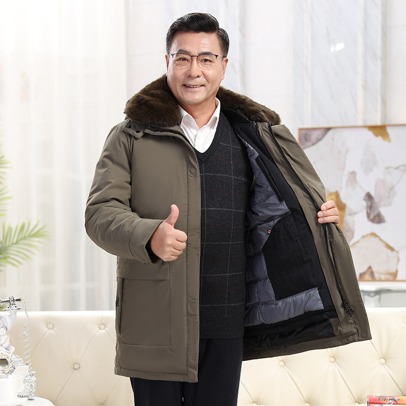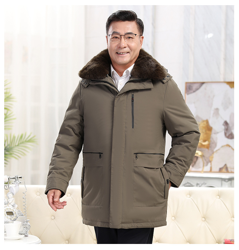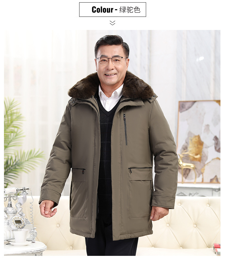 2023冬季新款羽绒服男中长款中老年爸爸装保暖羽绒服男翻领外套