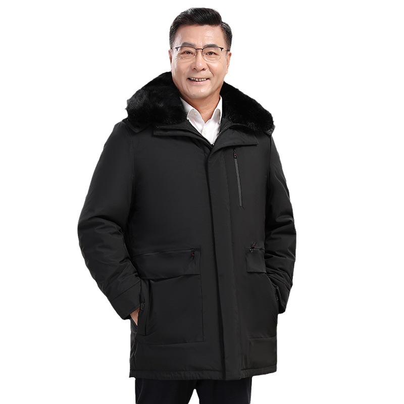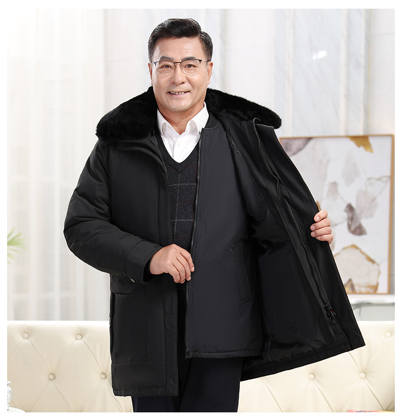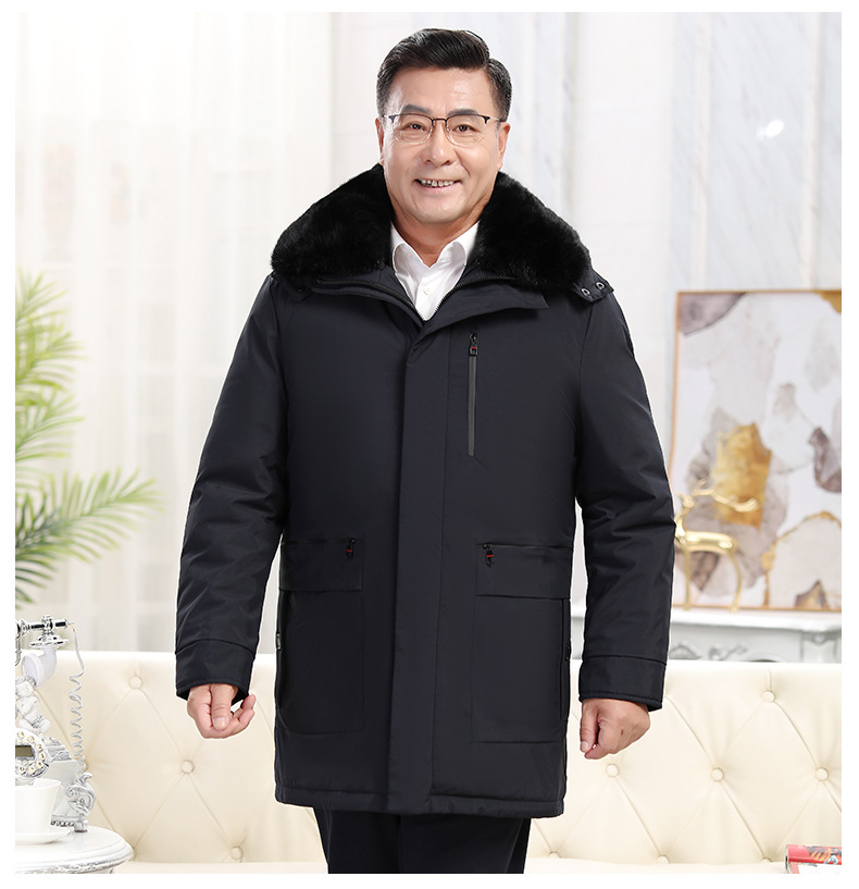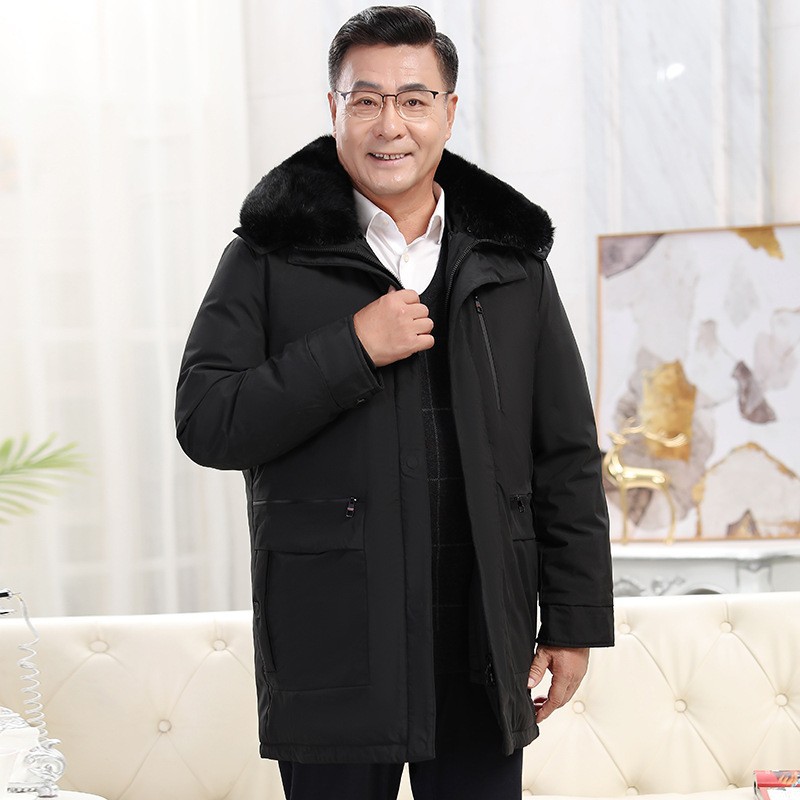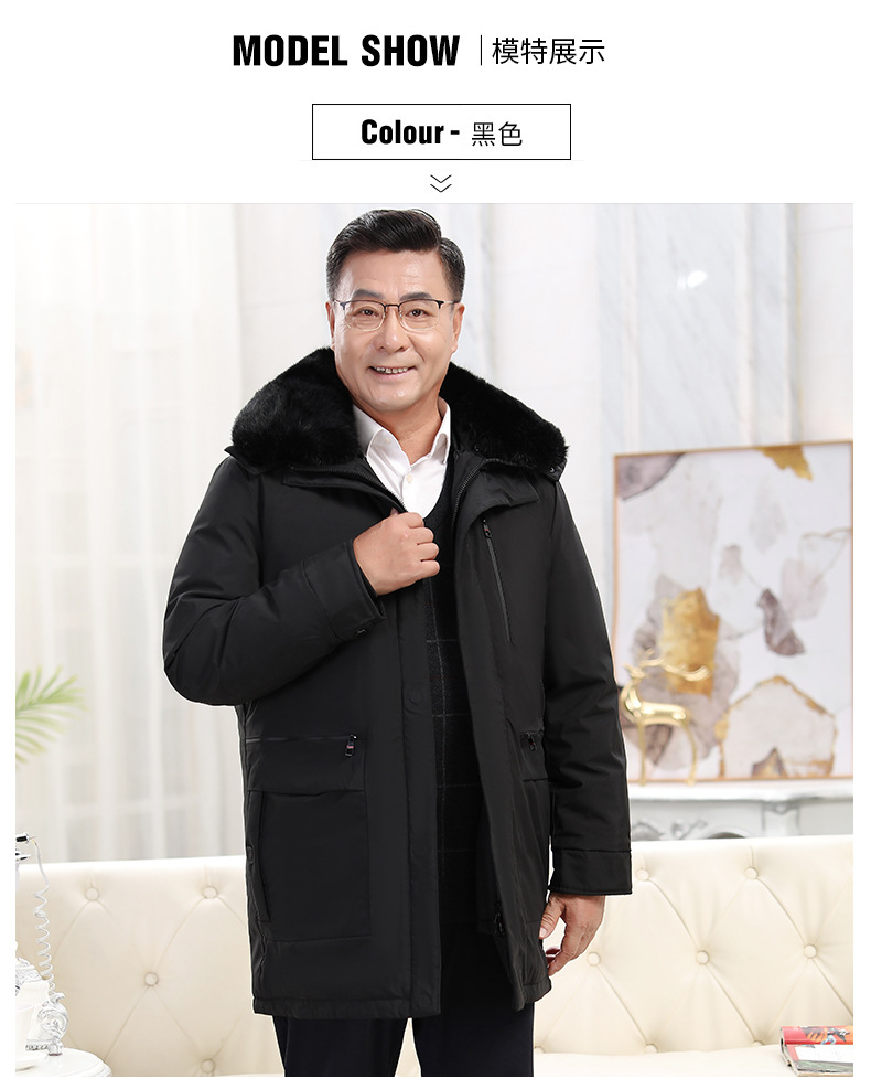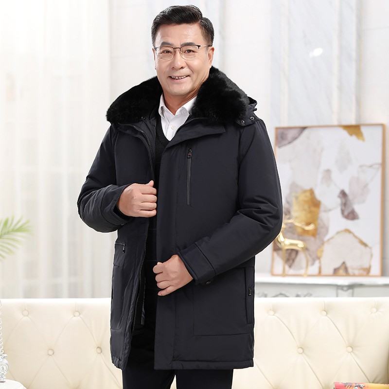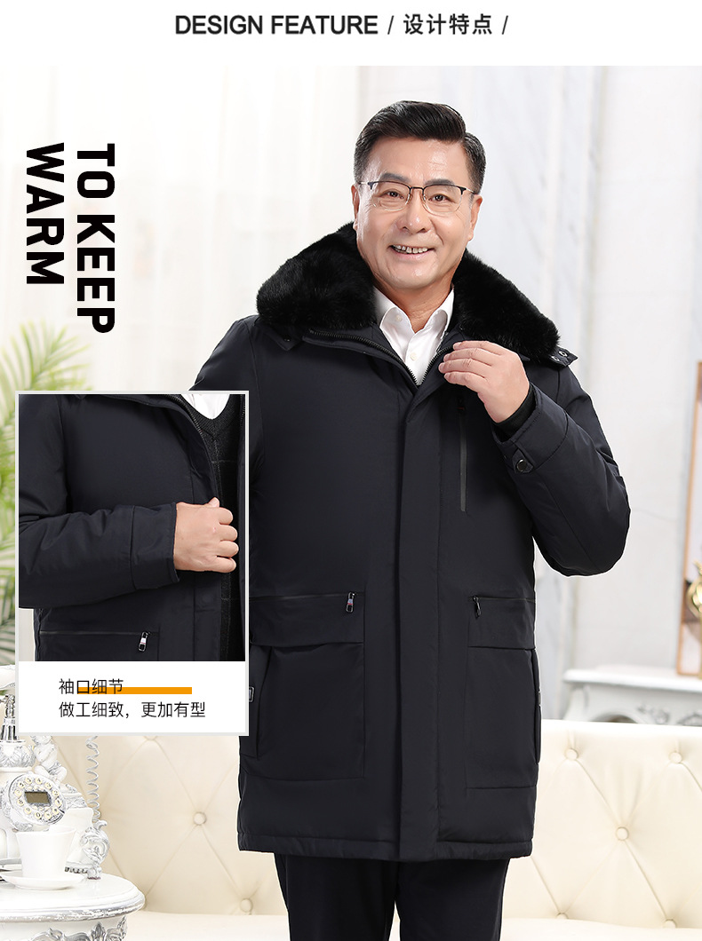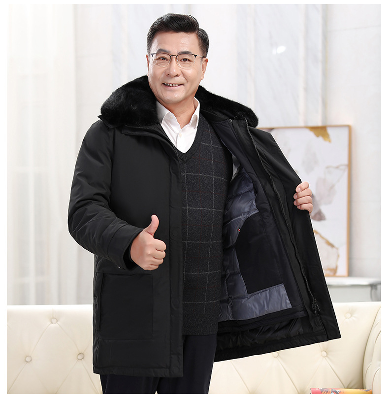2023冬季新款羽绒服男中长款中老年爸爸装保暖羽绒服男翻领外套