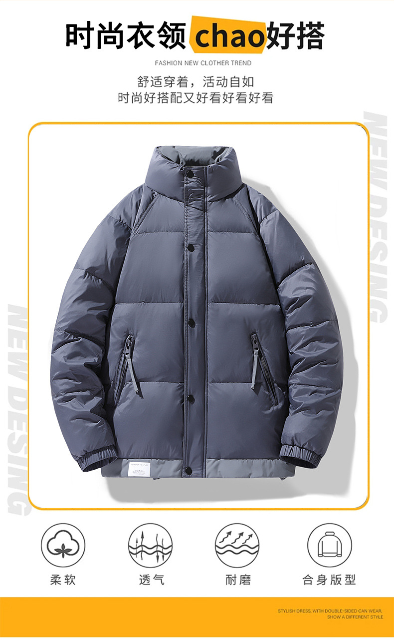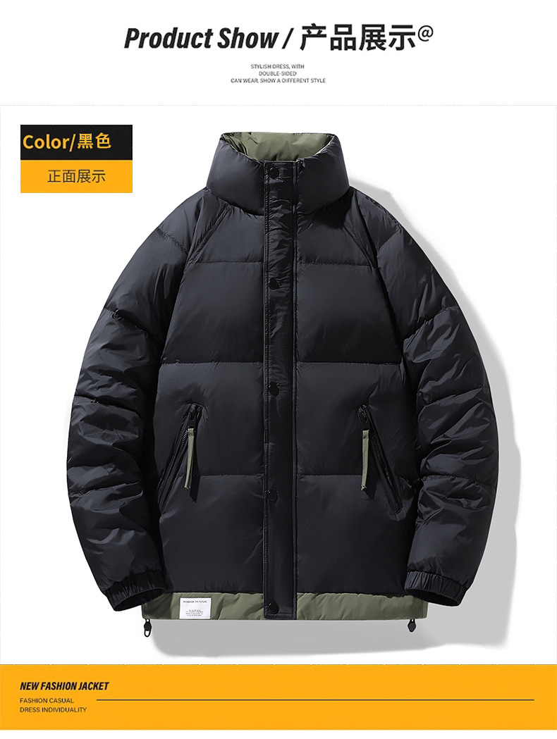 2023男士外套潮流国标黑金羽绒服冬装新款立领保暖白鸭绒潮牌外套